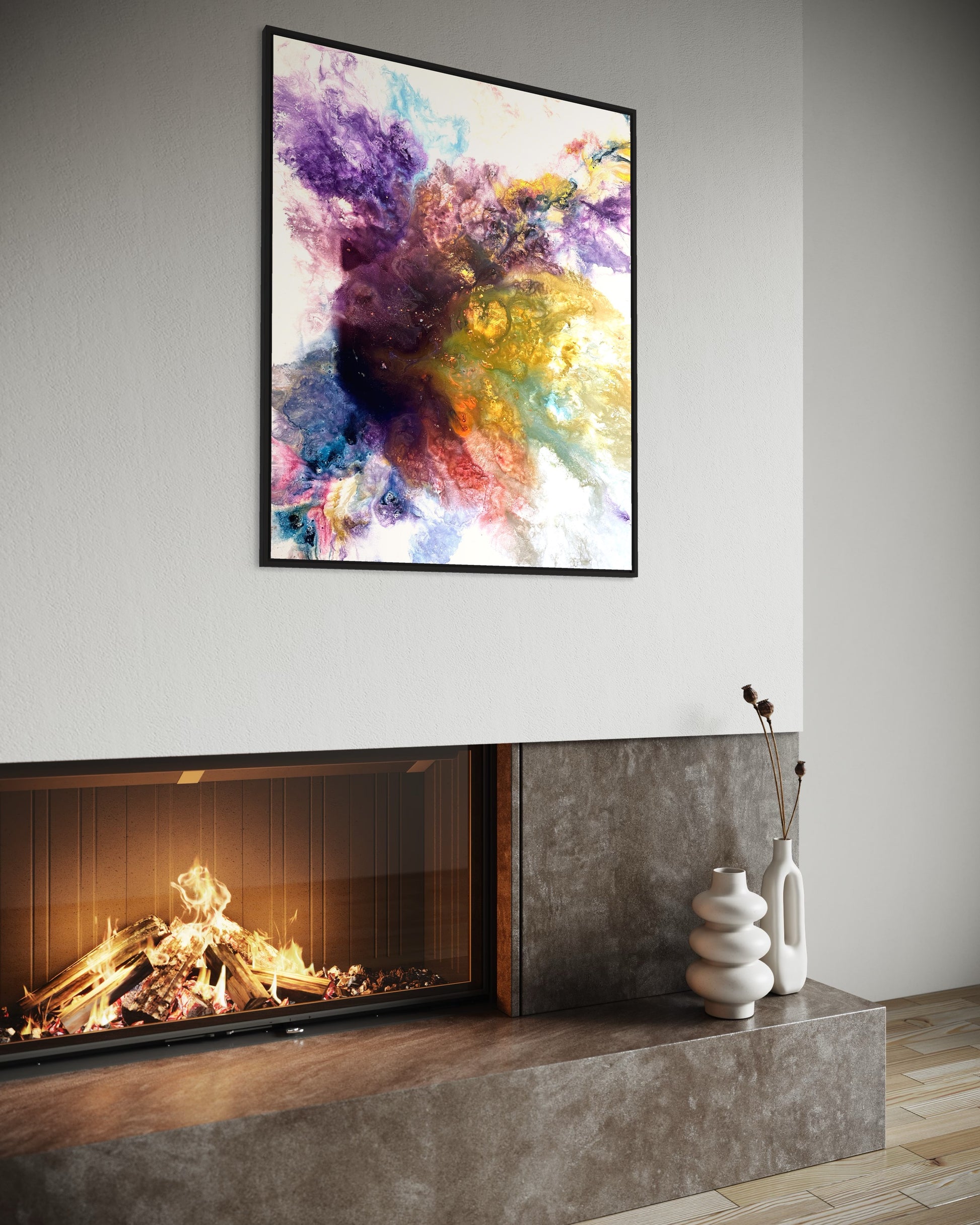 Entdecke die zeitlose Schönheit von "Butterfly's Embrace", einem faszinierenden Kunstwerk, das eine Fusion aus abstrakter Farbexplosion und anmutiger Schmetterlingsanmutung darbietet. Das Gemälde, im beeindruckenden Format von 100x80 Zentimetern, fängt die Essenz von Farbe und Form ein und wird von einem eleganten schwarzen Rahmen perfekt in Szene gesetzt.