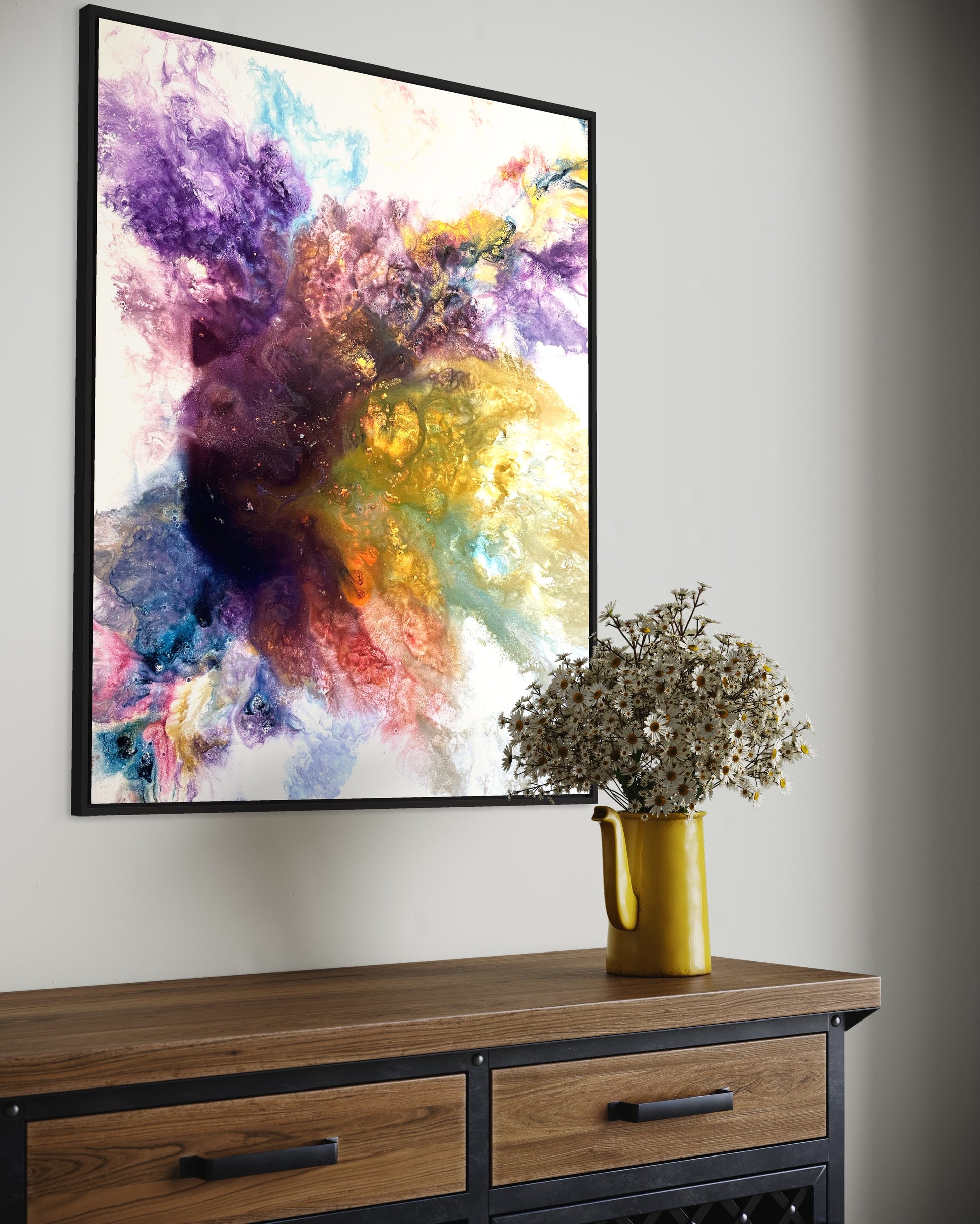 Bring mit diesem einzigartigen Gemälde Stil in deine Räume und lass dich von der künstlerischen Fusion verzaubern. Jedes Stück ist handgefertigt und signiert, um dir eine exklusive und individuelle Kunstform zu bieten.