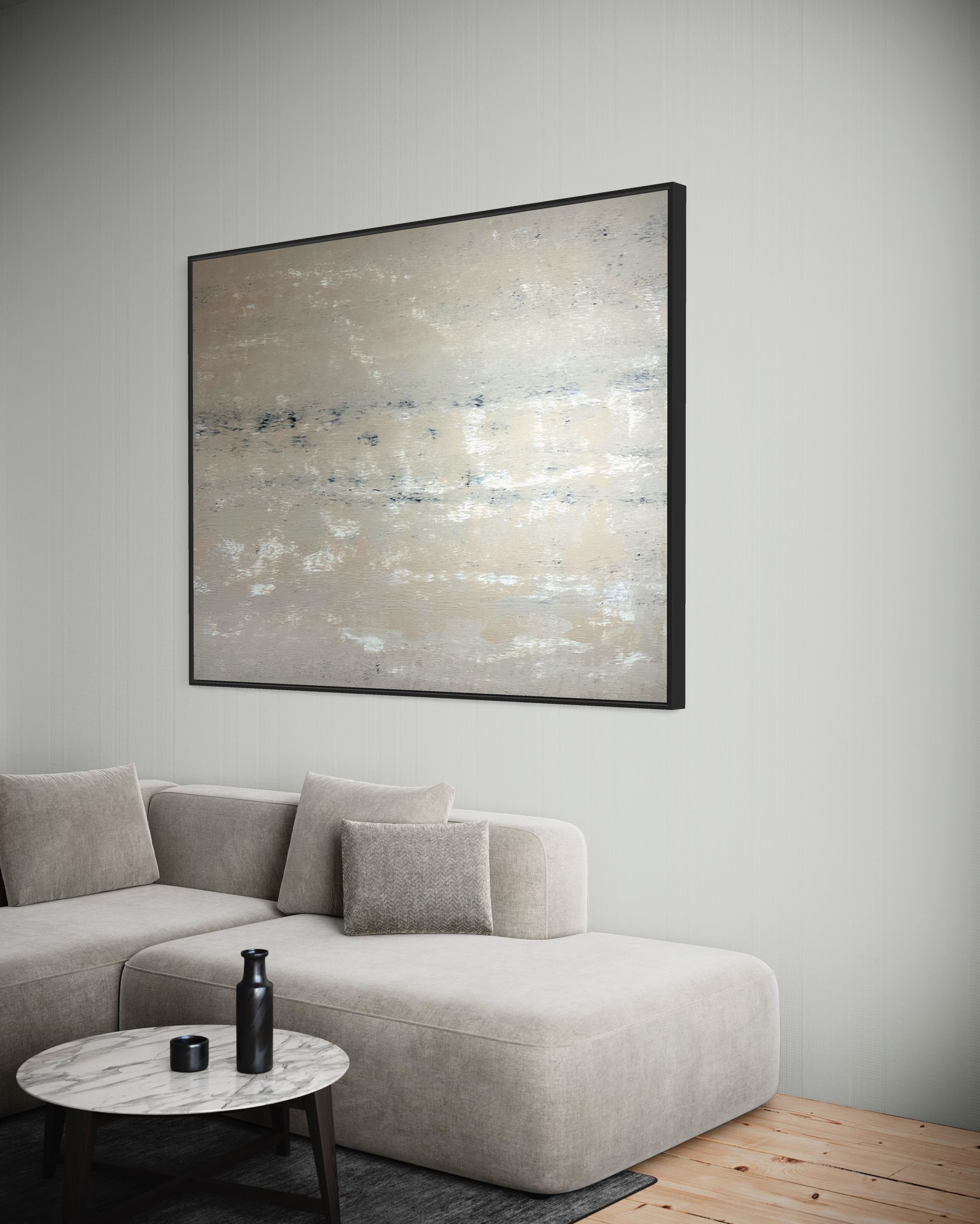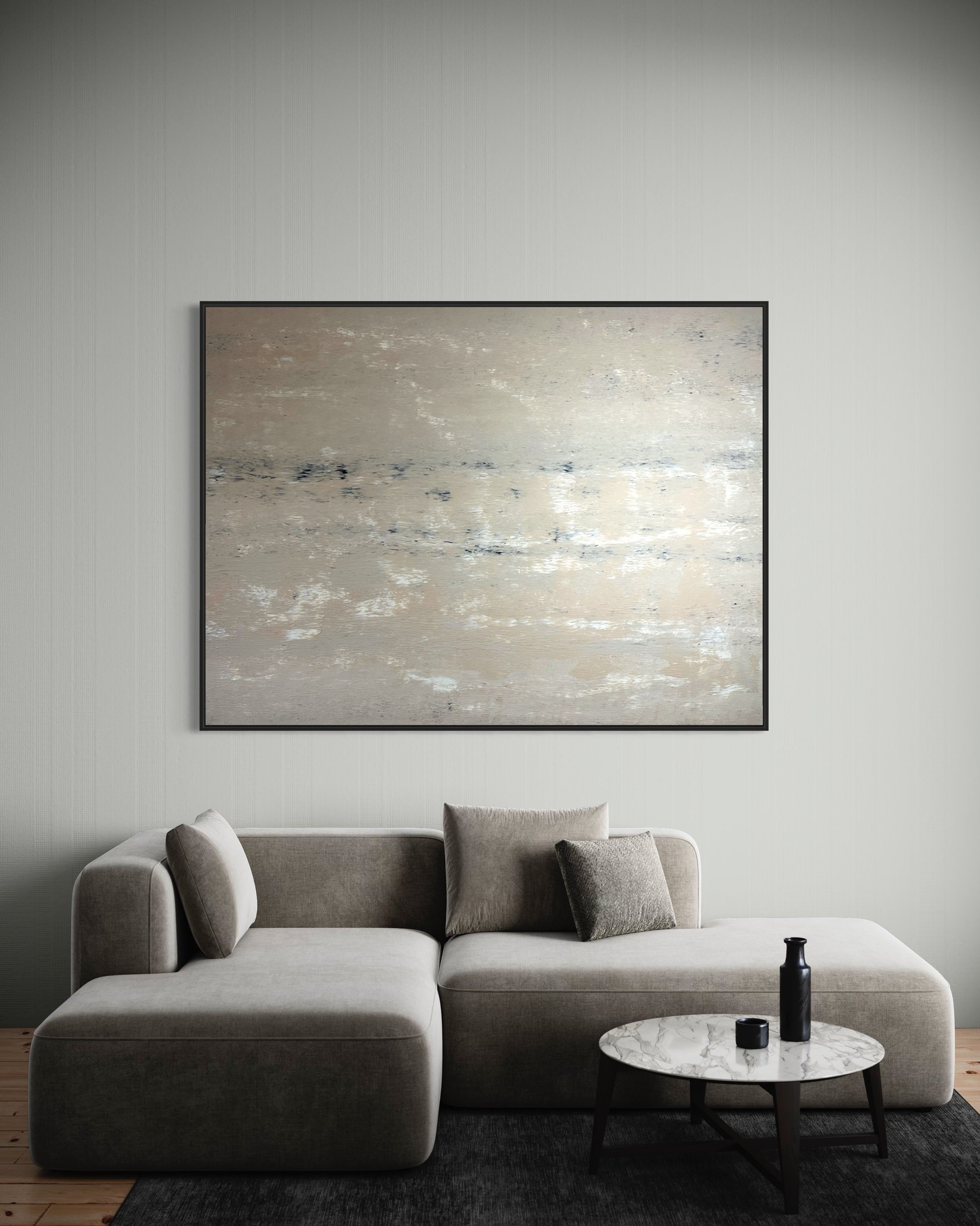 Jedes Detail wurde sorgfältig ausgearbeitet, um sicherzustellen, dass dieses Gemälde Ihre Sinne berührt und Ihre Fantasie beflügelt. Mit "Creme Noir" bringen Sie einen Hauch von Raffinesse und moderner Kunst in Ihr Leben.