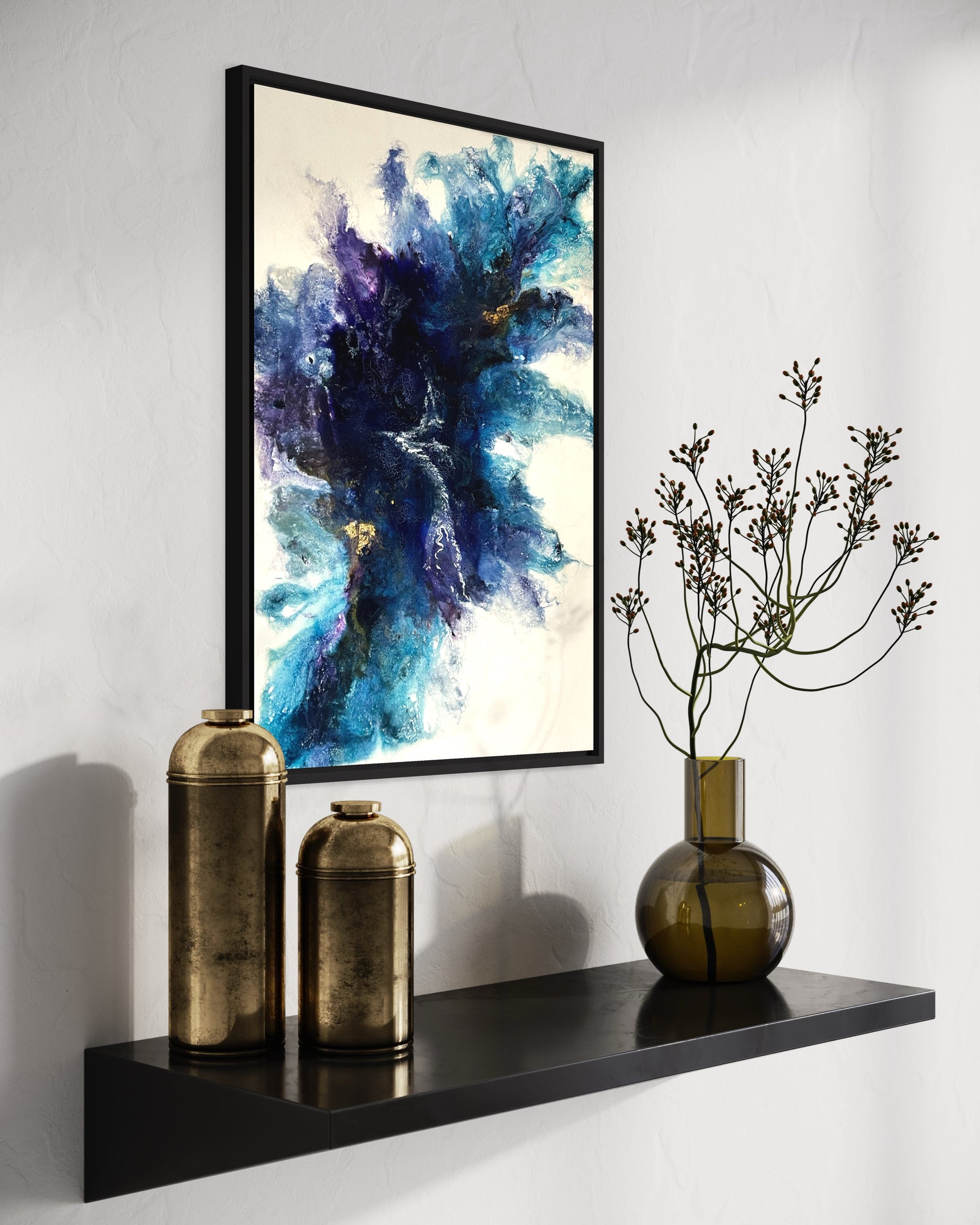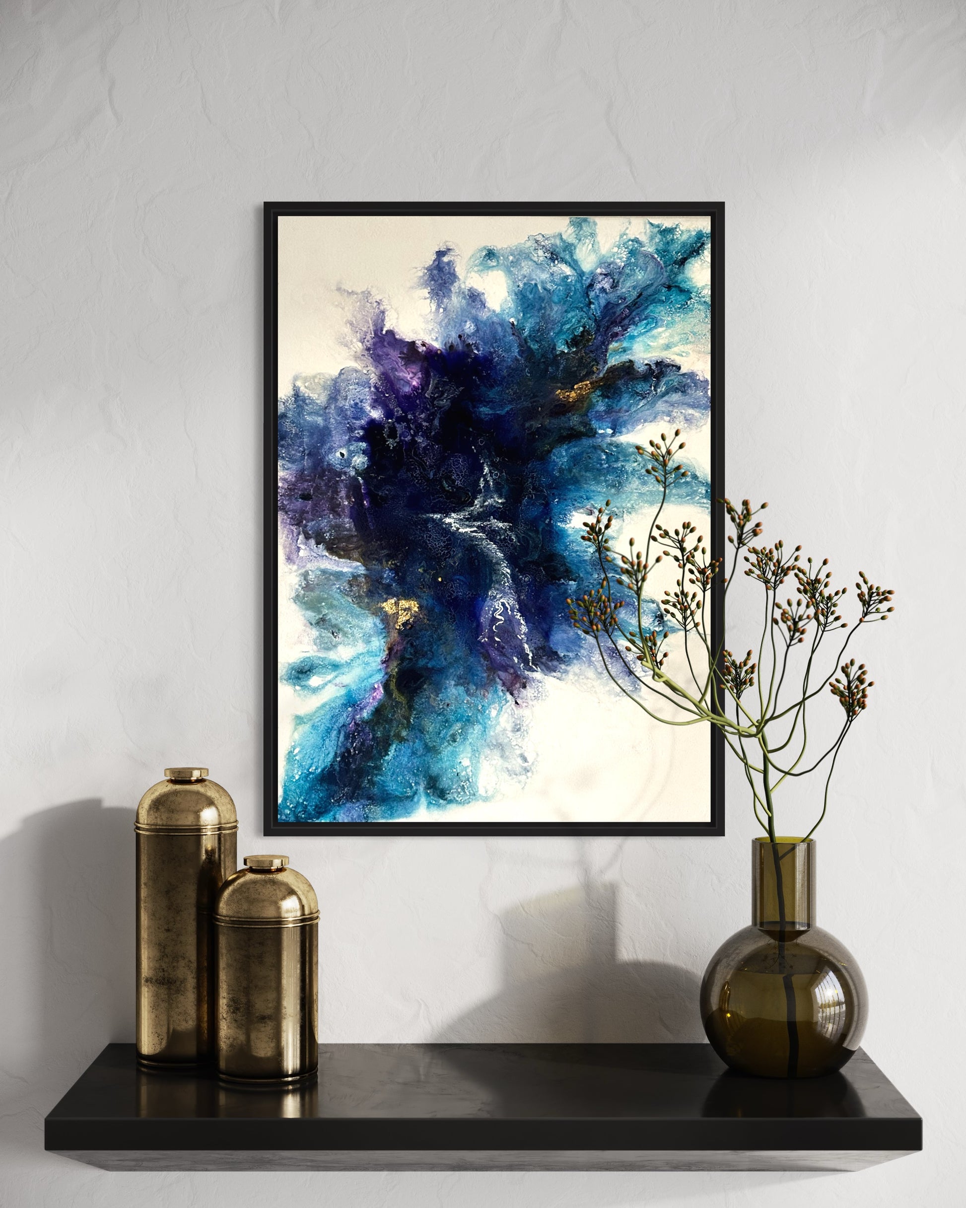 Dieses atemberaubende Gemälde ist nicht nur ein Statement für jeden Raum, sondern auch eine Bereicherung für Sammler und Kunstliebhaber. Erschaffen, um Räume zu transformieren und Blicke zu fesseln, ist 'Golden Royal Blue' ein Kunstwerk, das dich mit seinem kraftvollen visuellen Charme verzaubern wird.