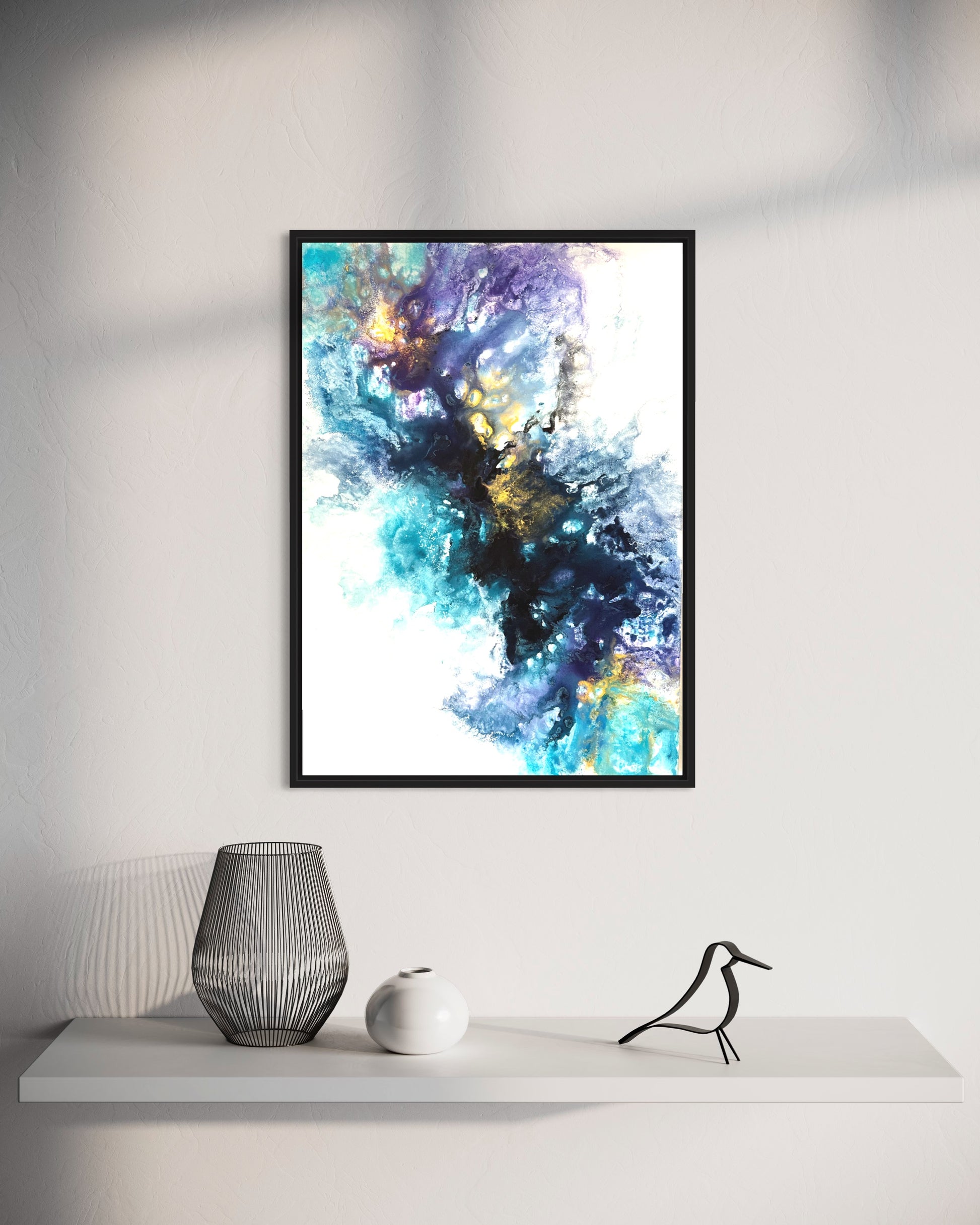 Jedes Detail in 'Royal Blue' offenbart eine meisterhafte Verschmelzung von Farben, die ein Gefühl von majestätischer Schönheit hervorruft. Mit handwerklicher Präzision und einer Komposition, die das Auge begeistert, lädt dieses Gemälde dazu ein, in eine Welt voller raffinierter Kreativität einzutauchen.