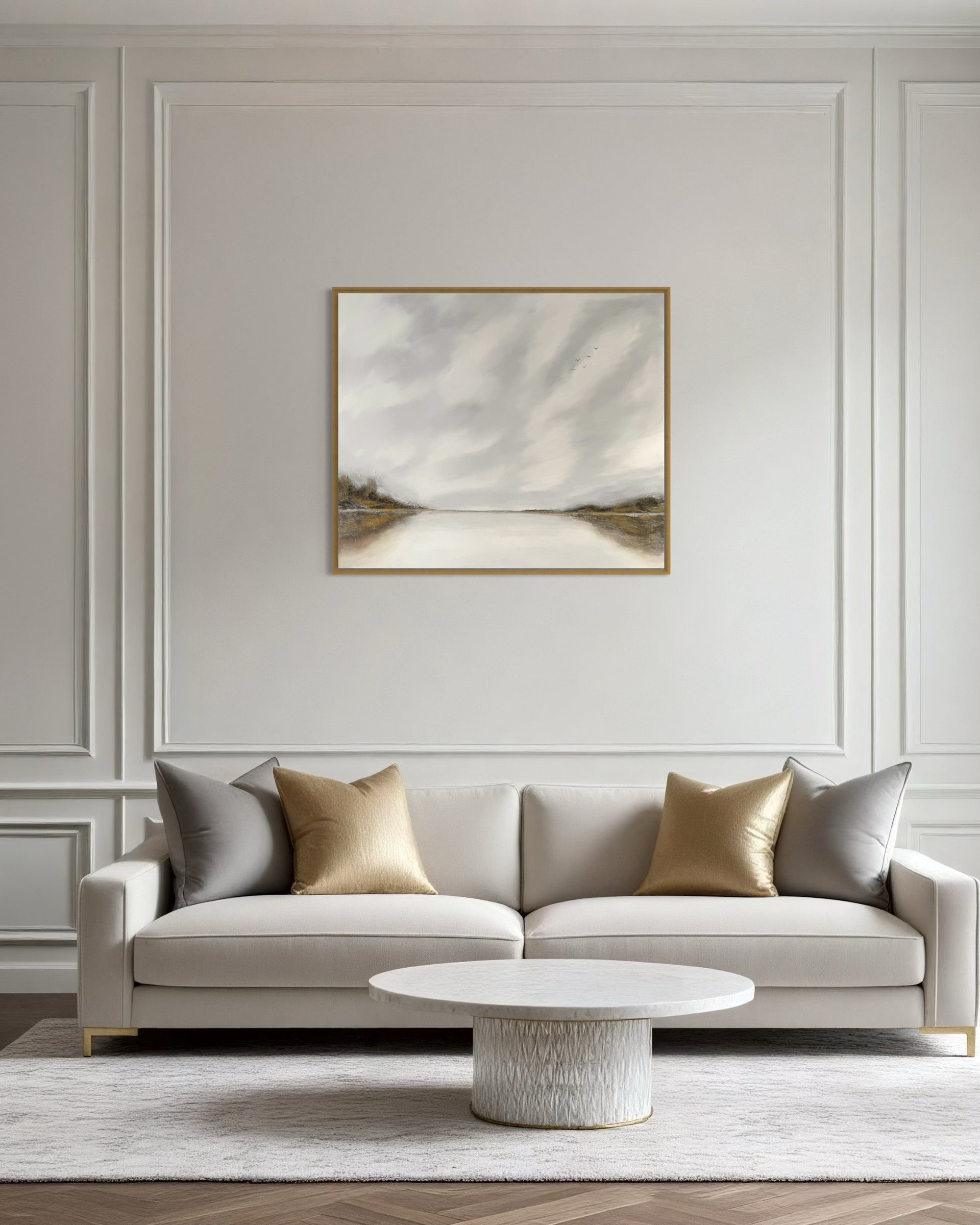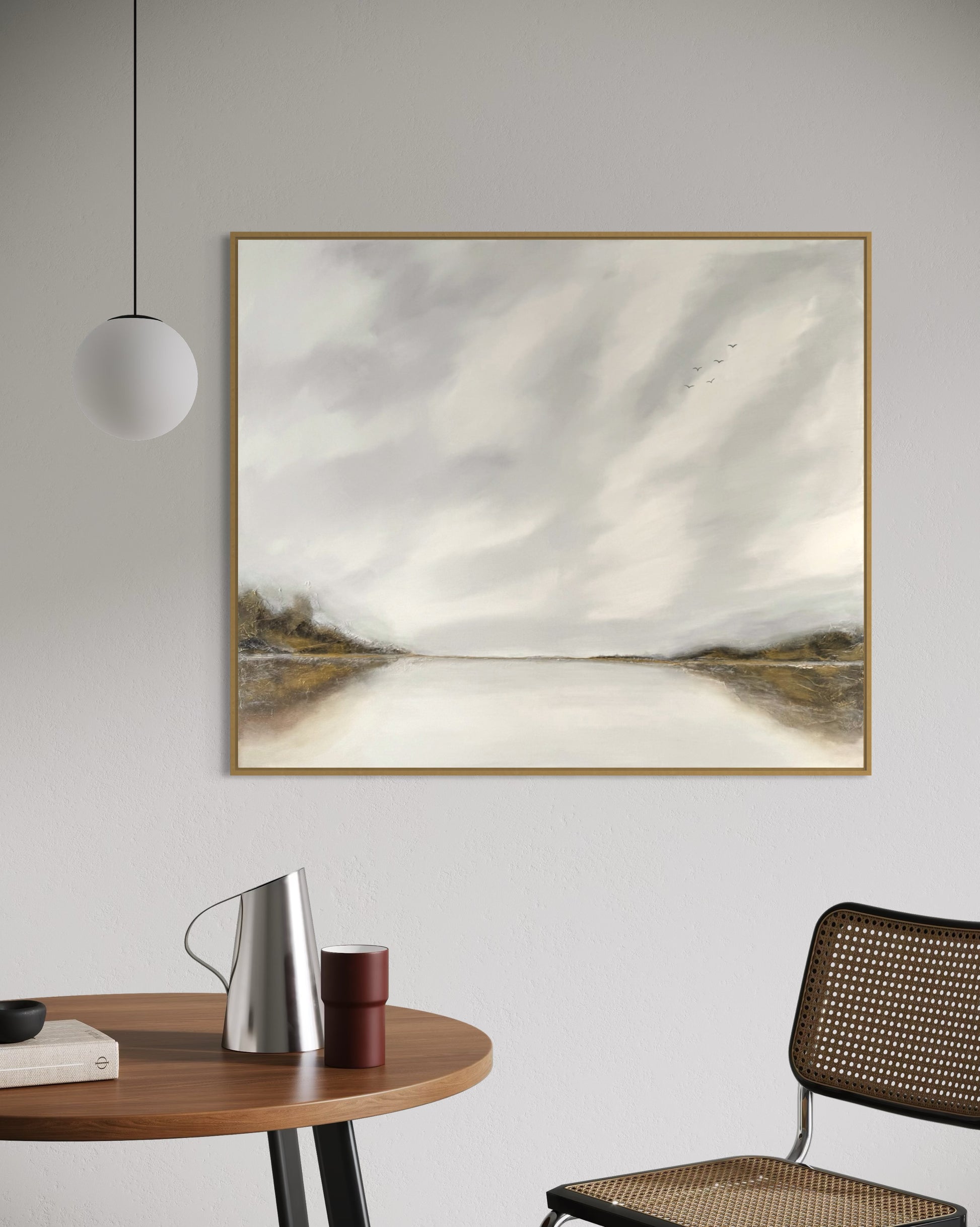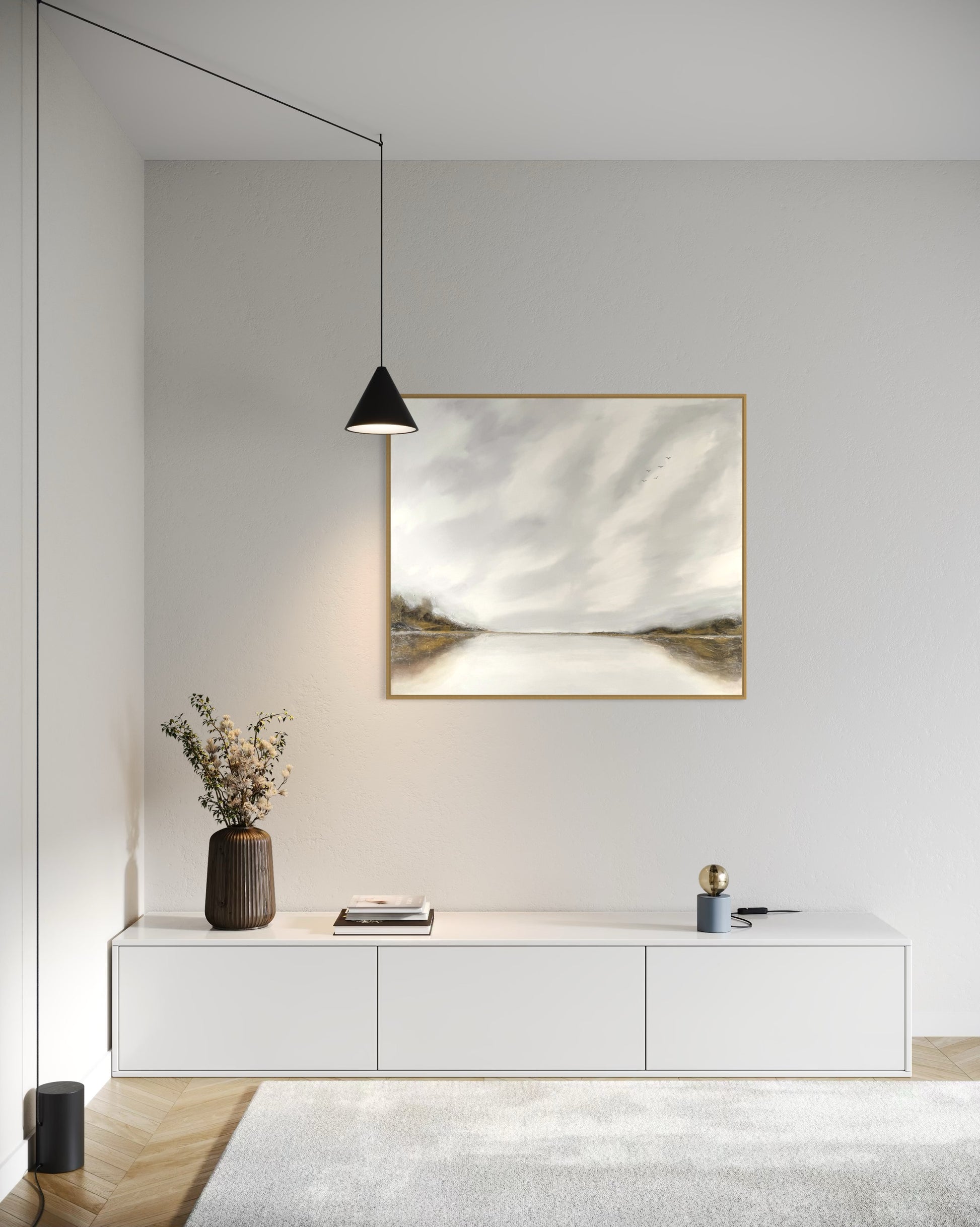 Mit sanften, natürlichen Farben und ruhiger Komposition schafft dieses große Acrylgemälde eine entspannte Atmosphäre. Ideal für moderne Wohnräume, minimalistische Einrichtungen oder Orte, an denen Ruhe spürbar sein soll – etwa im Wohnzimmer, Schlafzimmer oder einem ruhigen Arbeitsbereich.