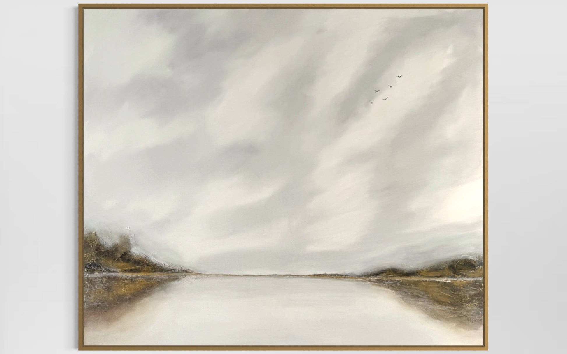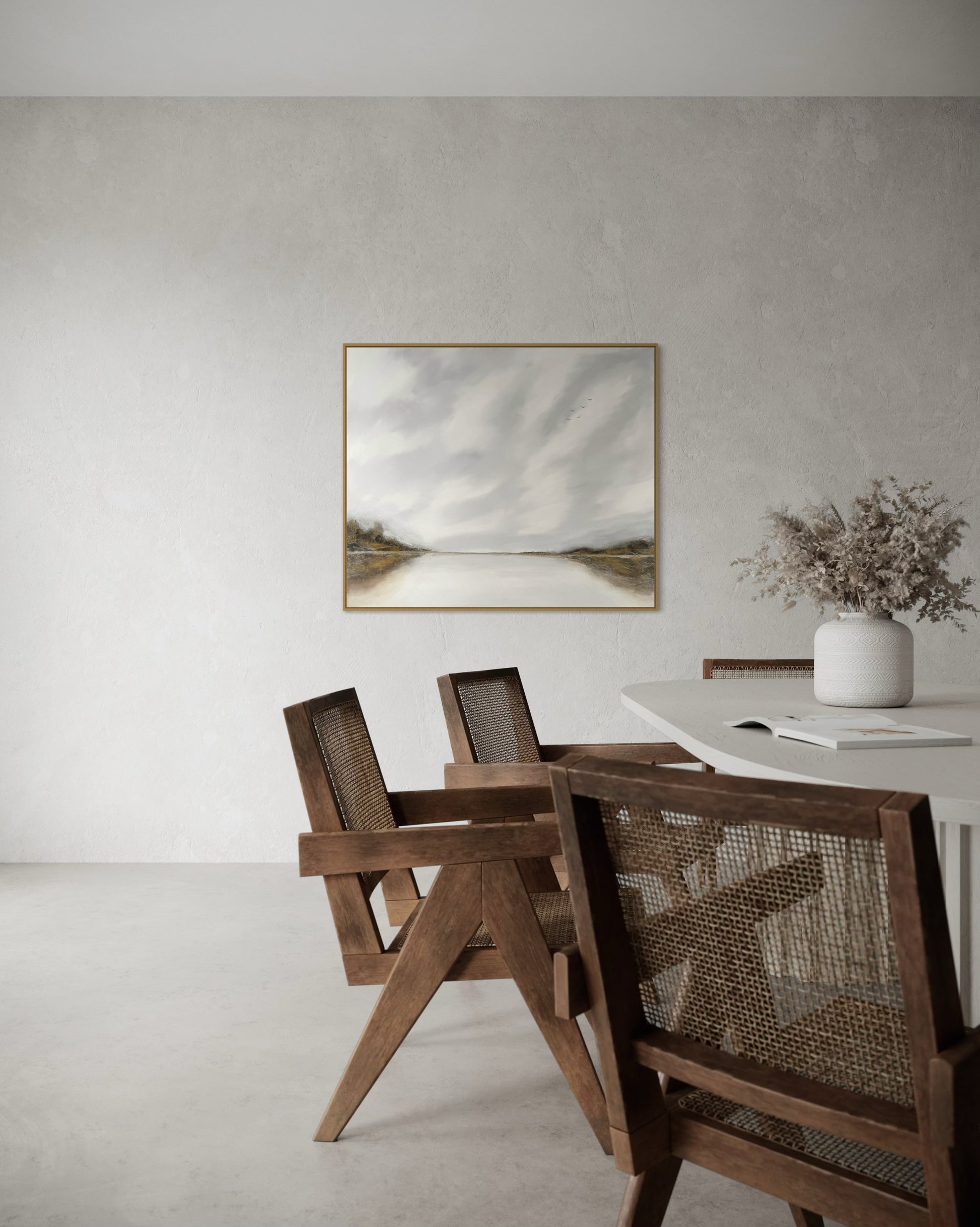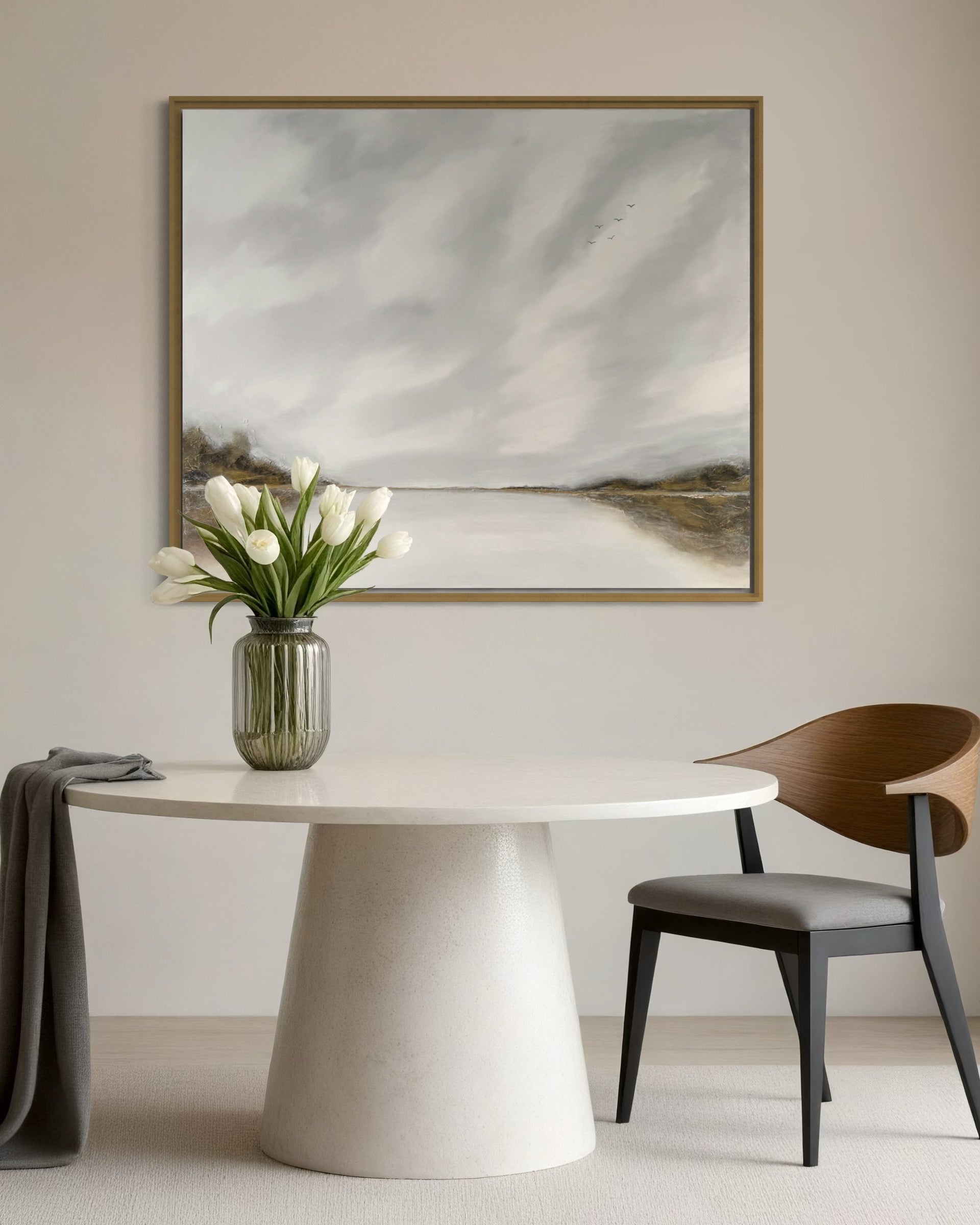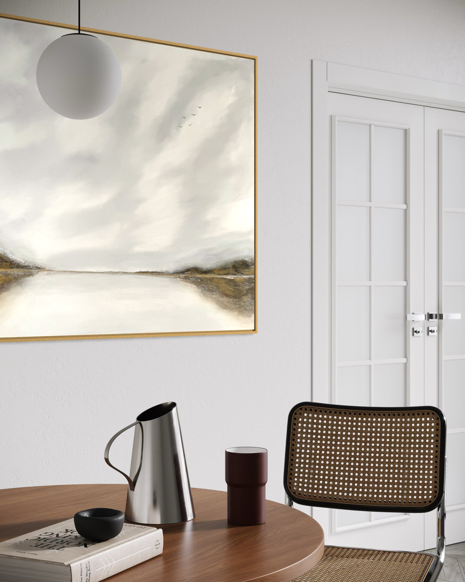 Mit sanften, natürlichen Farben und ruhiger Komposition schafft dieses große Acrylgemälde eine entspannte Atmosphäre. Ideal für moderne Wohnräume, minimalistische Einrichtungen oder Orte, an denen Ruhe spürbar sein soll – etwa im Wohnzimmer, Schlafzimmer oder einem ruhigen Arbeitsbereich.