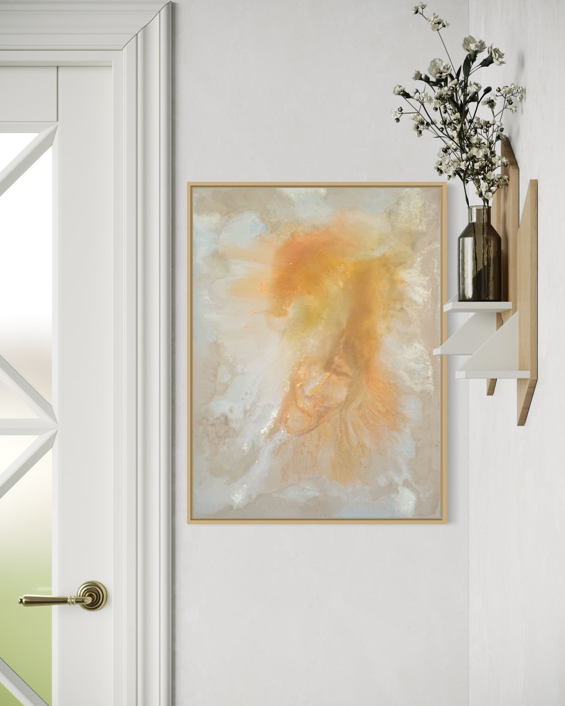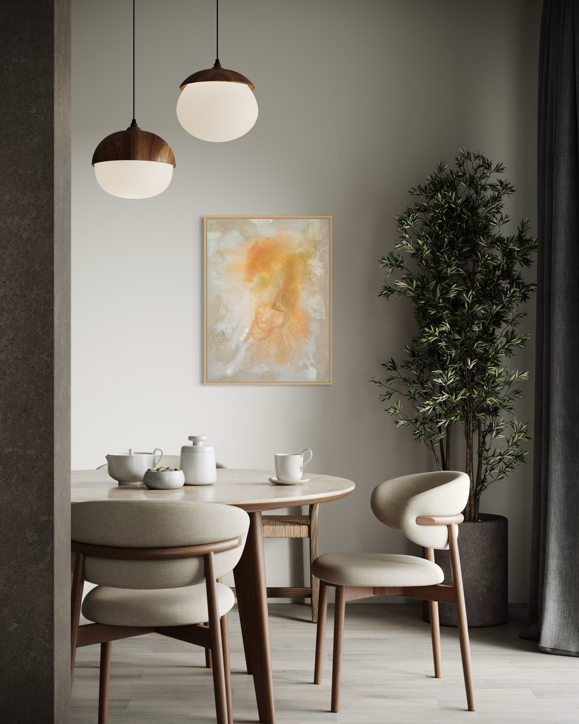 "Evening Glow" fängt die warmen, sanften Farben eines ruhigen Abends ein und verleiht jedem Raum eine entspannte Atmosphäre. Mit einer Größe von 80x60 cm bietet dieses Acrylgemälde harmonische Farbübergänge und eine weiche Struktur, die beruhigend wirkt. Das Werk wird mit einem eleganten Rahmen geliefert und ist direkt bereit zum Aufhängen.