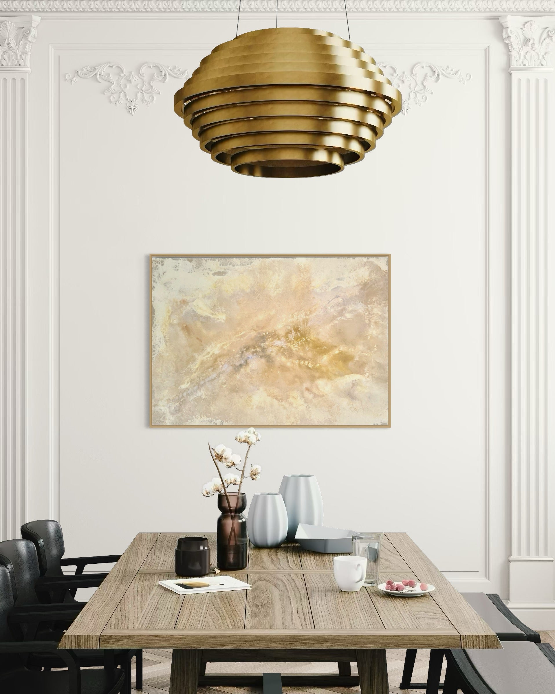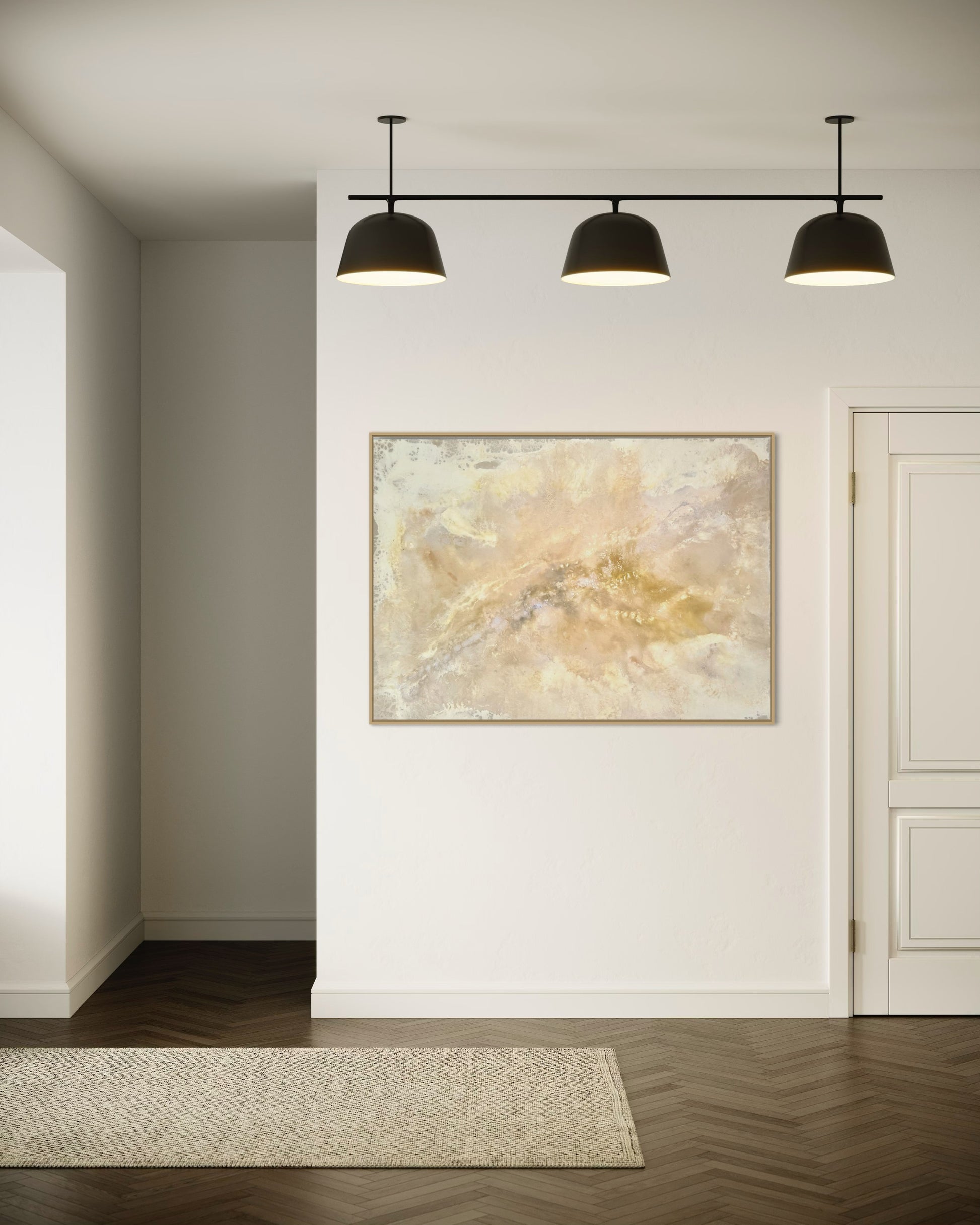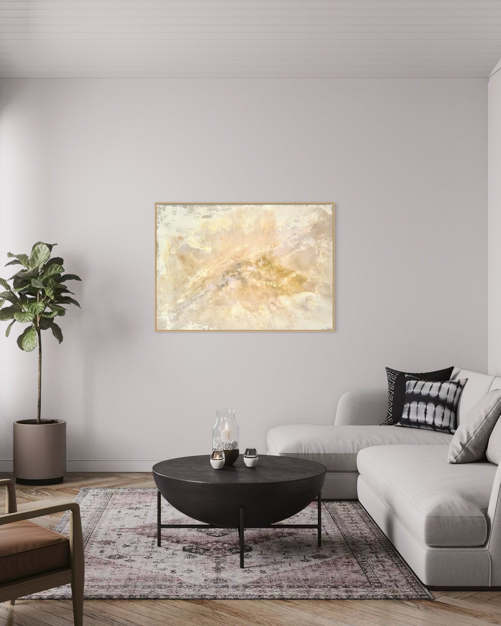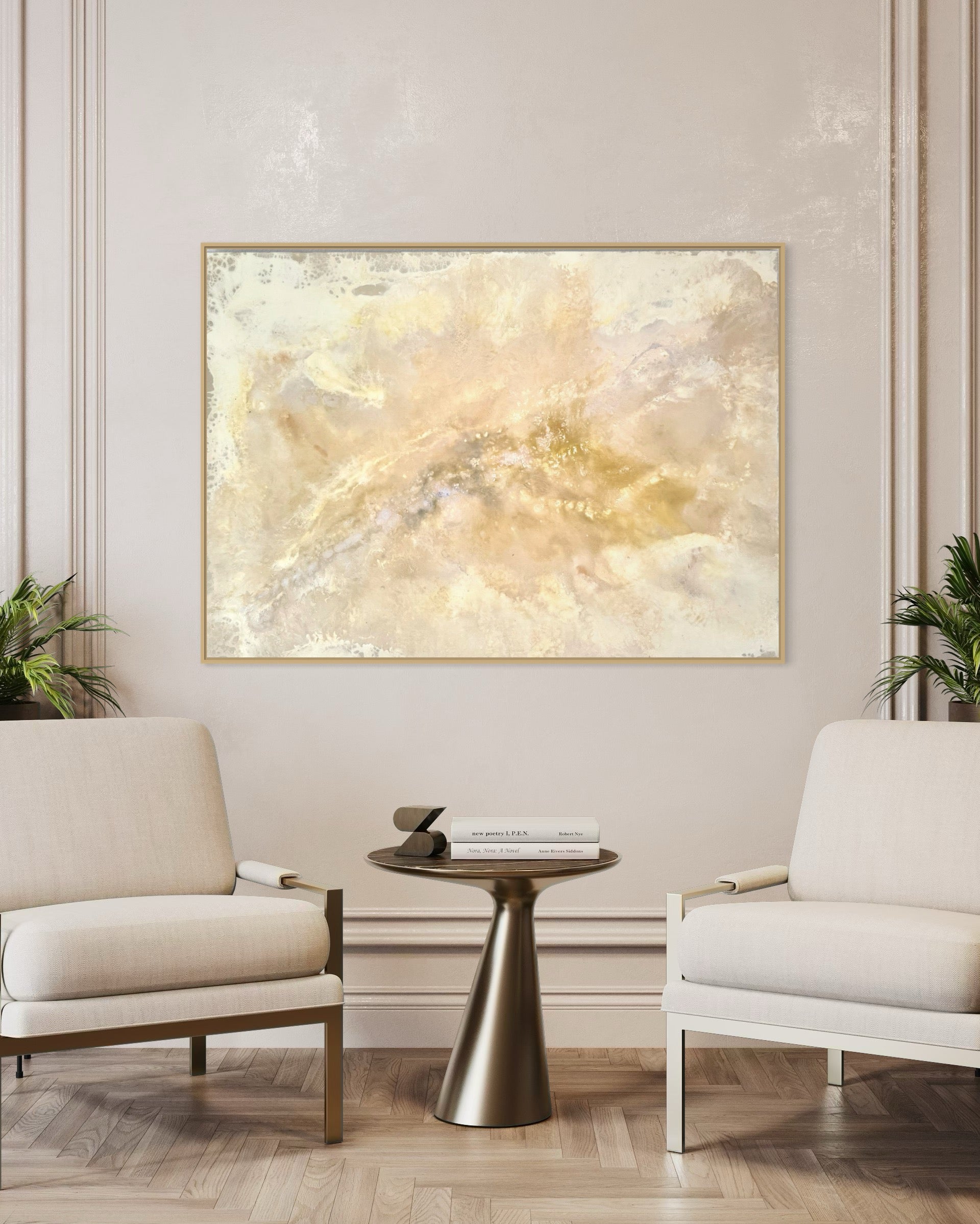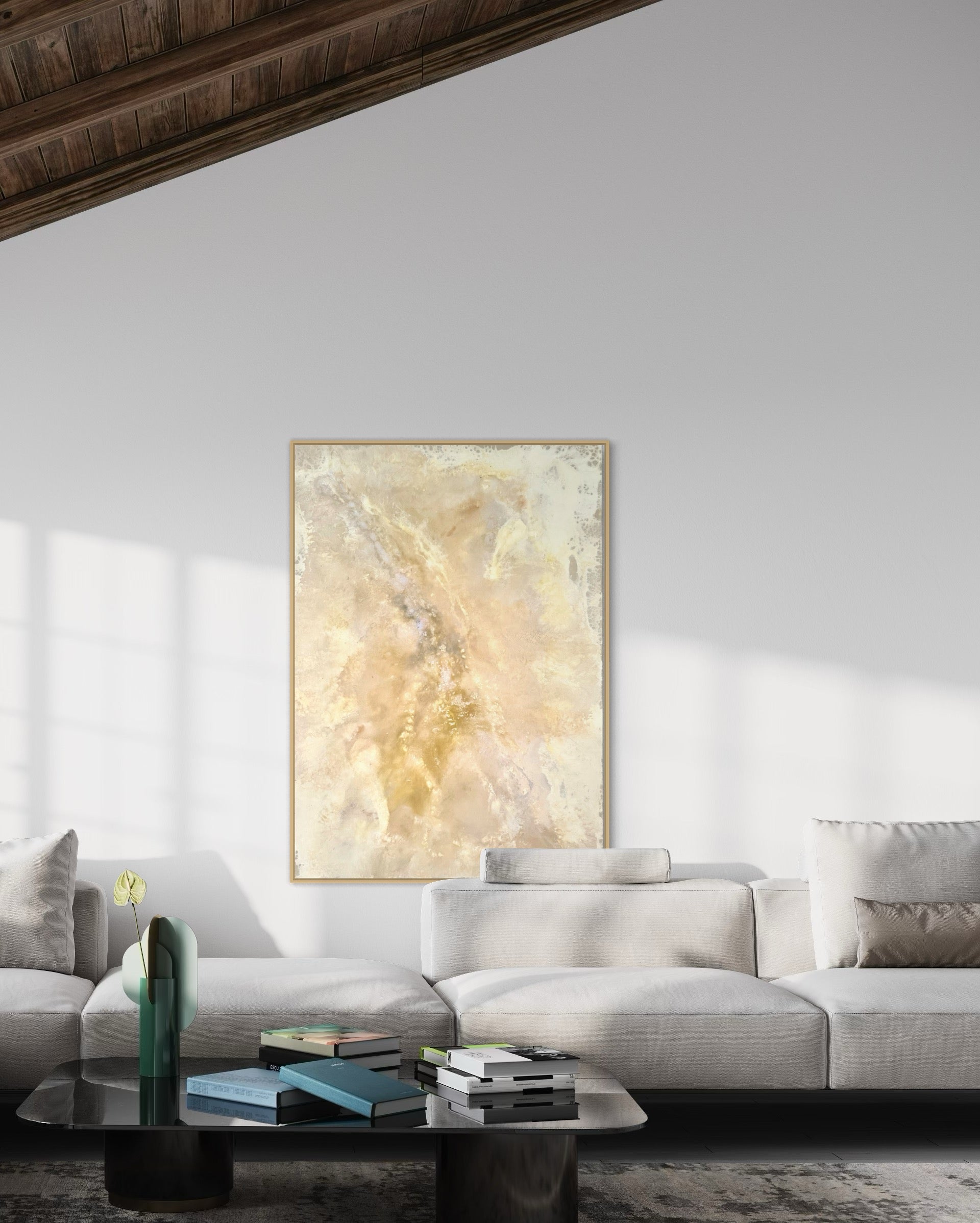 Oasis verkörpert den Gedanken eines stillen, friedlichen Ortes, an dem Seele und Geist Erholung finden können. Die zarten, natürlichen Farbtöne und die geschmeidigen Übergänge im Bild erzeugen eine sanfte, einladende Aura, die jeden Raum in ein Paradies verwandelt. Dieses Gemälde ist nicht nur ein visuelles Highlight, sondern auch eine Quelle der Inspiration und des Wohlbefindens.