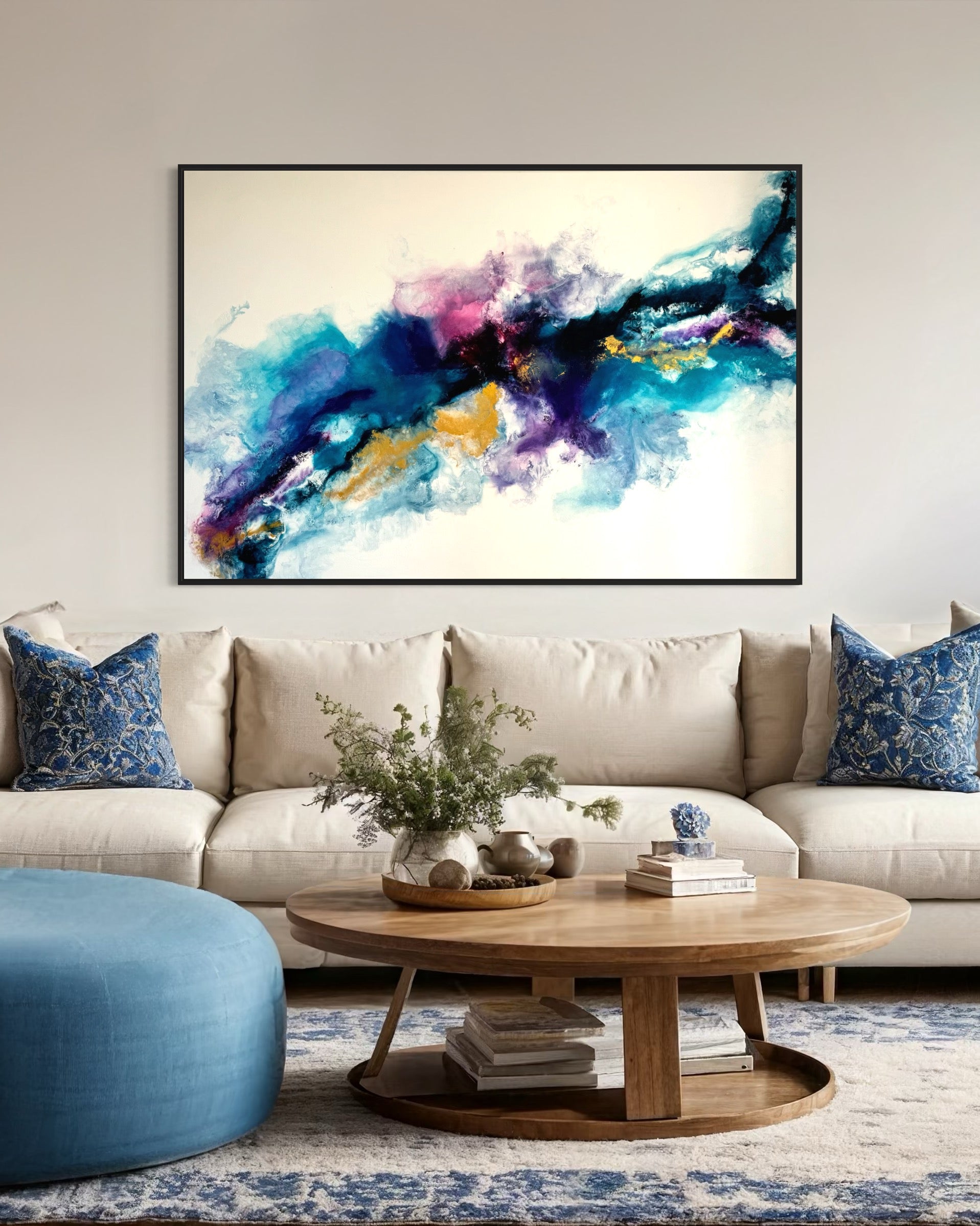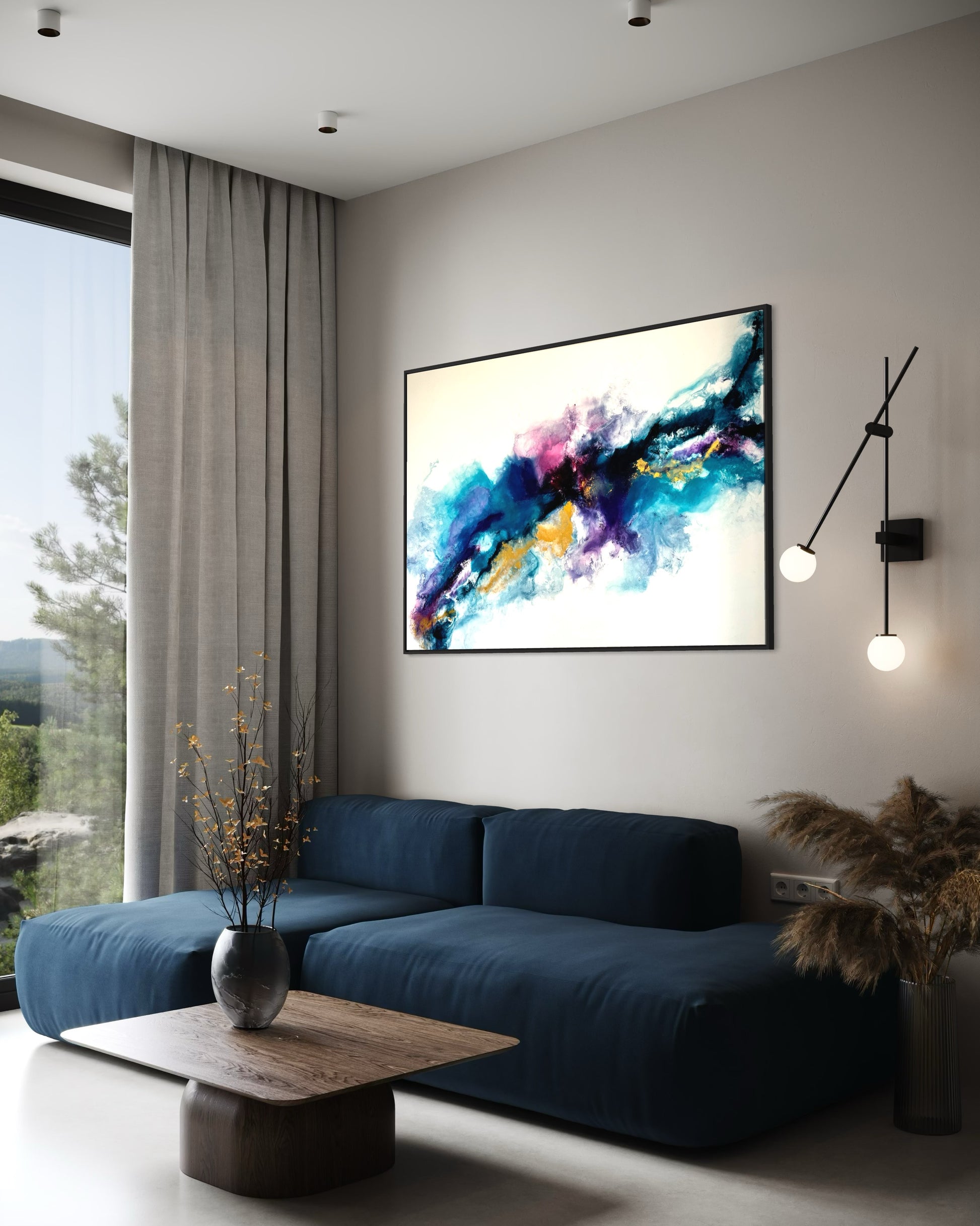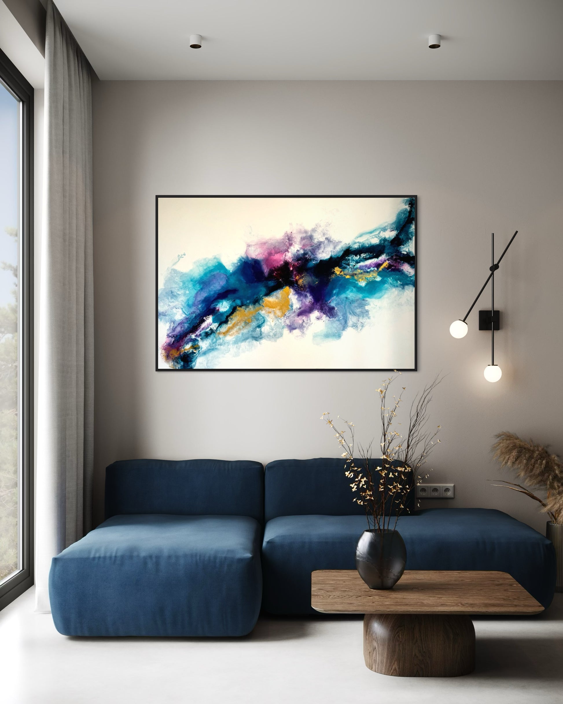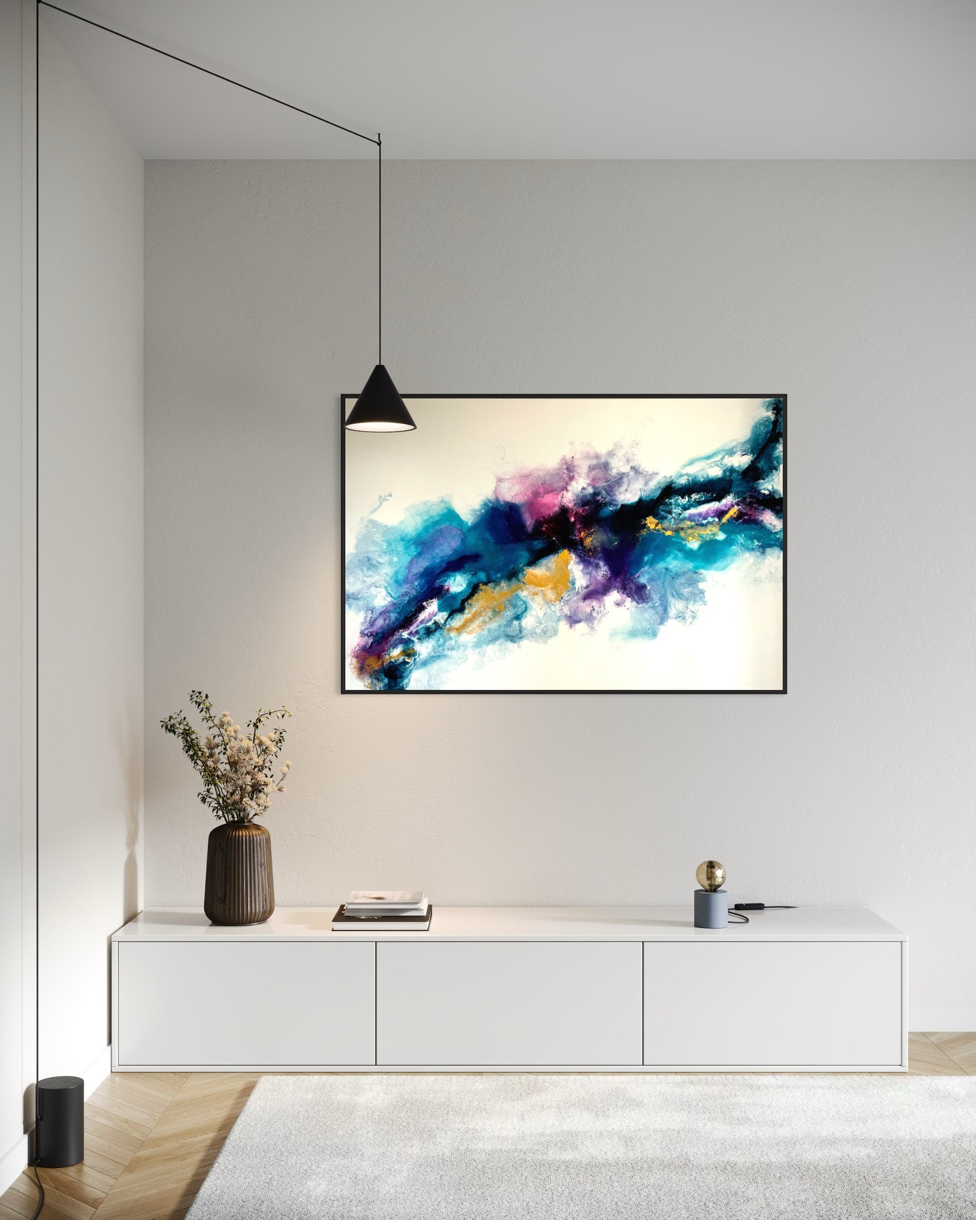 „Mindful Flow“ eignet sich ideal für Wohnräume, Büros oder exklusive Geschäftsräume, denen du eine persönliche und künstlerische Note verleihen möchtest. Das Bild strahlt nicht nur Ruhe und Klarheit aus, sondern setzt auch ein inspirierendes Statement in jedem Raum.