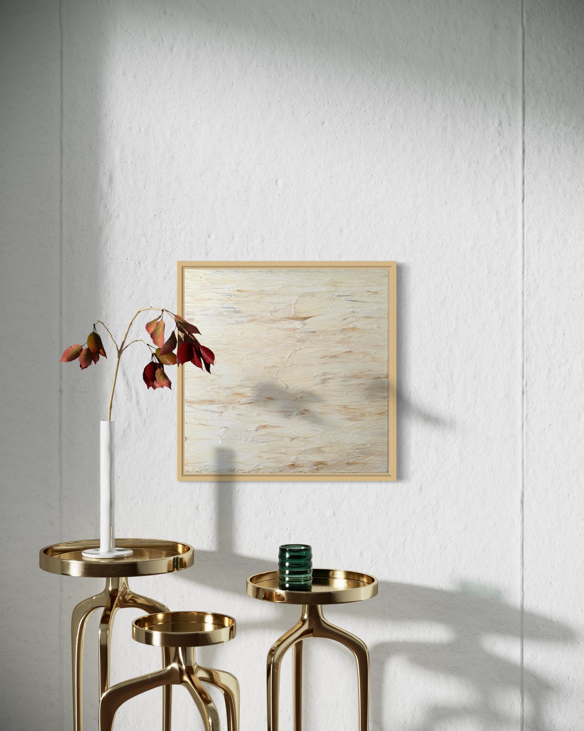 Die sanften Wellen aus strahlendem Weiß und cremigen Tönen schaffen eine beruhigende Atmosphäre und lassen dein Zuhause erstrahlen. Jedes Detail dieses Kunstwerks wurde mit größter Sorgfalt und Liebe zum Detail gestaltet, um eine zeitlose Schönheit zu schaffen, die jeden Betrachter verzaubert.