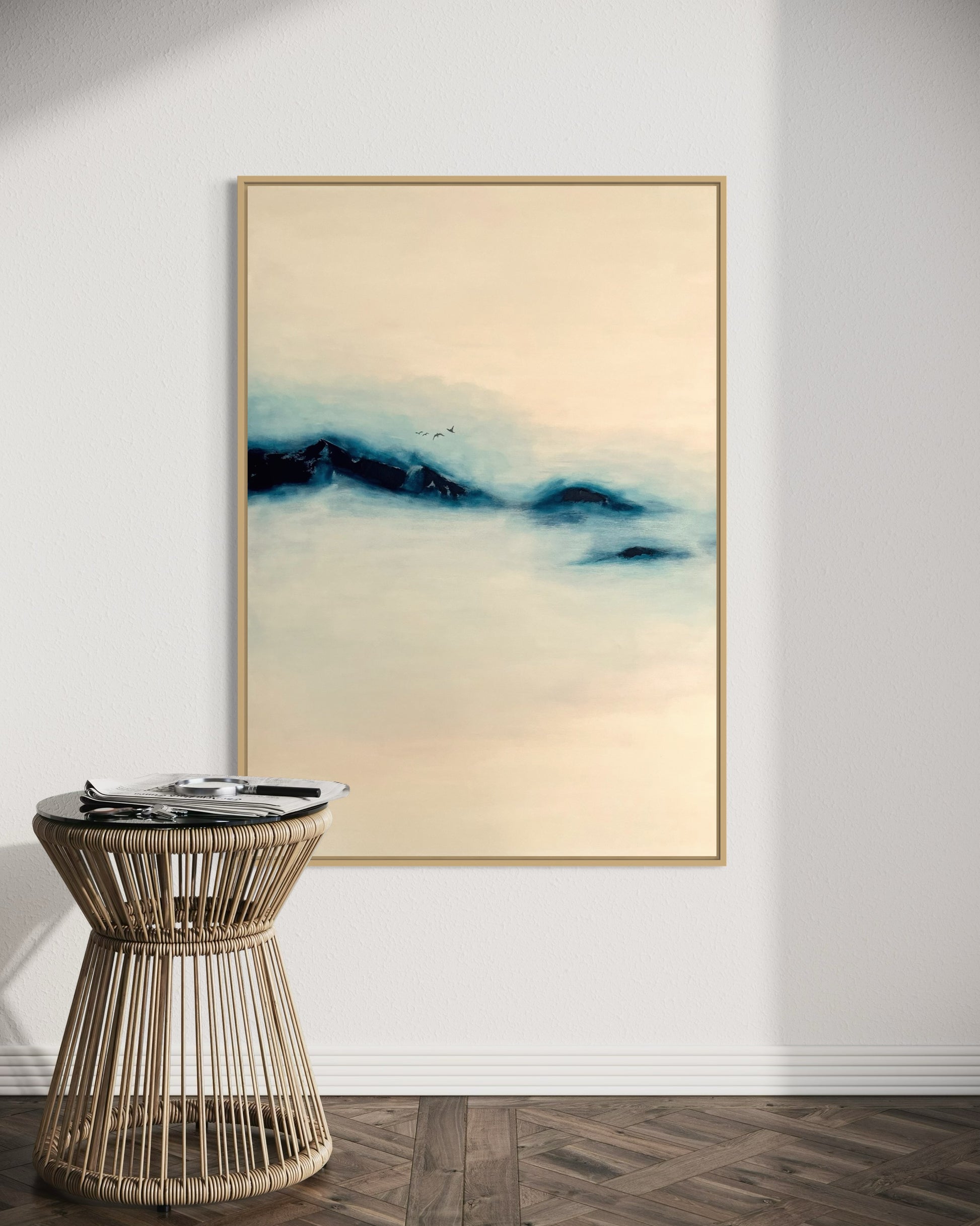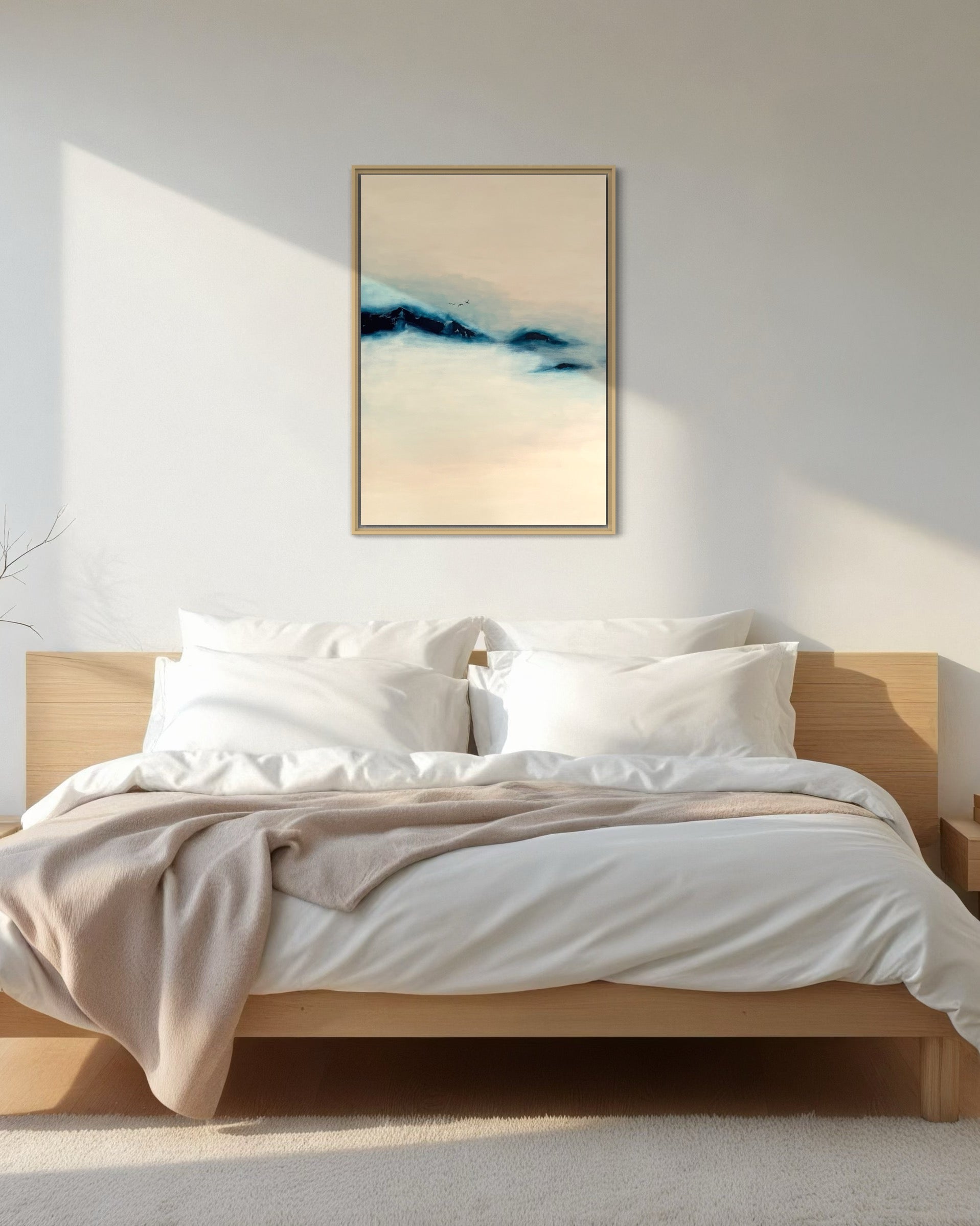 Sanft, schwebend und voller Ruhe – das Kunstwerk „Soar“ entführt den Betrachter in eine Atmosphäre der Leichtigkeit und Weite. Inspiriert von der Balance zwischen Himmel und Erde, vermittelt das Bild ein Gefühl der Freiheit, während dezente Farbverläufe und zarte Strukturen eine beruhigende Harmonie schaffen.