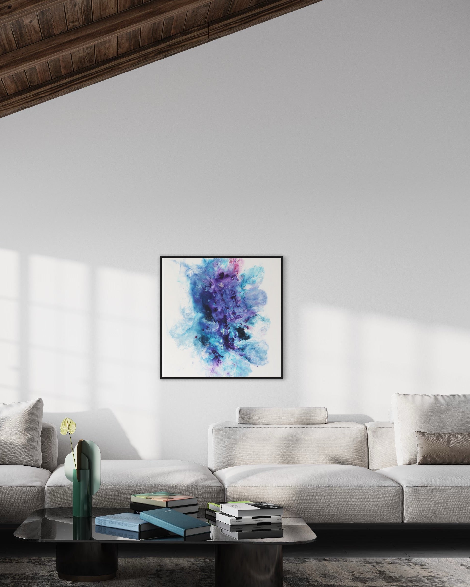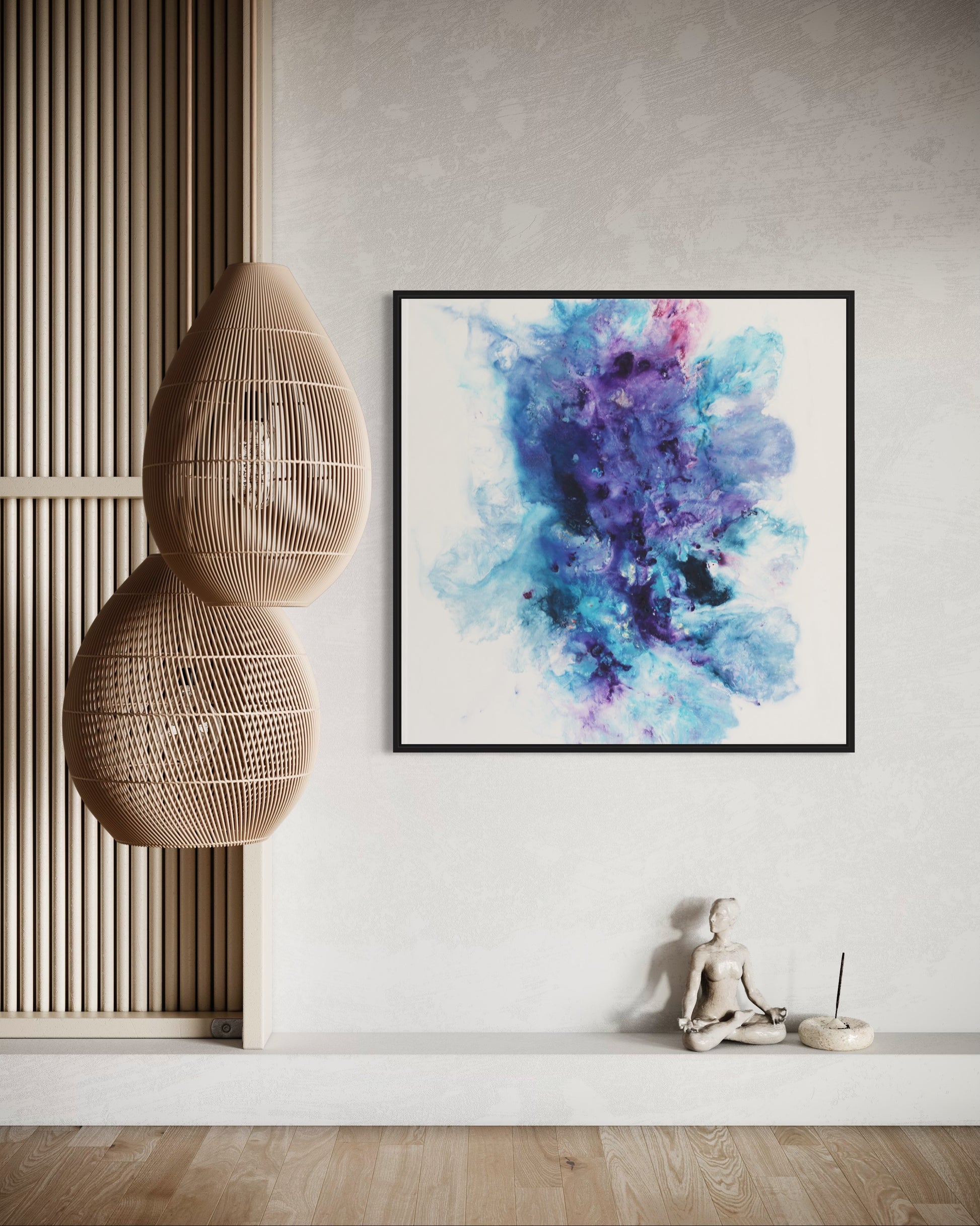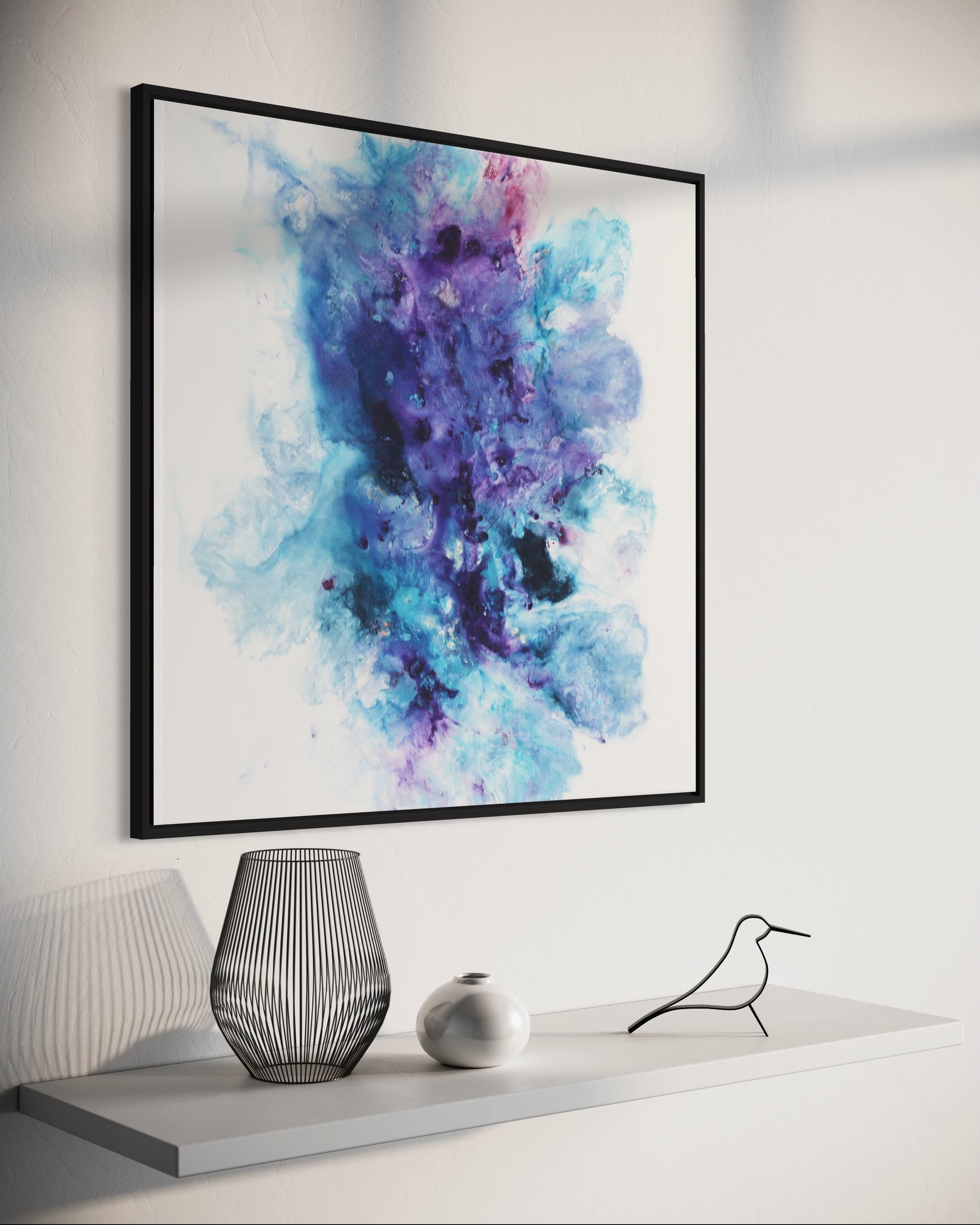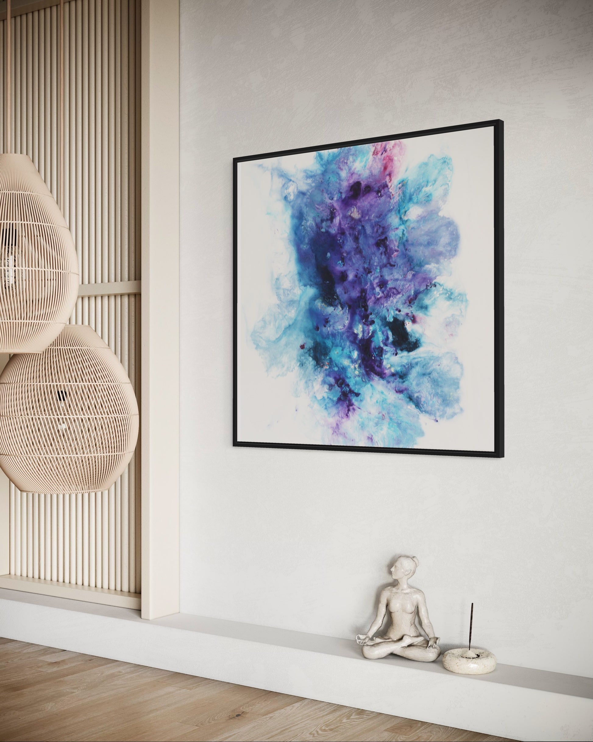 Bringe die dynamische Schönheit von "Delight" in dein Zuhause. Dieses Acrylgemälde auf Leinwand, mit den Maßen 80x80 cm, wird durch seine fließenden Blau-, Lila- und Weißtöne zu einem unverwechselbaren Highlight in jedem Raum.