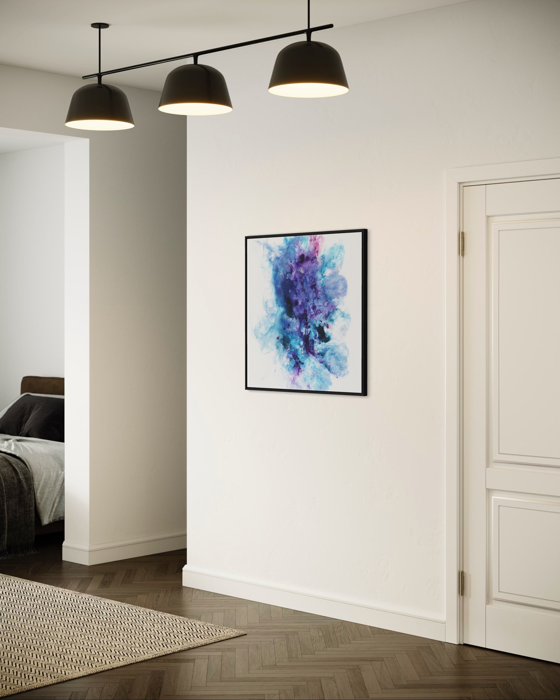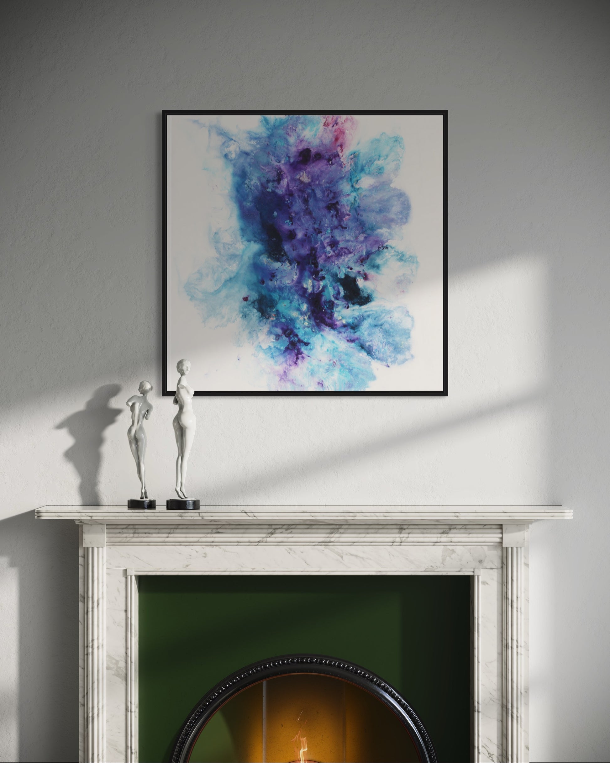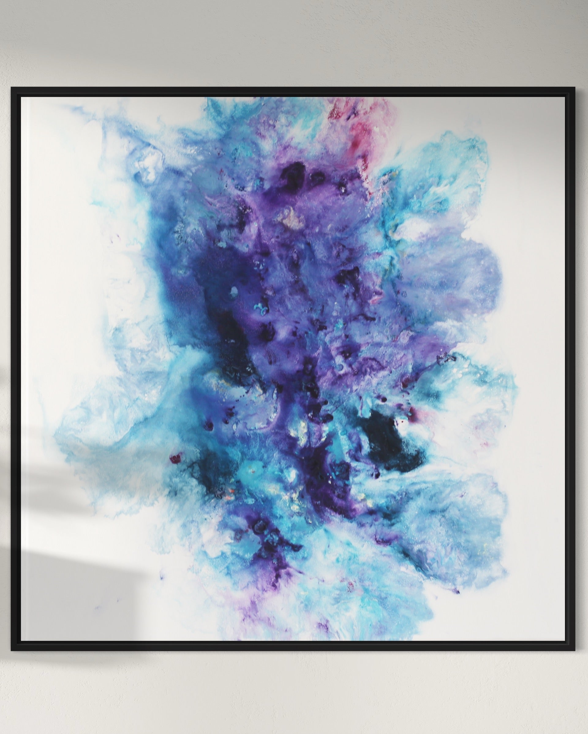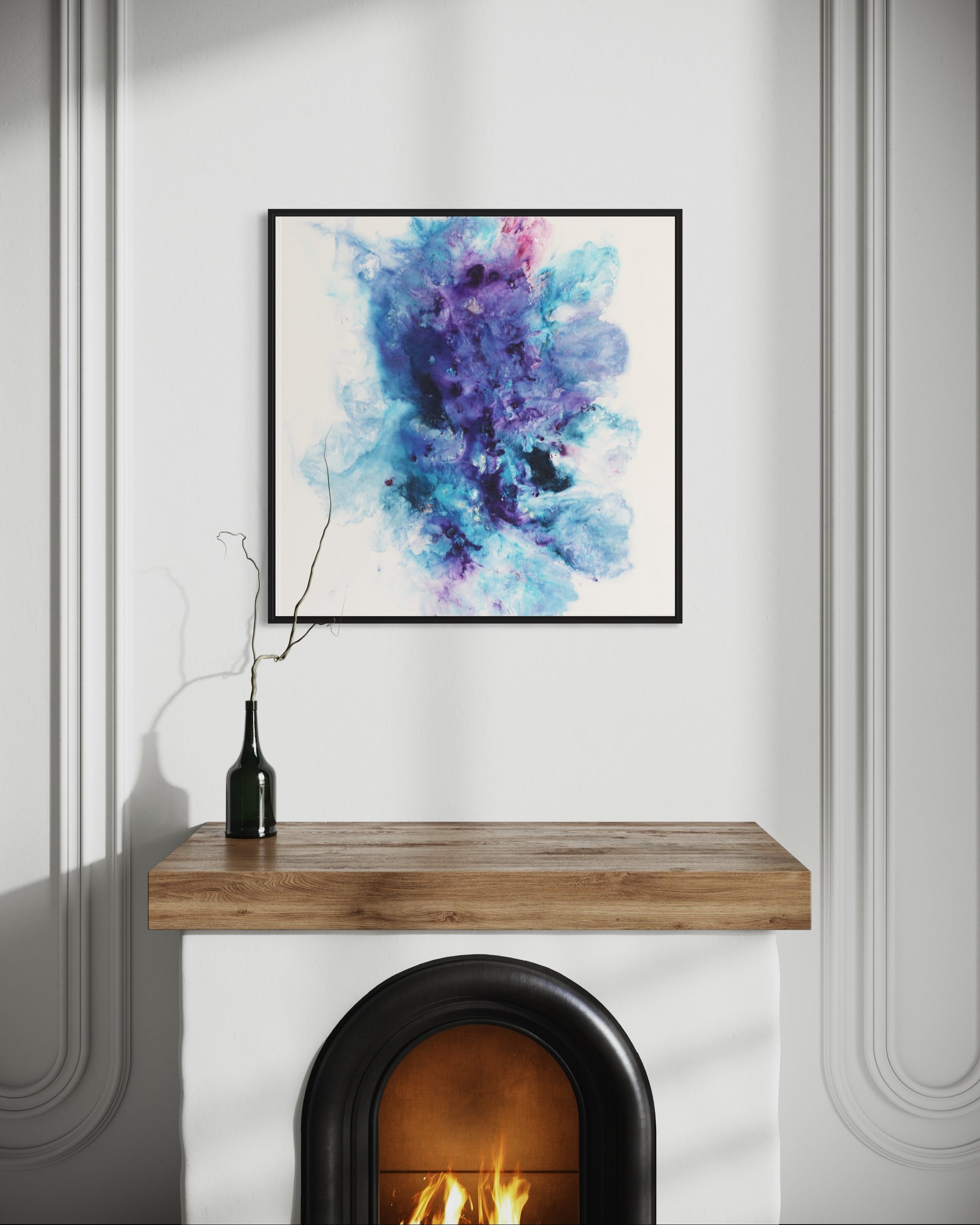 Bringe die dynamische Schönheit von "Delight" in dein Zuhause. Dieses Acrylgemälde auf Leinwand, mit den Maßen 80x80 cm, wird durch seine fließenden Blau-, Lila- und Weißtöne zu einem unverwechselbaren Highlight in jedem Raum.