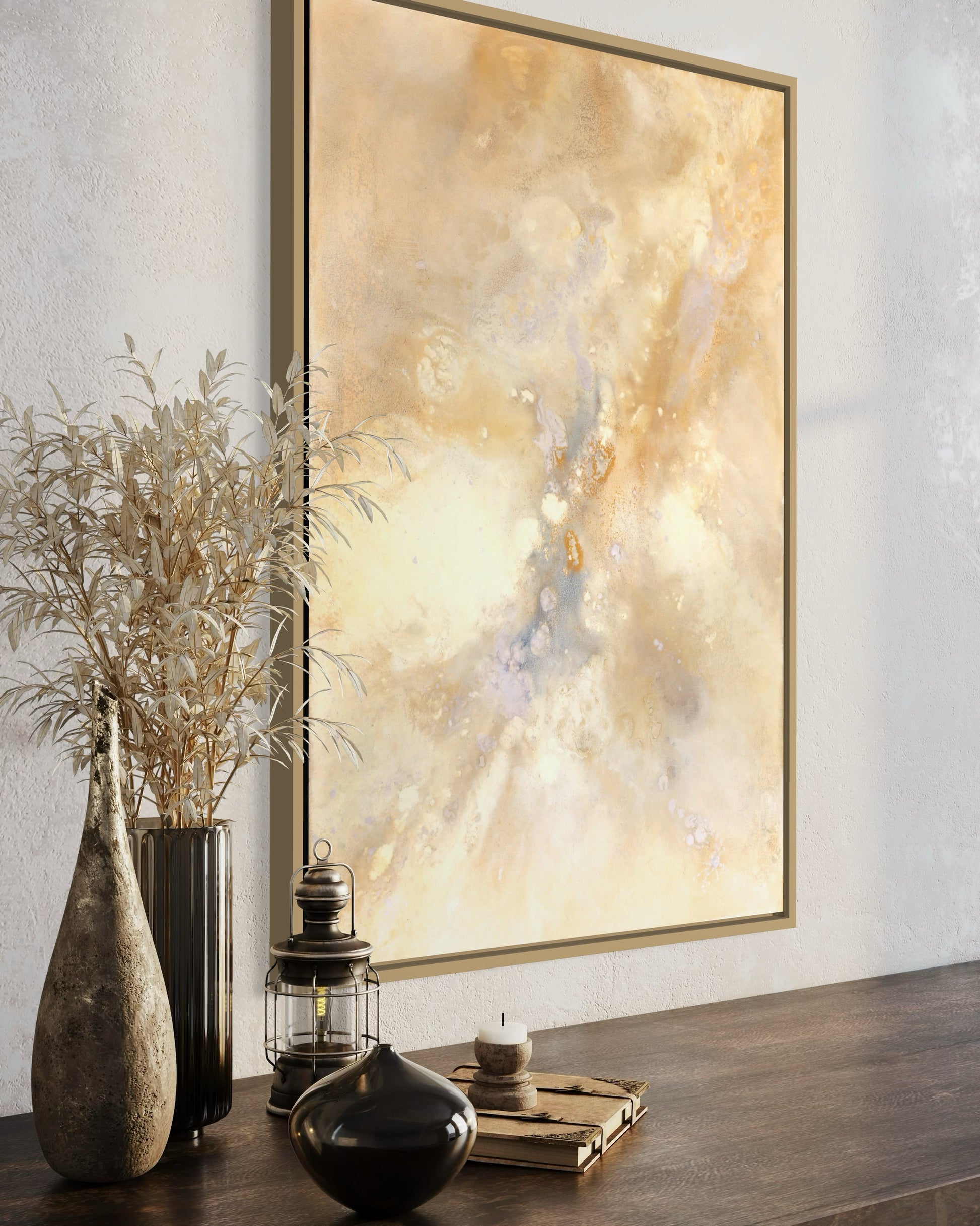 Perfekt für Wohnräume, Büros oder Galerien – "Elysium" bringt eine zeitlose Eleganz in jeden Raum. Gönn Dir ein Stück Paradies und lass Dich von der magischen Aura dieses Gemäldes verzaubern.