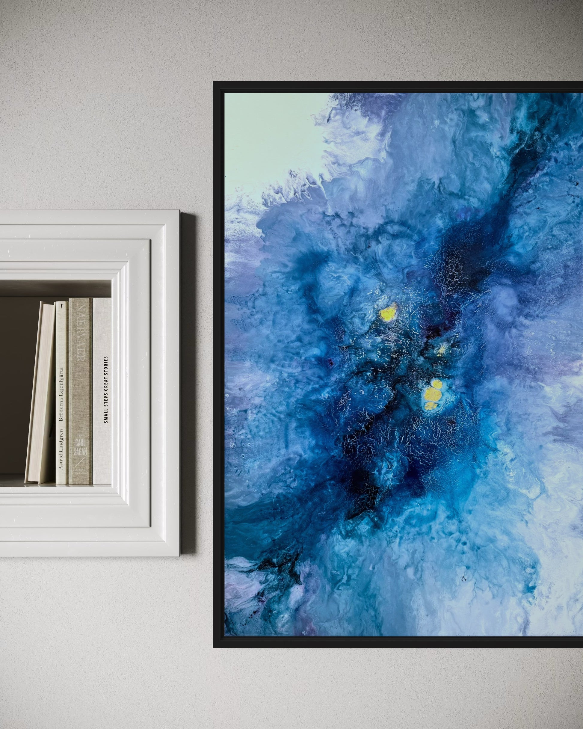Euphoria besticht durch kraftvolle Blautöne und eine harmonische Komposition. Mit einer Größe von 70x50 cm ist es ideal, um jedem Raum einen modernen und stilvollen Akzent zu verleihen. Das Bild wurde mit hochwertiger Acrylfarbe auf Leinwand gemalt und wird gerahmt geliefert – fertig zum Aufhängen.