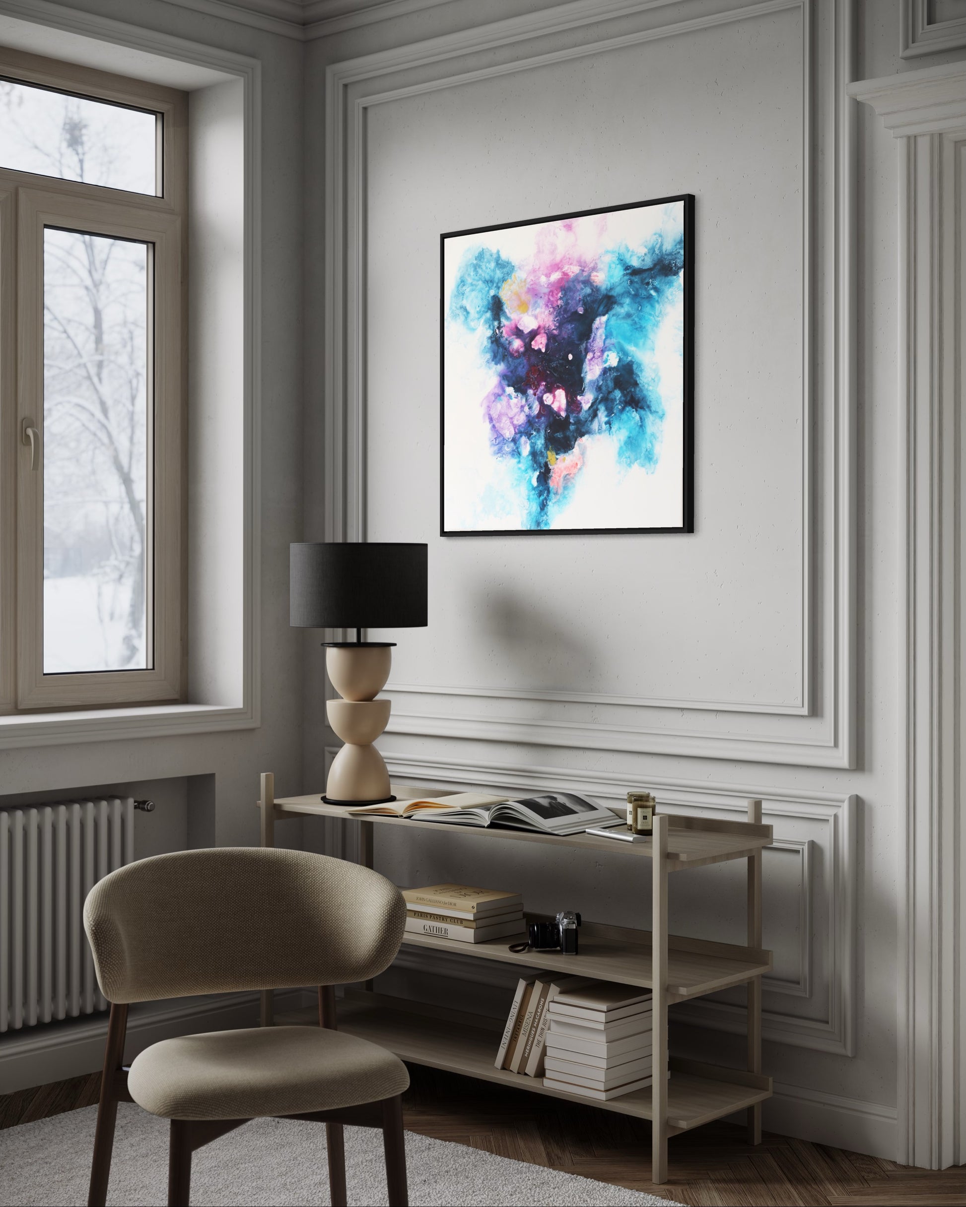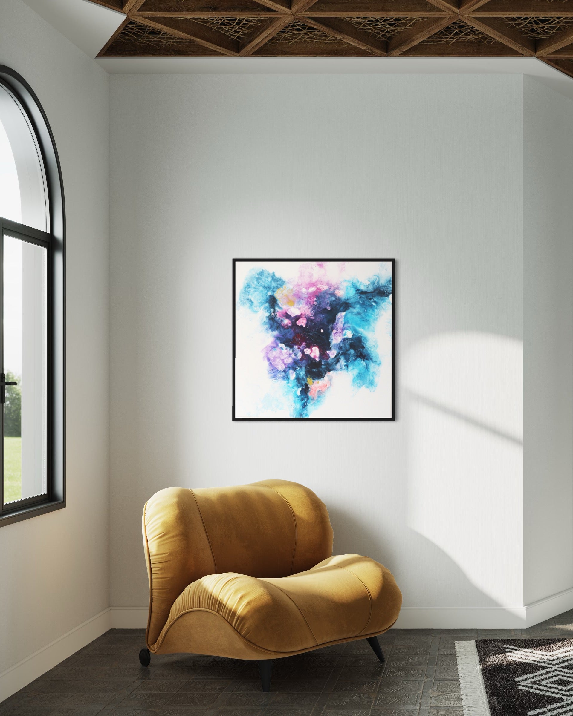 Erweitere deinen Wohnraum mit der Schönheit und dem Mysterium von "Sphere." Bestelle jetzt und lass dieses abstrakte Meisterwerk einen Hauch von kosmischem Zauber in dein Zuhause bringen.