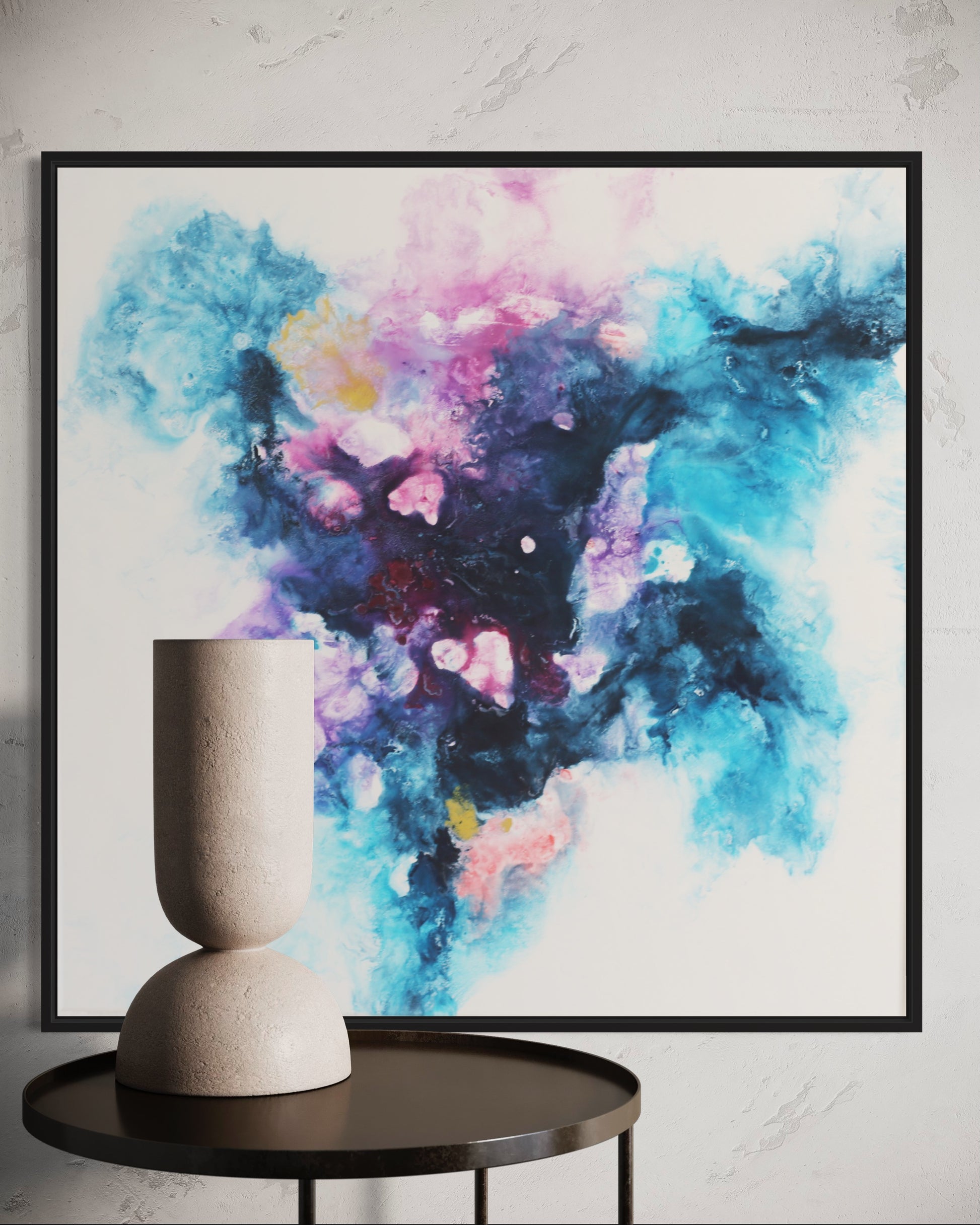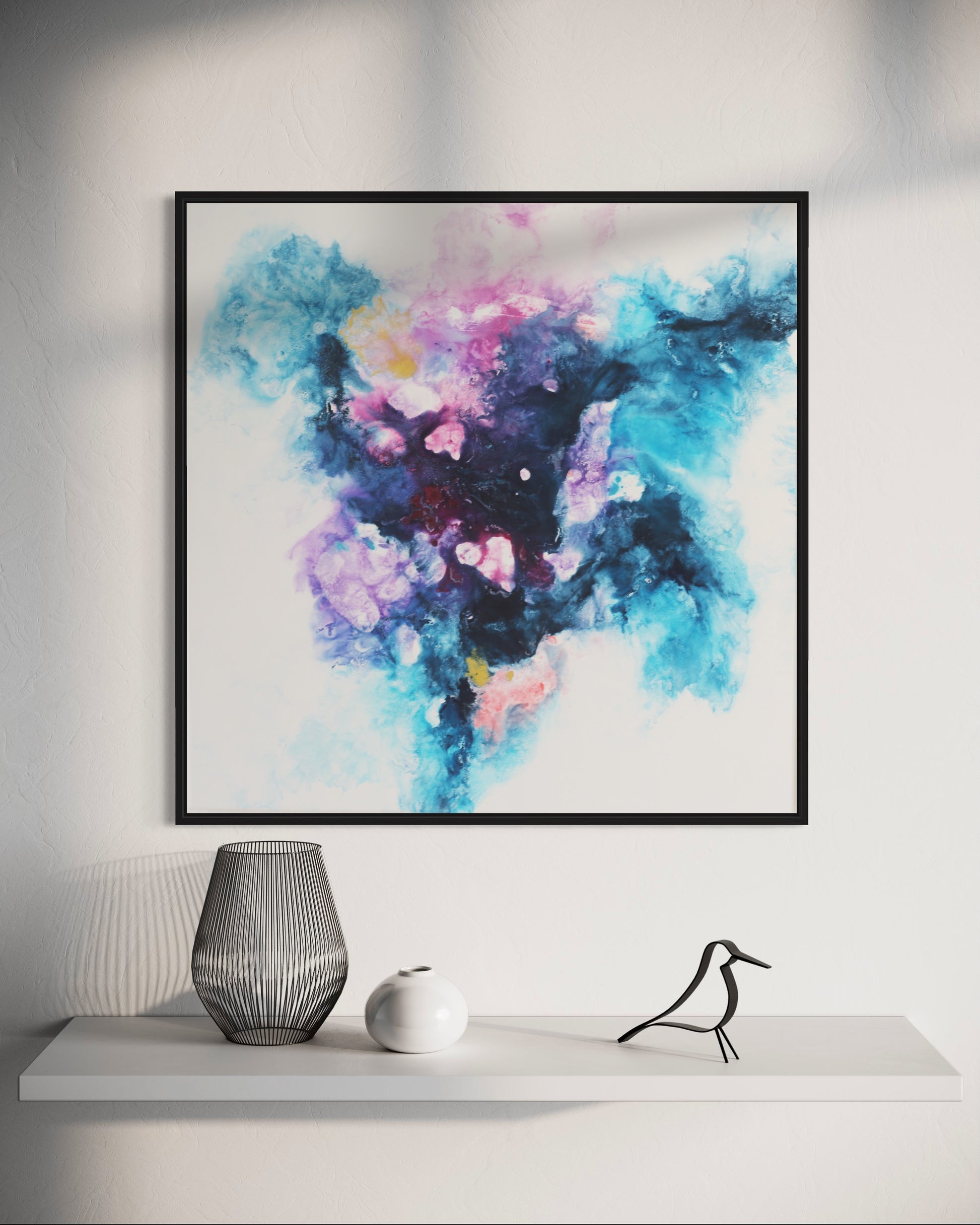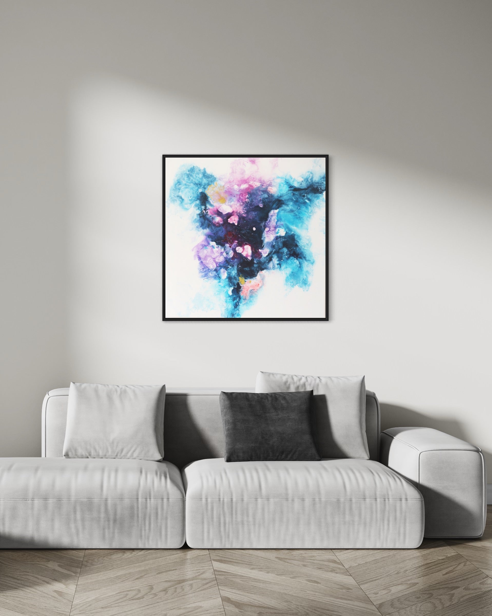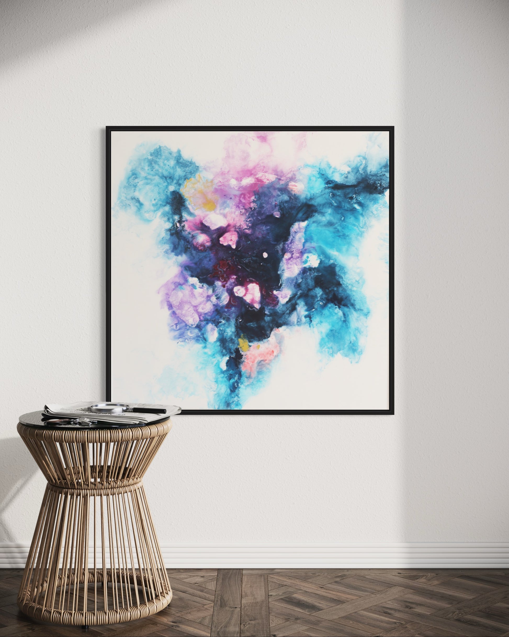 Verwandle deinen Raum mit "Sphere," einem faszinierenden abstrakten Acrylgemälde auf Leinwand, meisterhaft gefertigt mit der Fliestechnik. Dieses beeindruckende Kunstwerk, das eine Größe von 80x80 cm misst, besticht durch eine lebendige Mischung aus Blau-, Lila- und Rosatönen und schafft eine dynamische und ätherische Komposition, die jeden Kunstliebhaber begeistern wird.