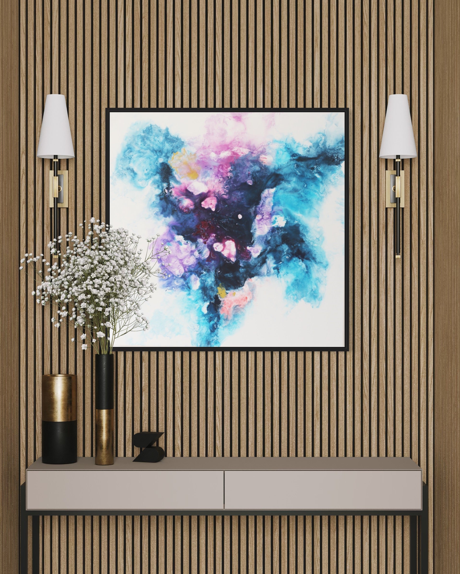 - Hochwertige Materialien: Gefertigt mit erstklassigen Acrylfarben und Leinwand für Langlebigkeit und Farbintensität.
