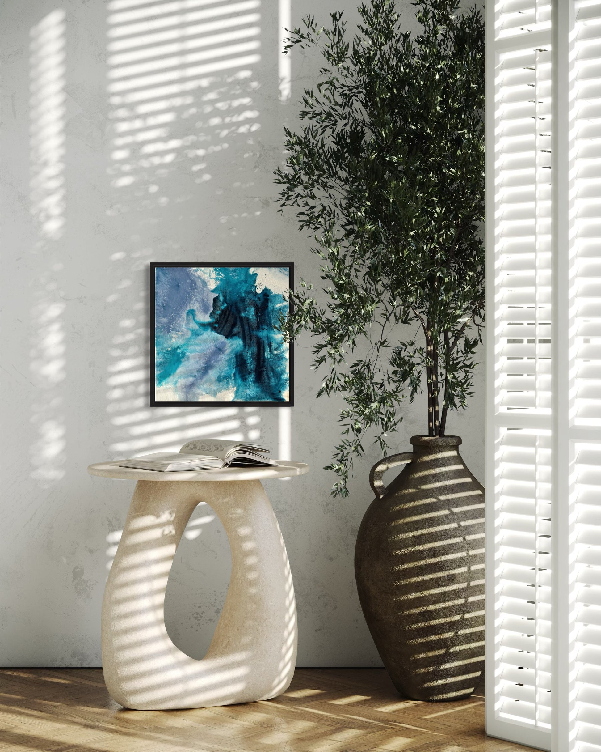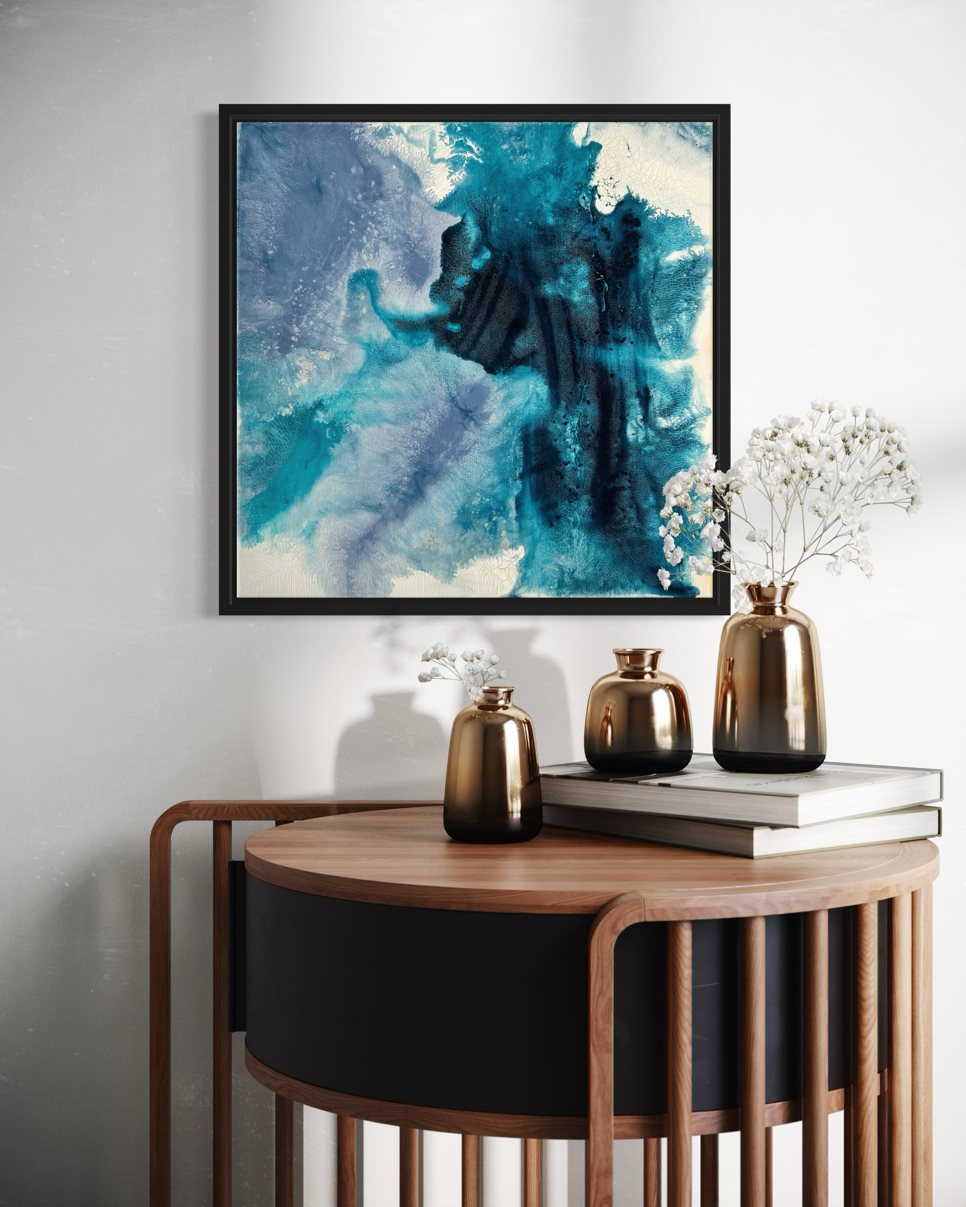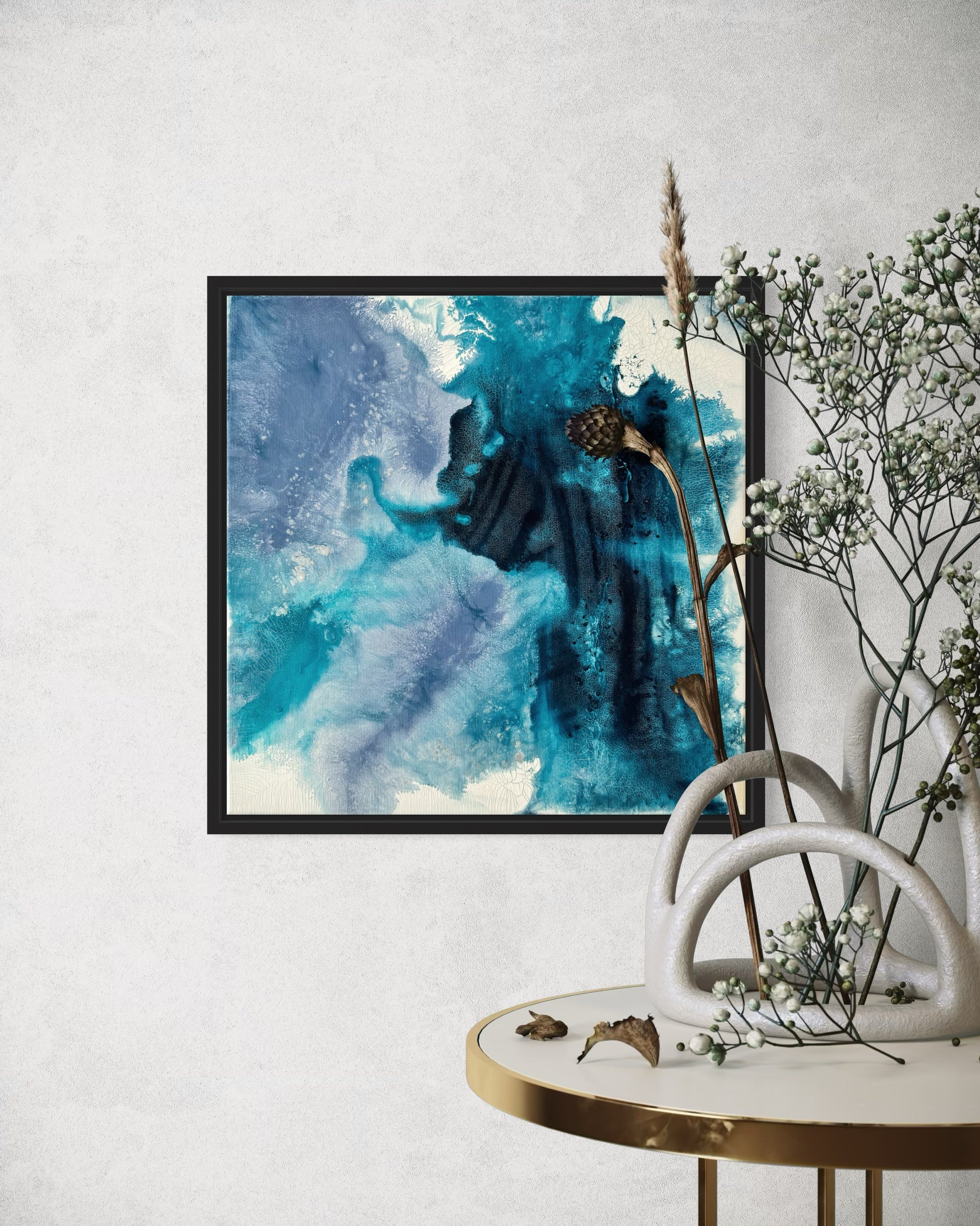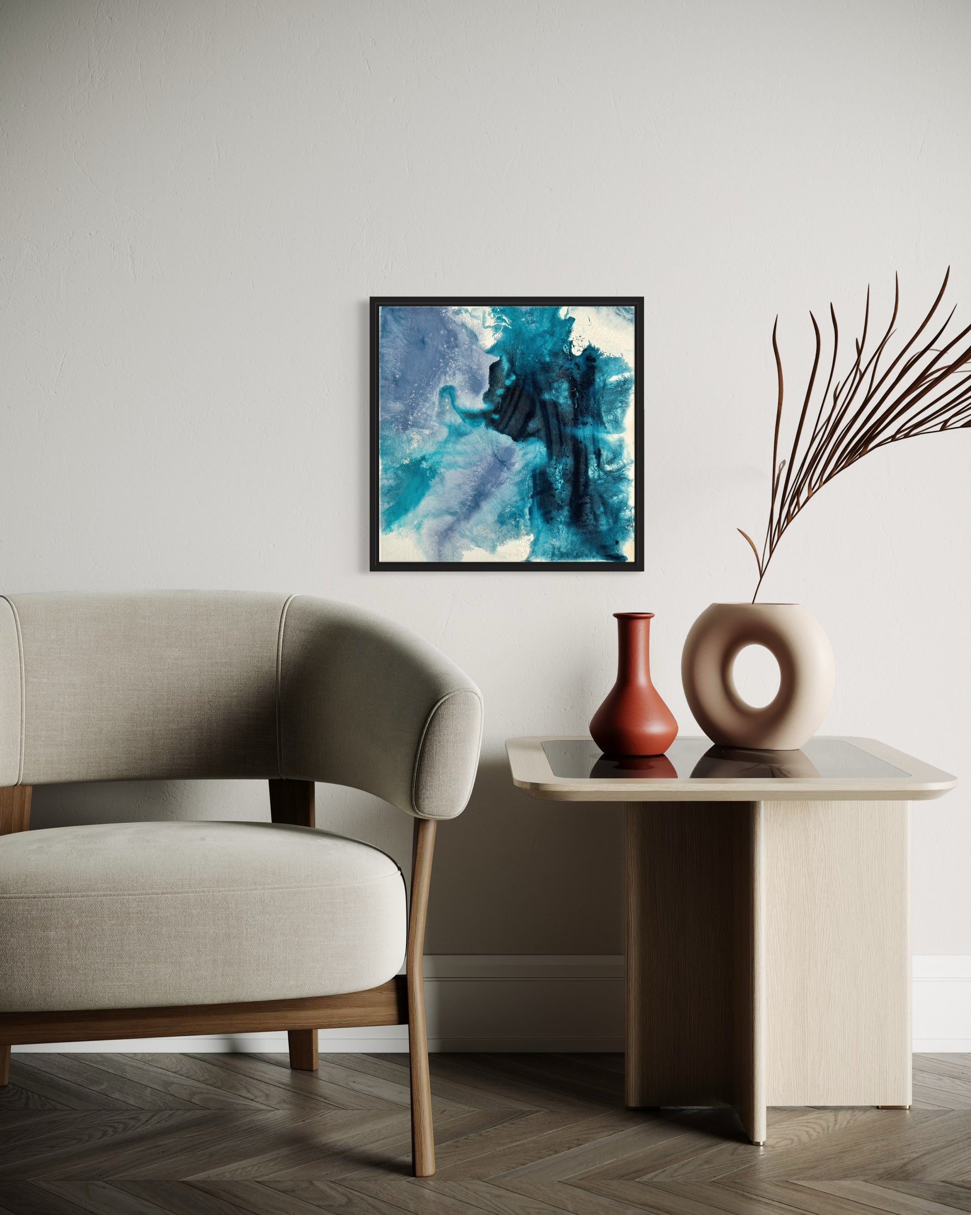 Das Bild wird gerahmt geliefert und kann direkt aufgehängt werden. Durch die kompakte Größe eignet es sich auch ideal für kleinere Wände oder als Teil einer Bilderwand. Mit seiner modernen Optik passt es zu unterschiedlichen Einrichtungsstilen und setzt einen stilvollen Akzent.