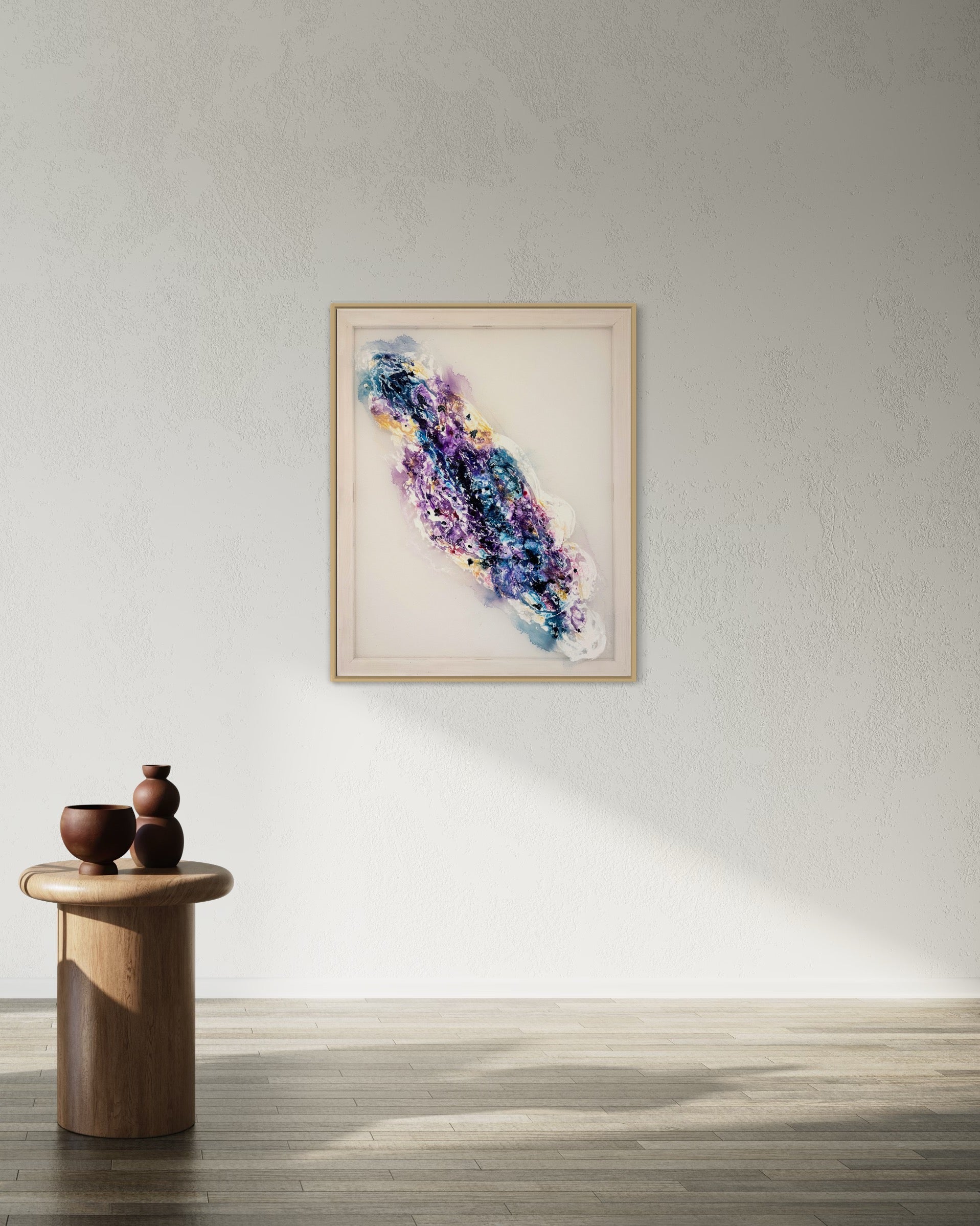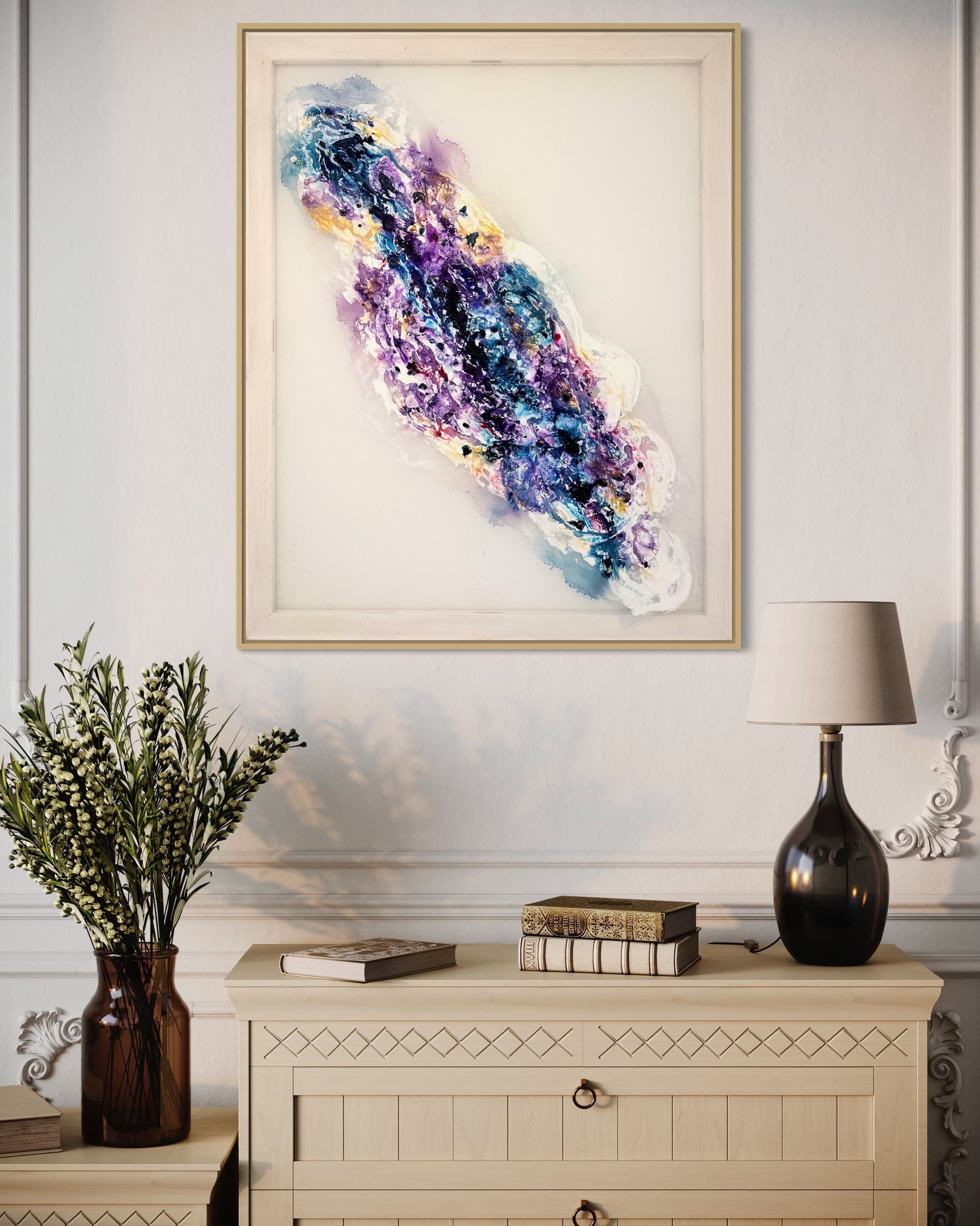 Dein Gemälde wird in einem eleganten Rahmen geliefert, der die Schönheit des Kunstwerks unterstreicht und sich nahtlos in deine moderne oder klassische Einrichtung integriert. Egal ob als Blickfang im Wohnzimmer, im Büro oder in einem Galeriebereich, "Ethereal Cosmos" wird sicherlich bewundernde Blicke auf sich ziehen und eine inspirierende Atmosphäre schaffen.