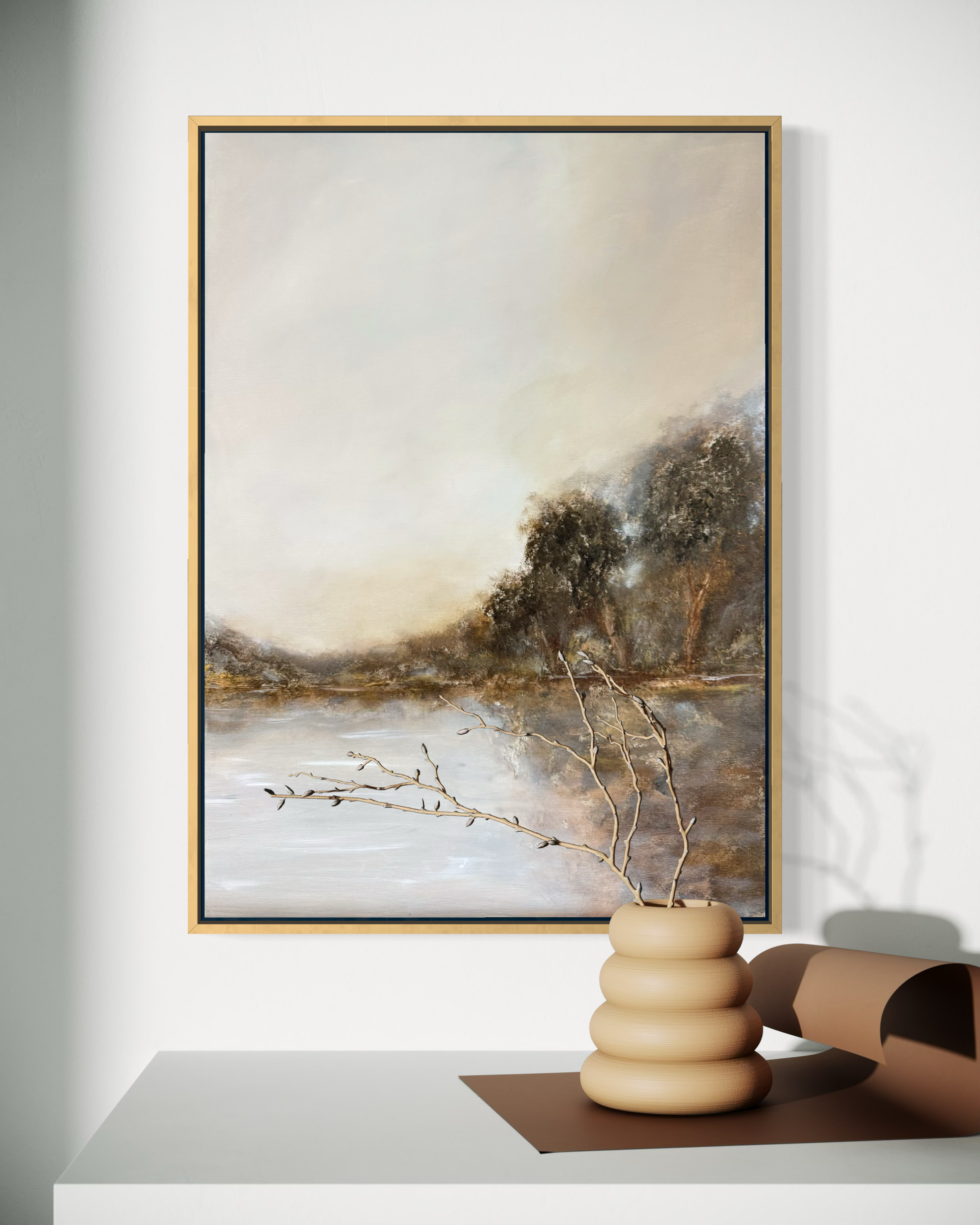 „Horizon of Calm“ strahlt eine sanfte, hoffnungsvolle Ruhe aus. Es erinnert an das erste Licht des Tages, wenn sich Himmel und Wasser fast berühren und alles in warmem Nebel liegt.