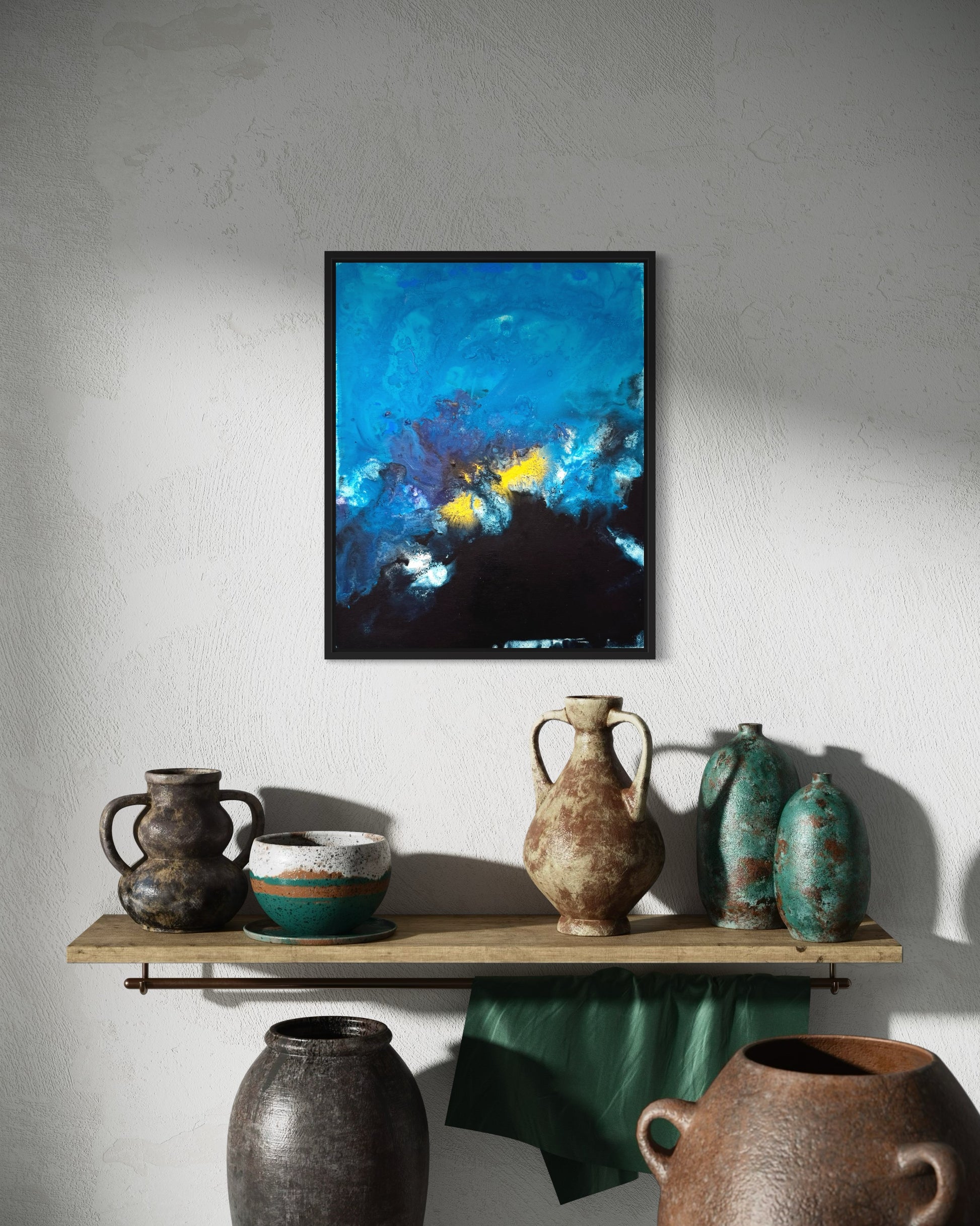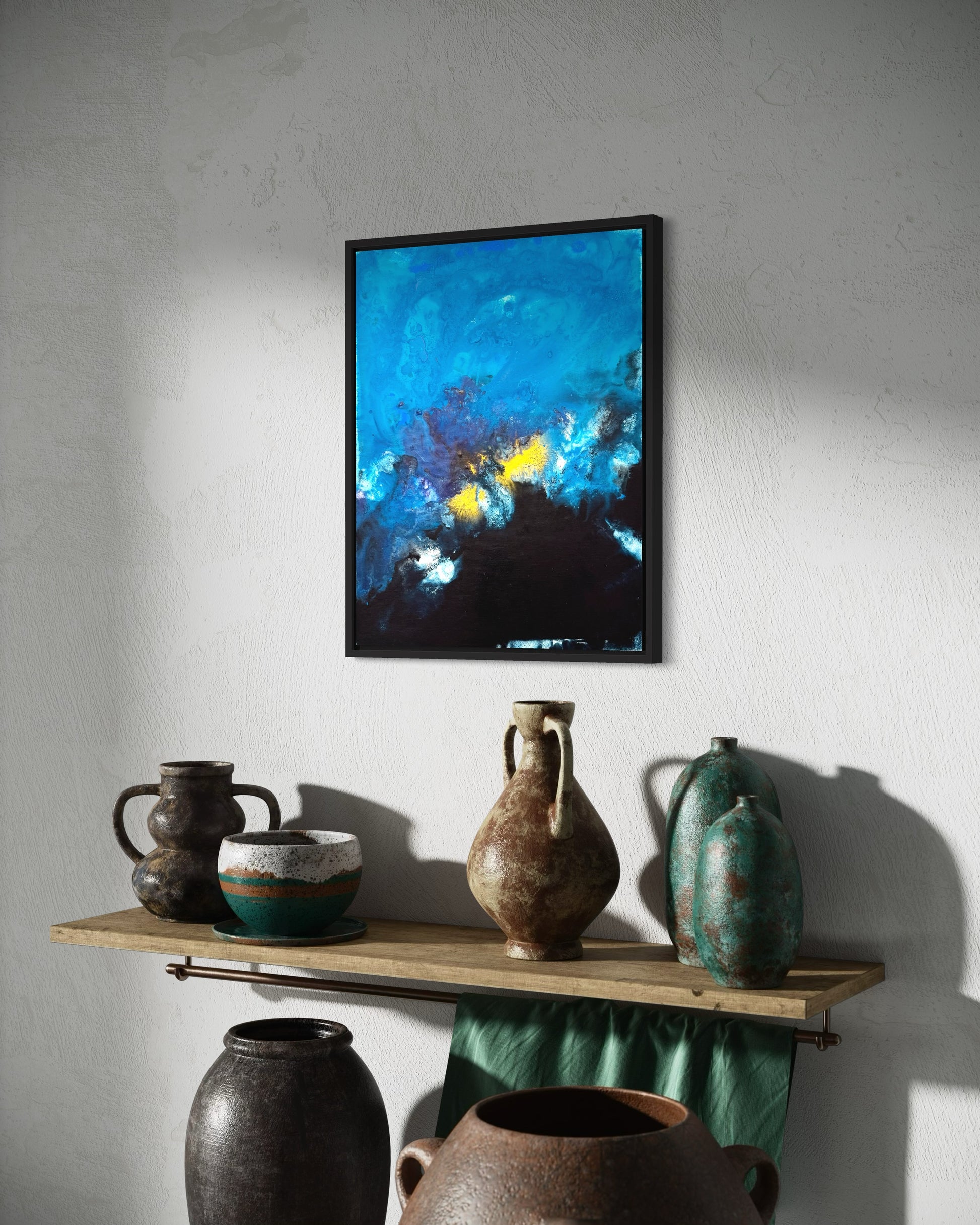Dieses Kunstwerk ist mehr als nur ein Dekorationsstück; es ist ein Fenster in eine andere Welt, das Emotionen weckt und Gedanken anregt. Ob im Wohnzimmer, Büro oder Schlafzimmer – "Depths" setzt ein Zeichen und macht deinen Raum zu etwas Einzigartigem.