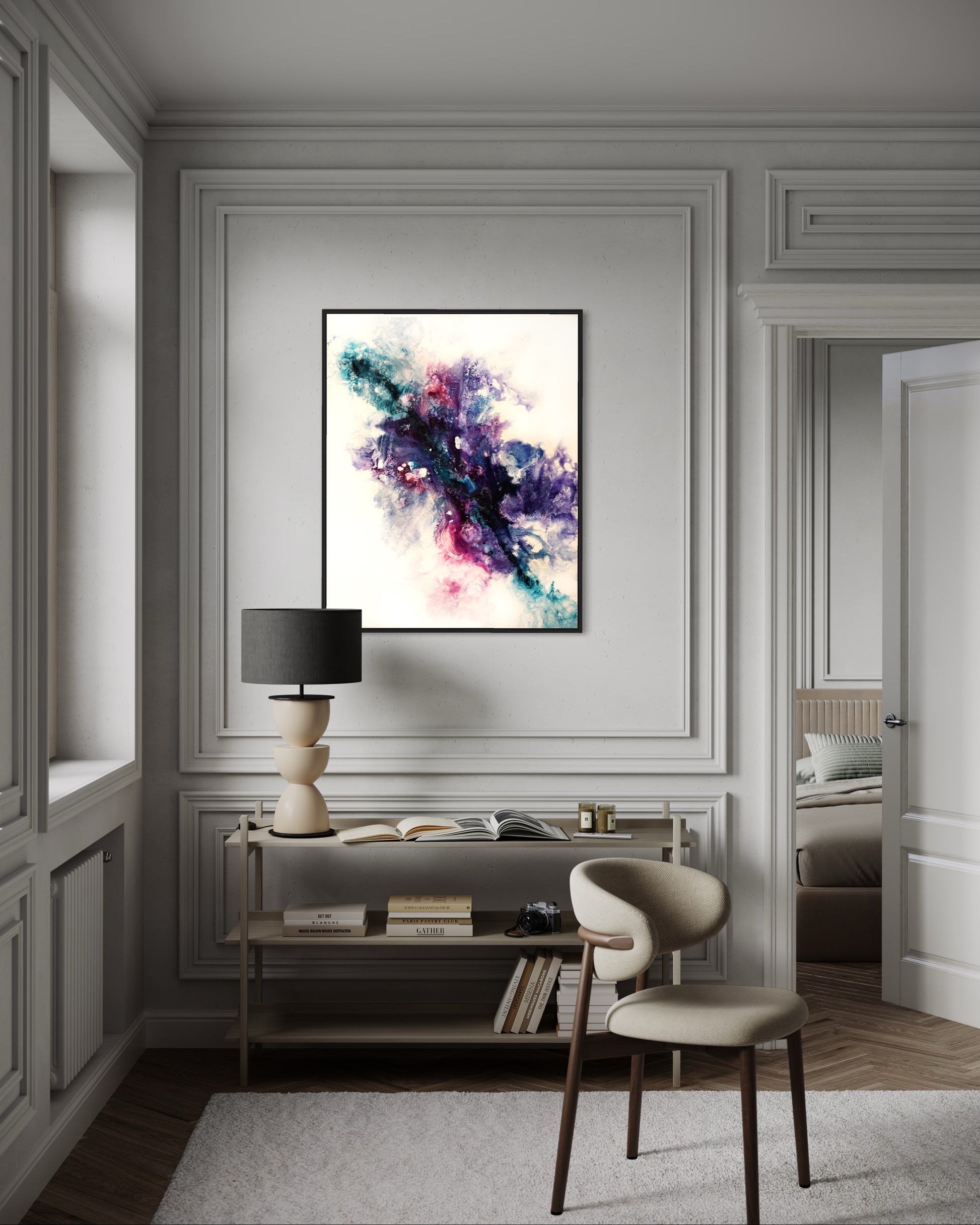 - Eingerahmt: Das Bild wird fertig eingerahmt geliefert, sodass du es sofort aufhängen kannst.