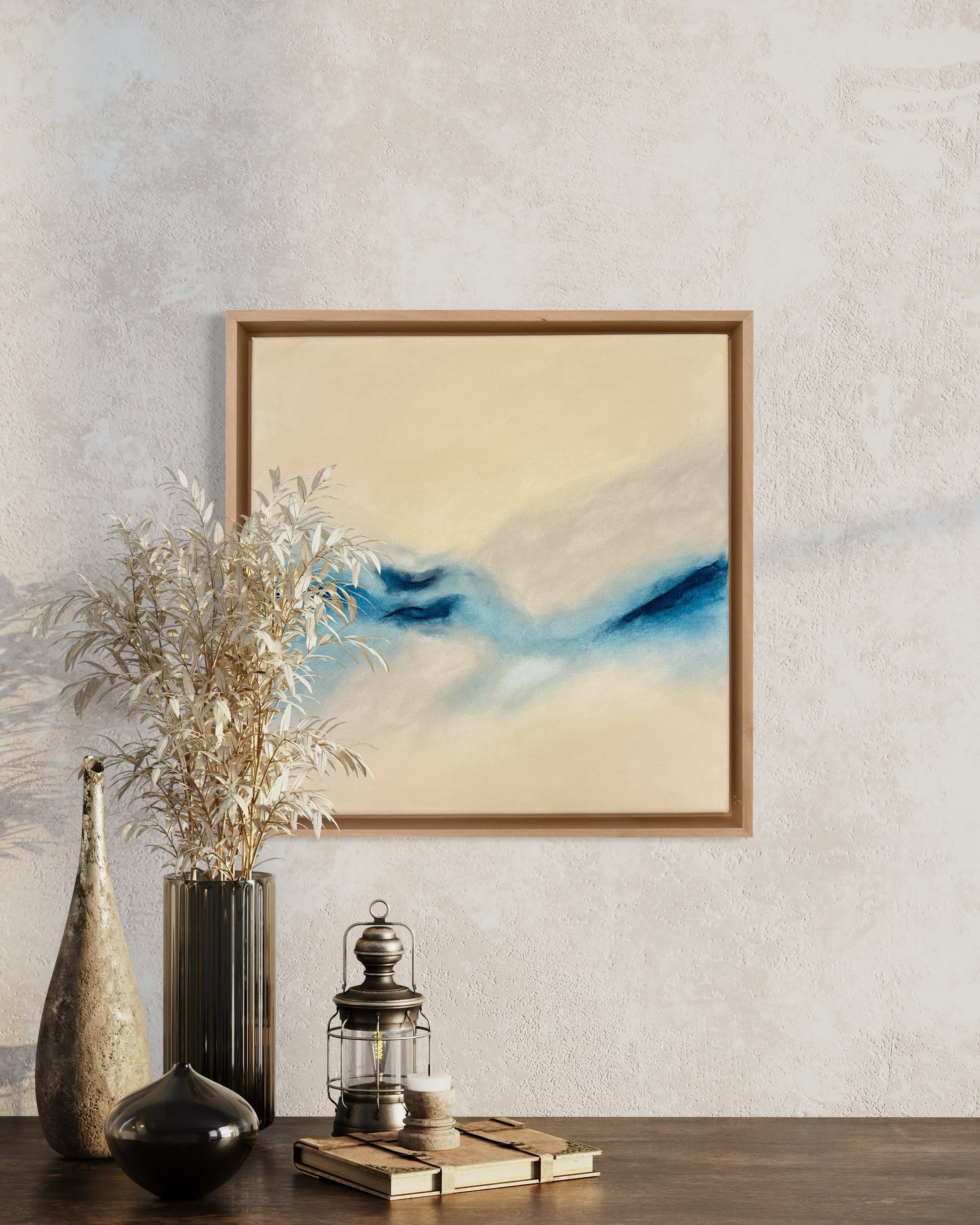"Stillness" ist ein Werk aus der Serie "Pure Balance", das durch seine harmonische Komposition und ruhige Farbgebung besticht. Mit hochwertiger Acrylfarbe auf Leinwand gefertigt, misst es 40x40 cm und wird mit einem eleganten Rahmen geliefert, der die klare Ästhetik des Bildes unterstreicht. Perfekt für moderne Wohnräume wie Wohnzimmer, Schlafzimmer oder Büro.