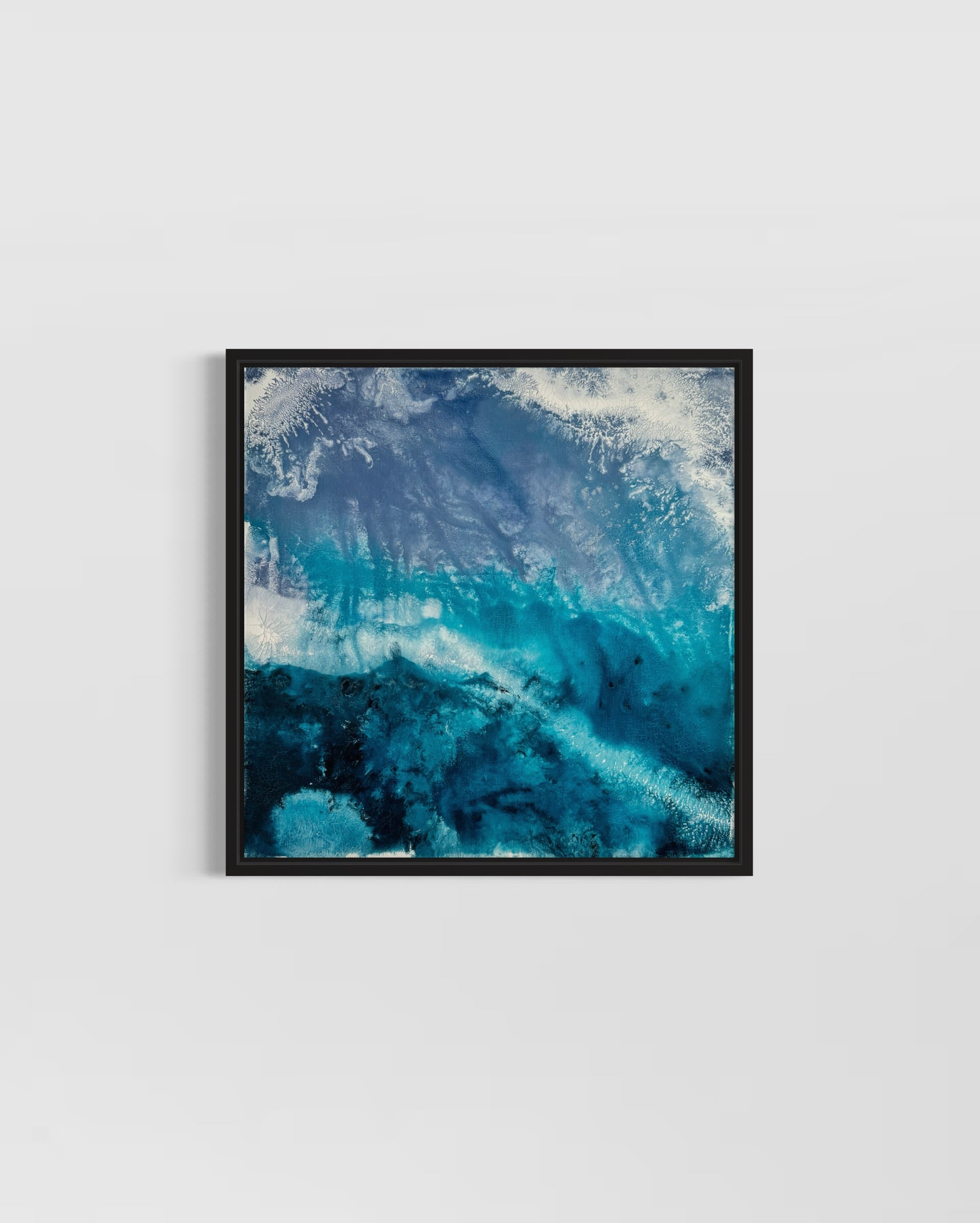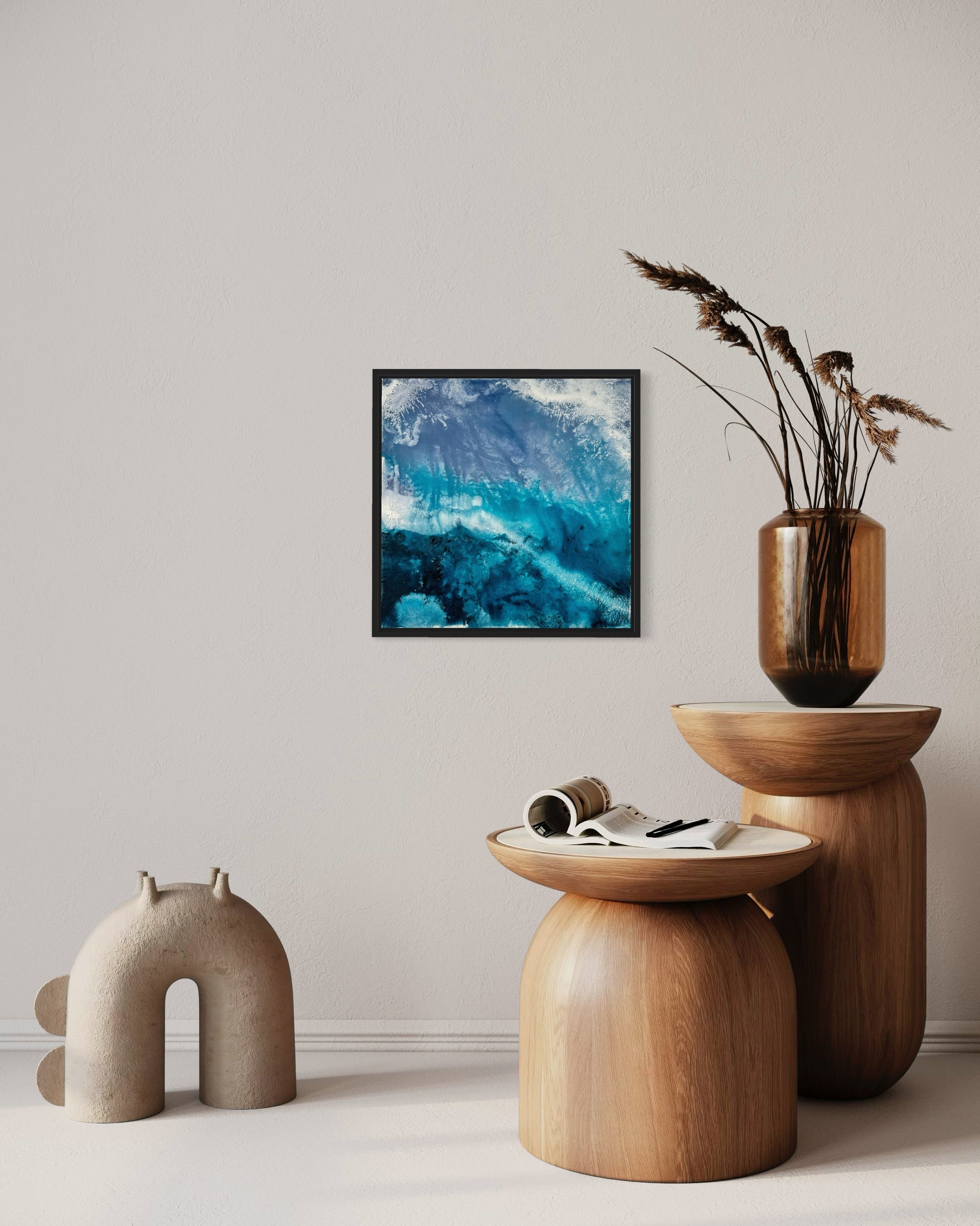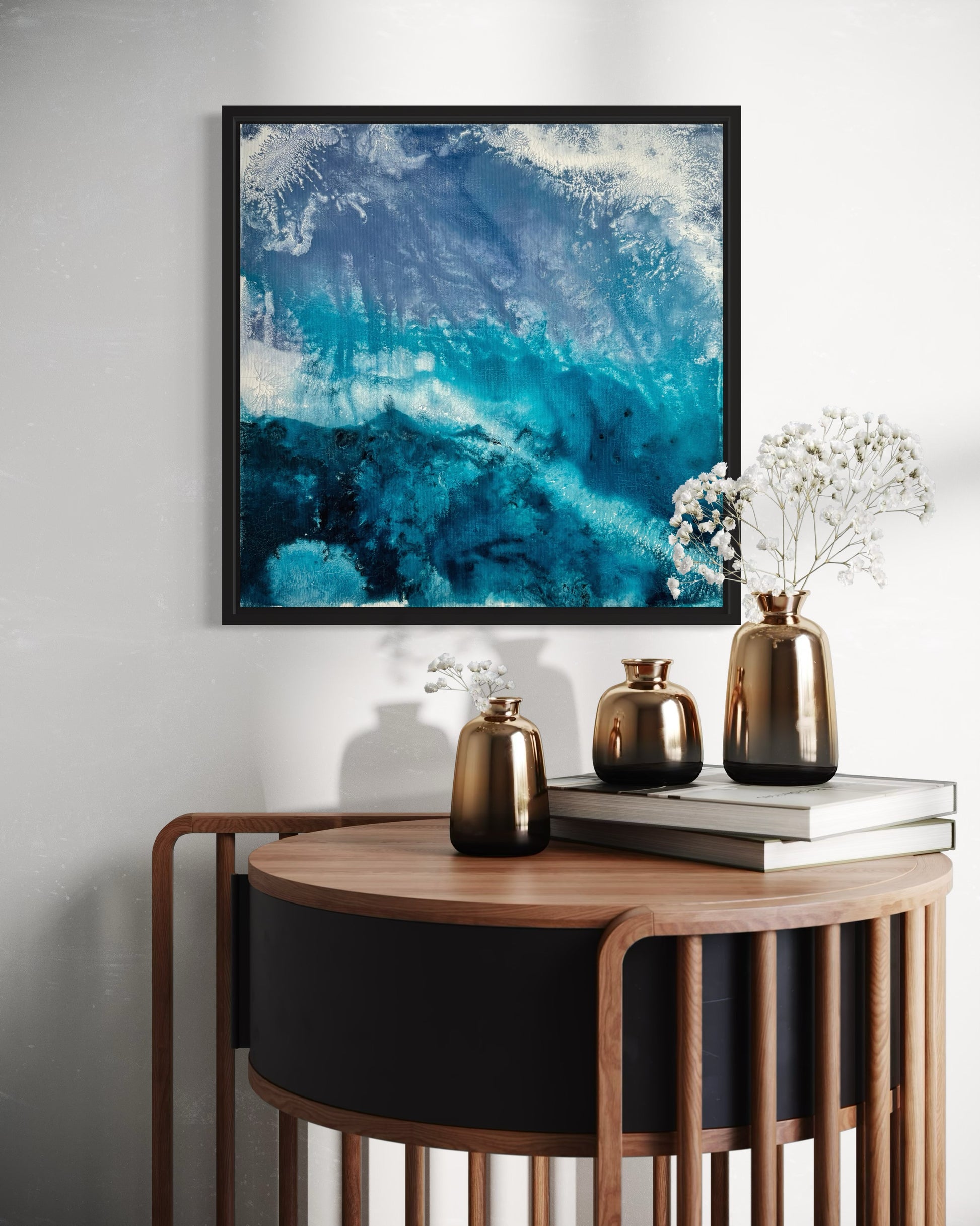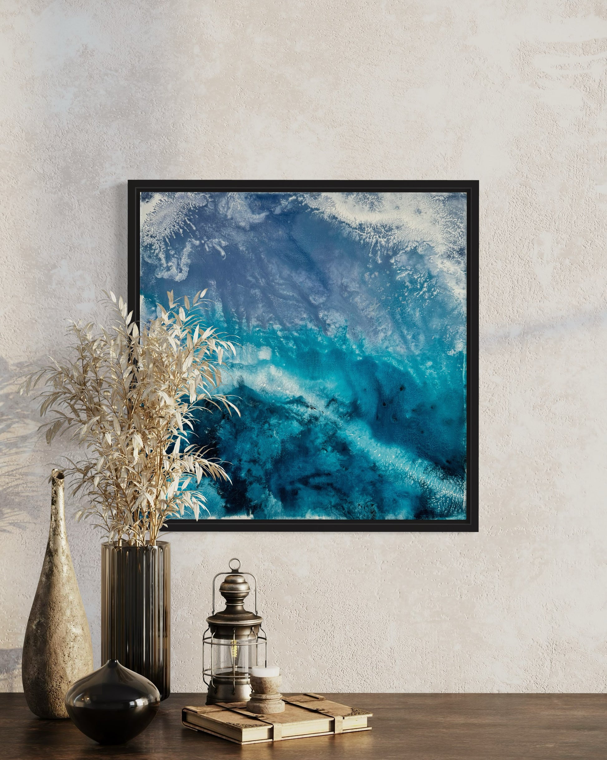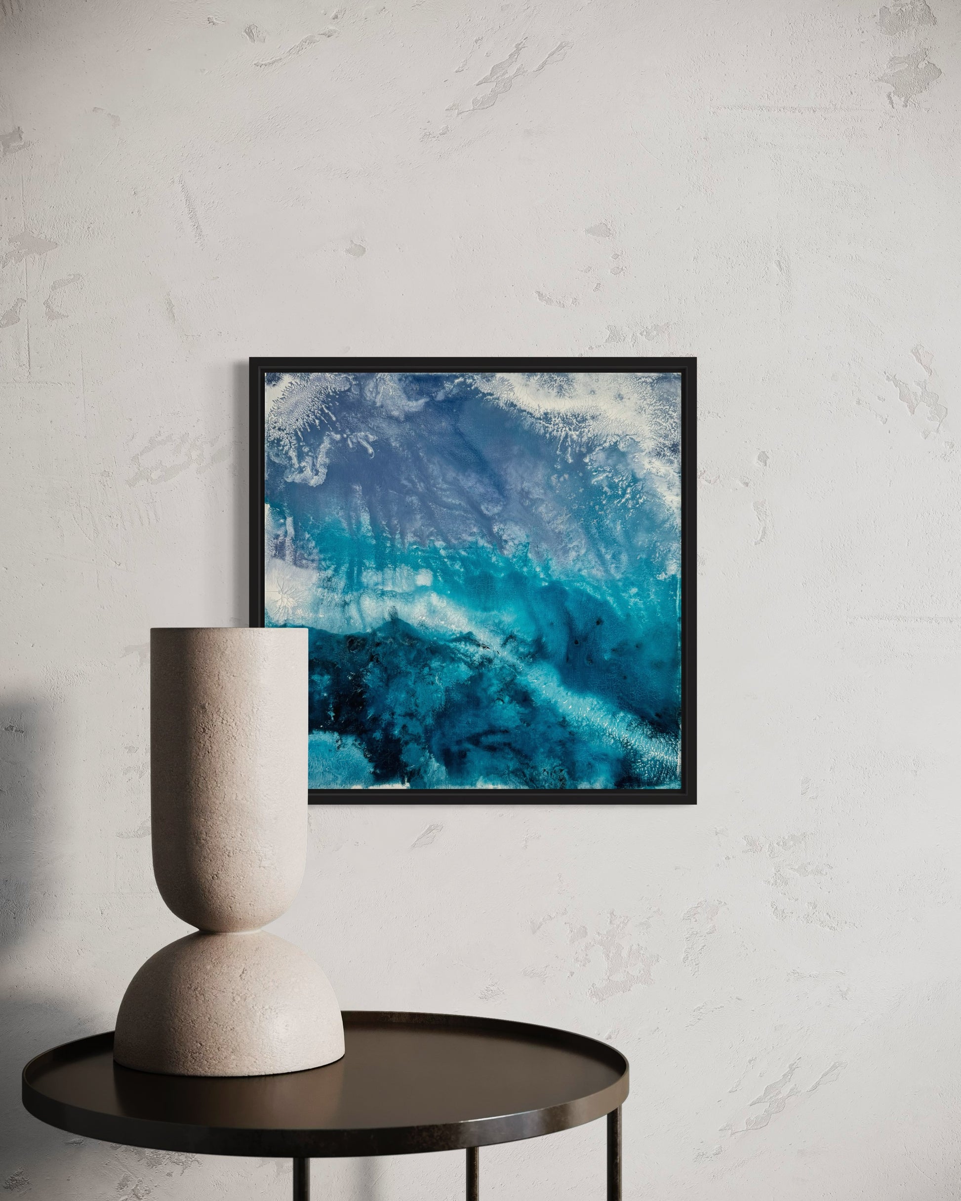 Blue Vibe - Abstrakte Acrylmalerei auf Leinwand (40x40 cm, eingerahmt)