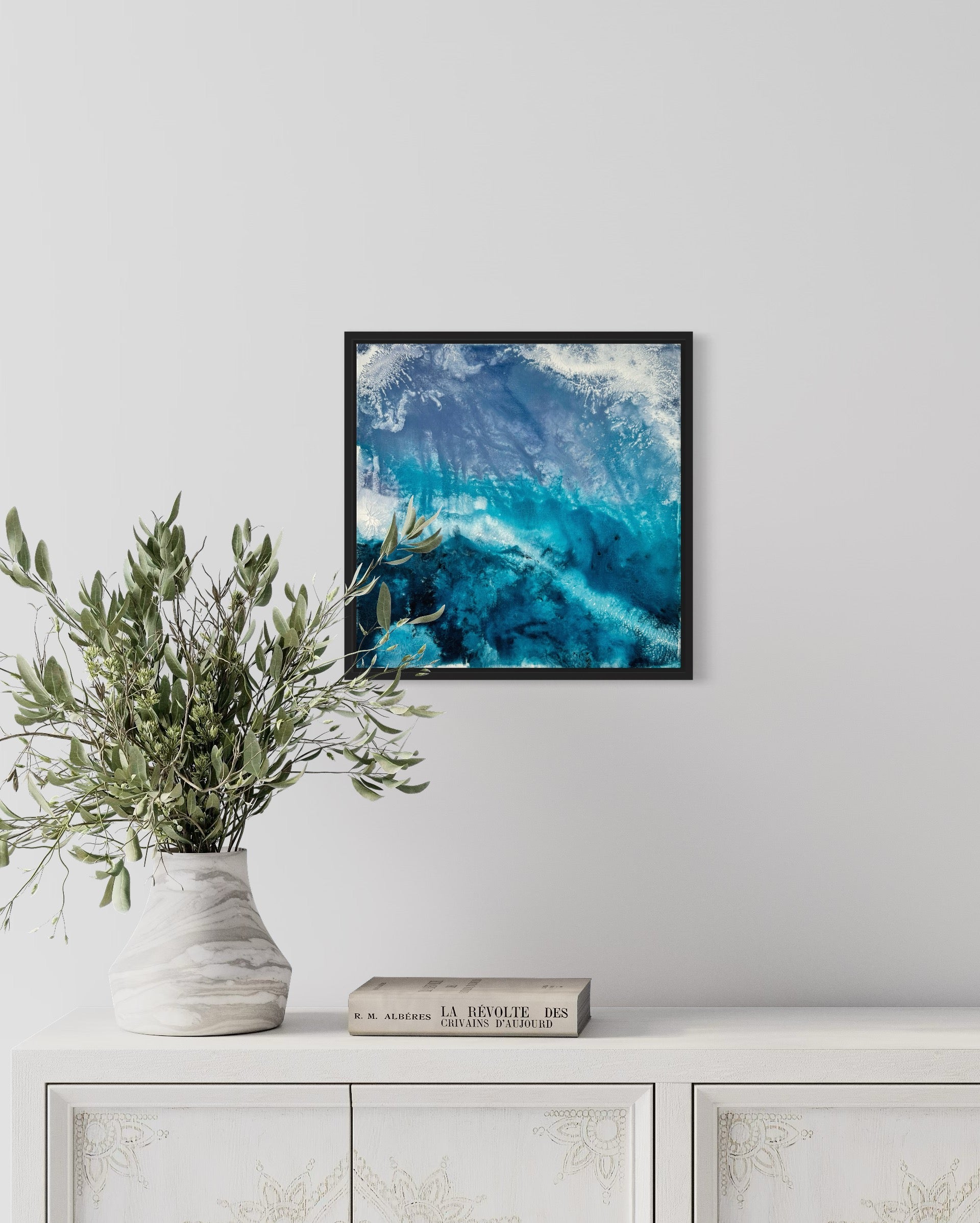 Perfekt für moderne Wohnräume, Büros oder als einzigartiges Highlight in deinem Home Office. Die abstrakte Darstellung und die lebendigen Blau-Nuancen bringen Dynamik und Ruhe zugleich in jeden Raum.