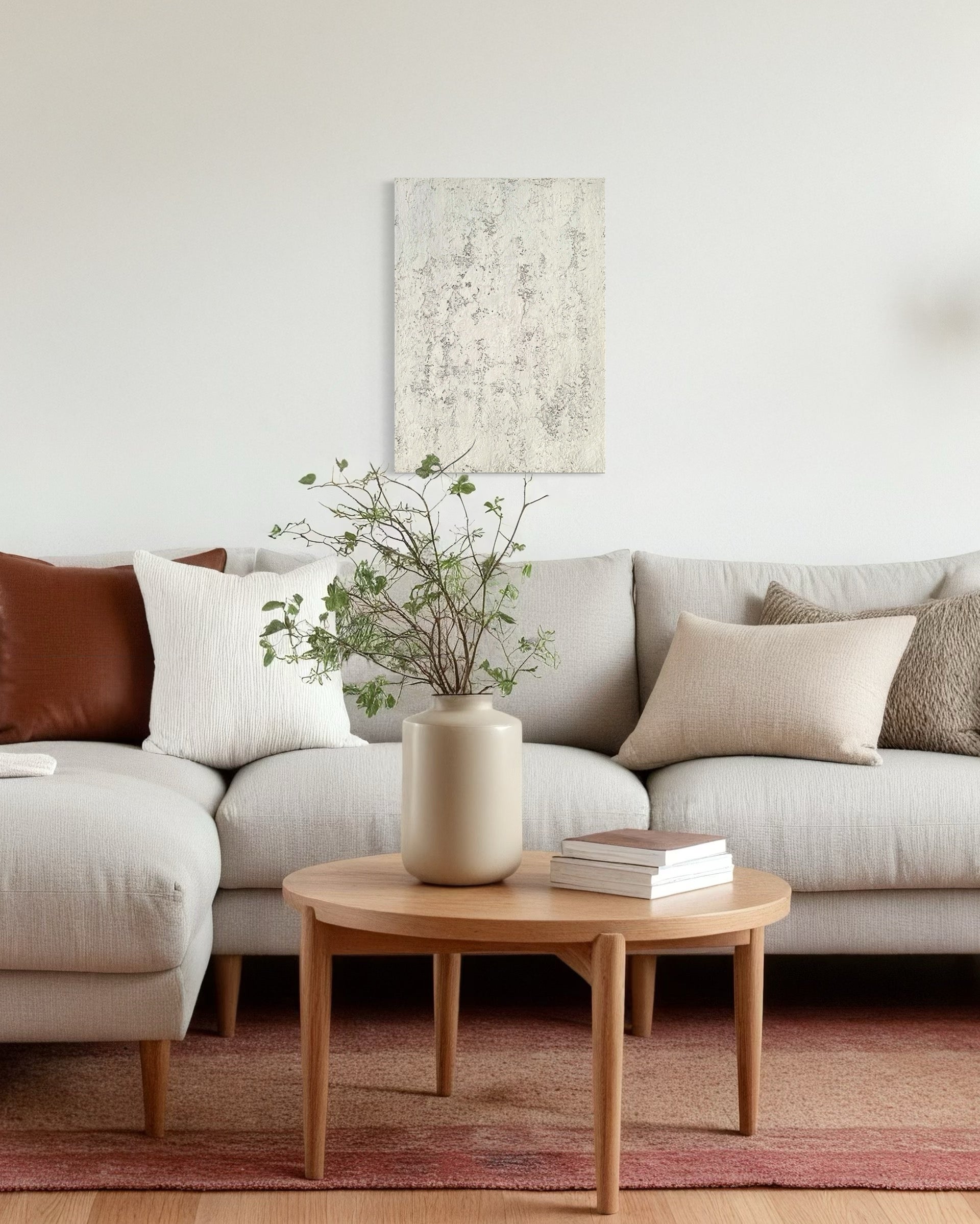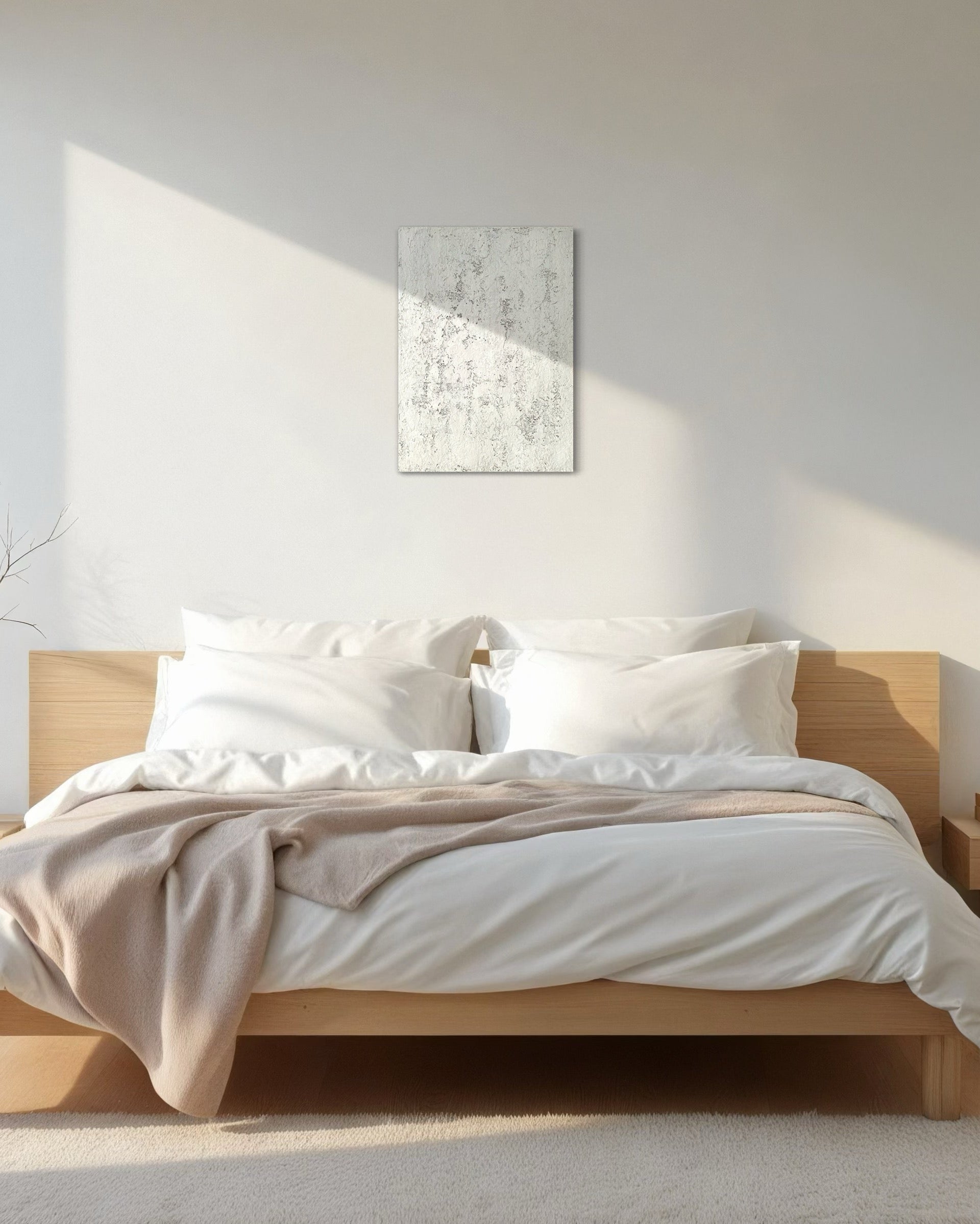 Mit "Tranquility" schaffst du eine ruhige und elegante Atmosphäre in deinem Zuhause. Dieses handgemalte Kunstwerk in 50x70 cm kombiniert dezente Acrylfarben mit einer einzigartigen, spürbaren Struktur, die dem Bild eine besondere Tiefe und Haptik verleiht.