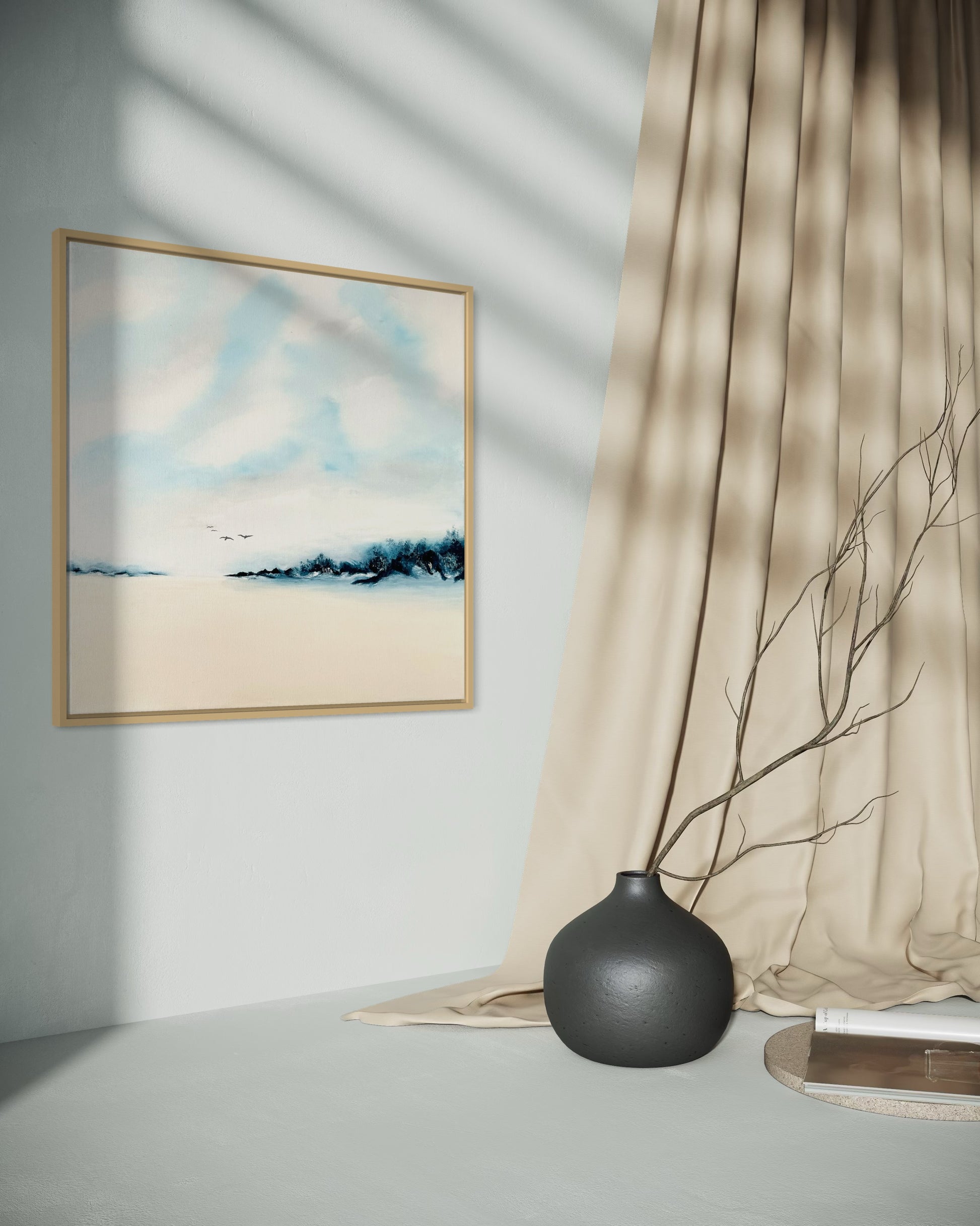 Soul Flight ist ein handgemaltes Acrylgemälde auf Leinwand – ein echtes Unikat. Mit ruhigen Farben, klarer Komposition und viel Gefühl bringt es Leichtigkeit und Balance in deinen Raum. Es eignet sich wunderbar als stilvolle Wanddekoration – ob für dein Zuhause, deine Praxis oder dein Büro.