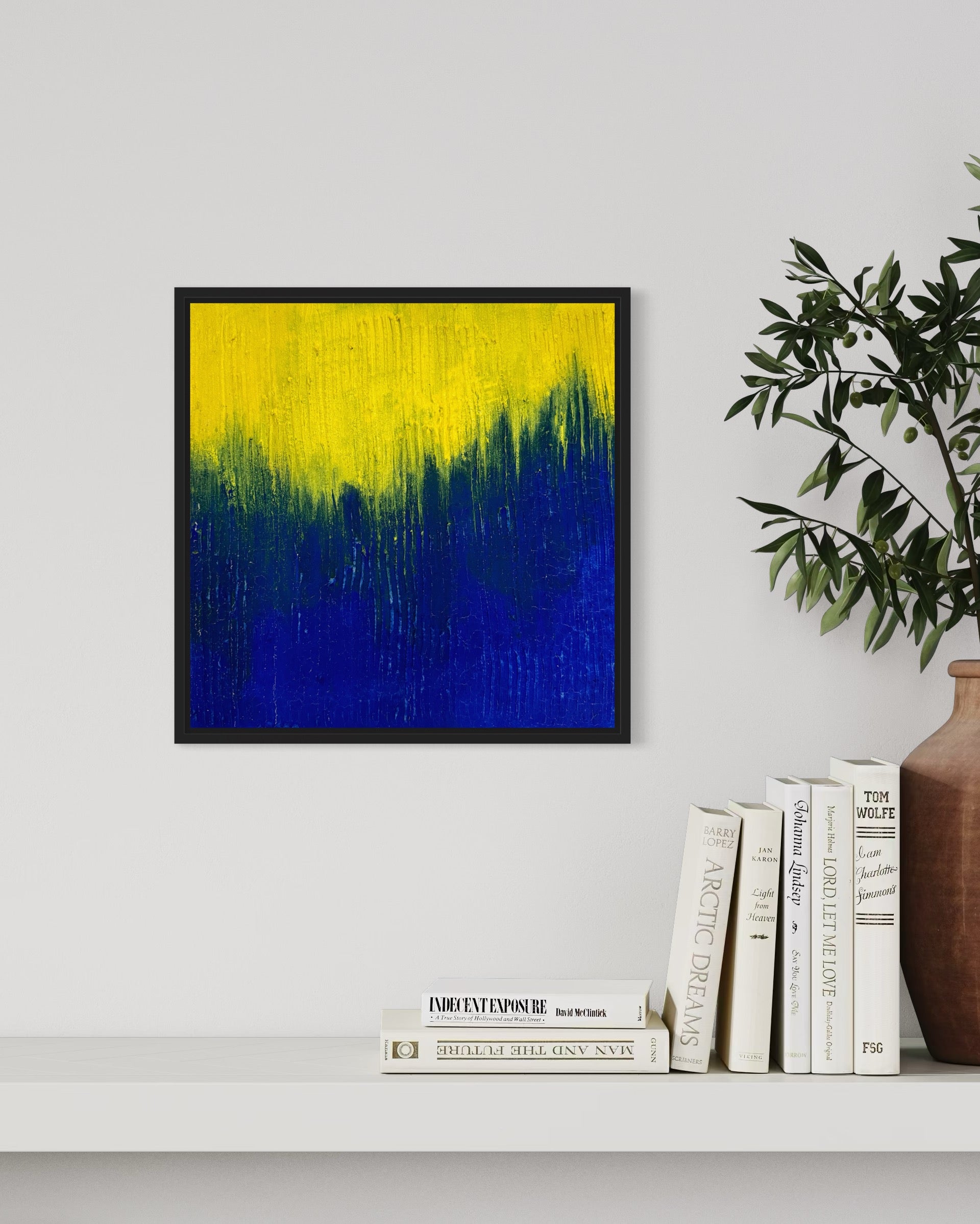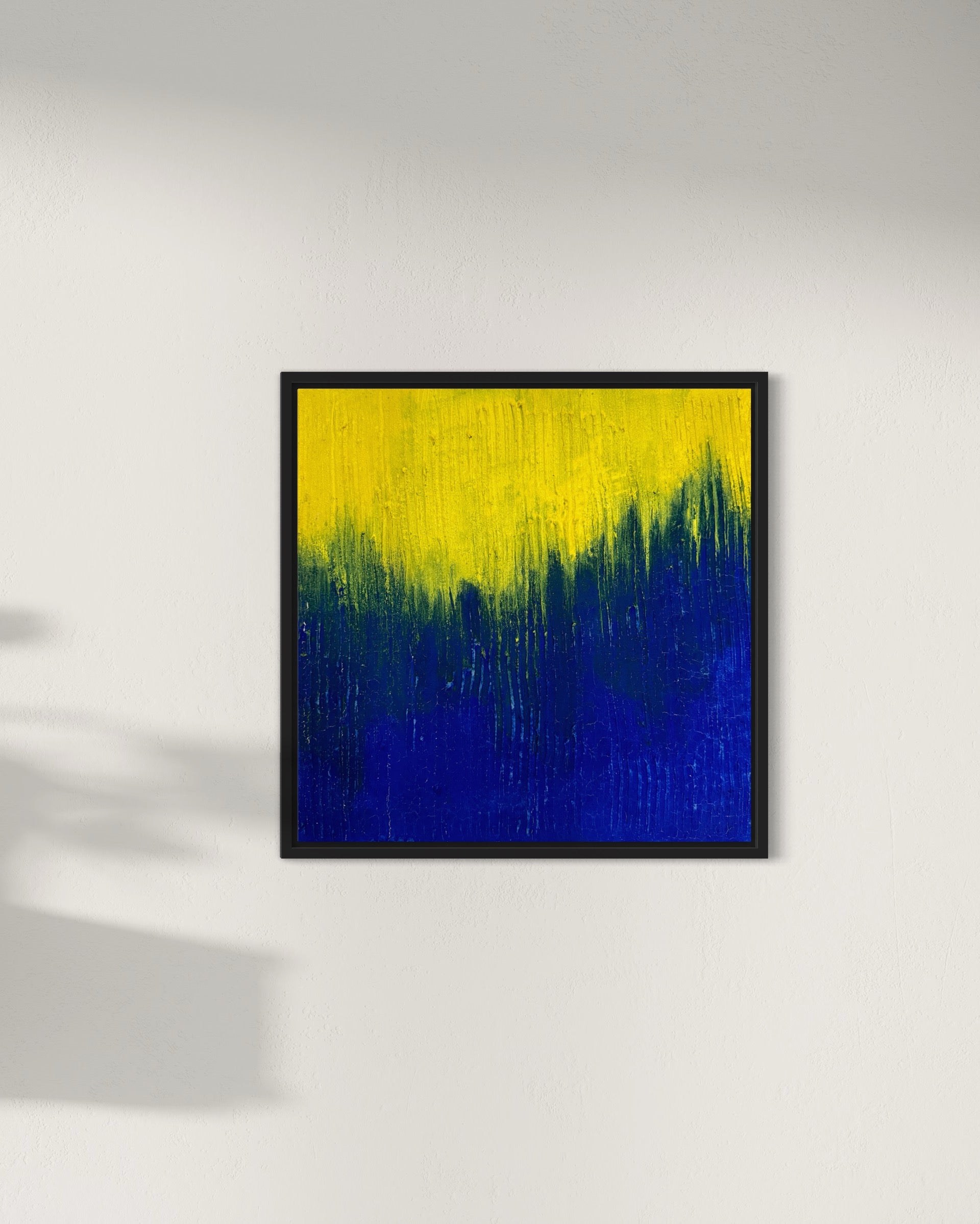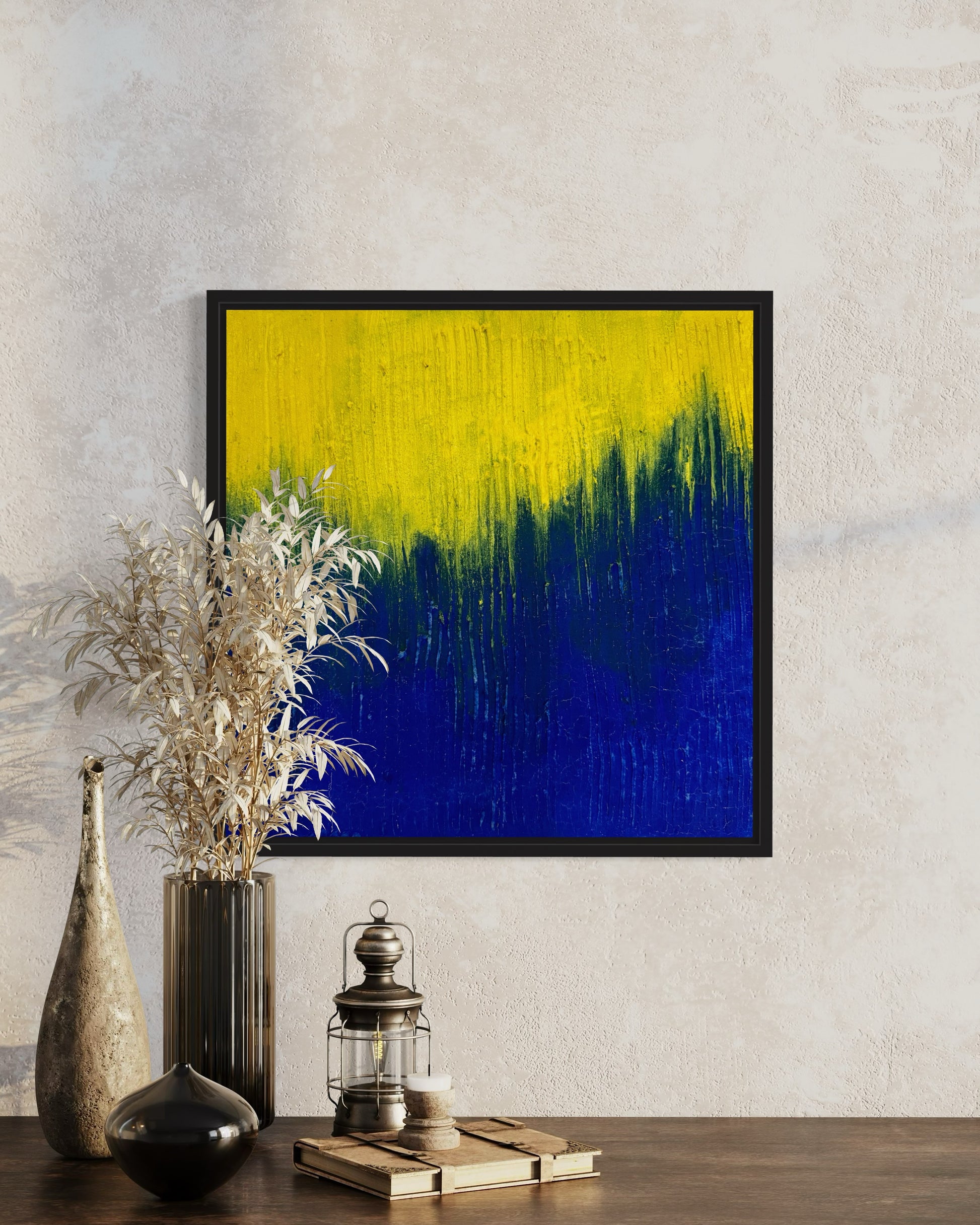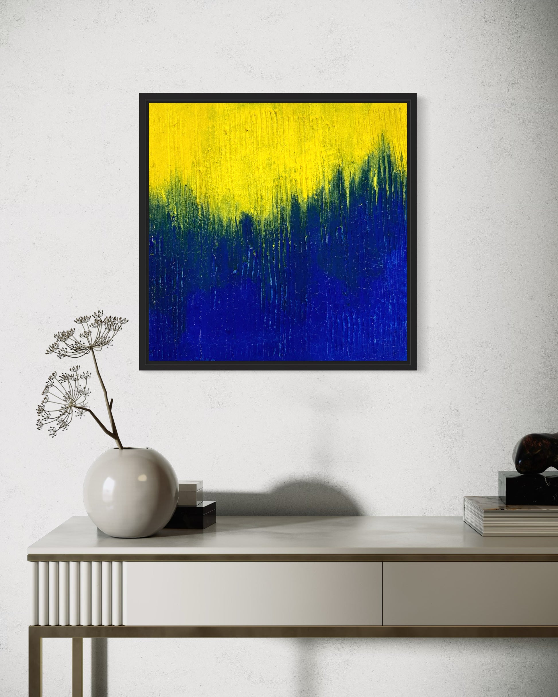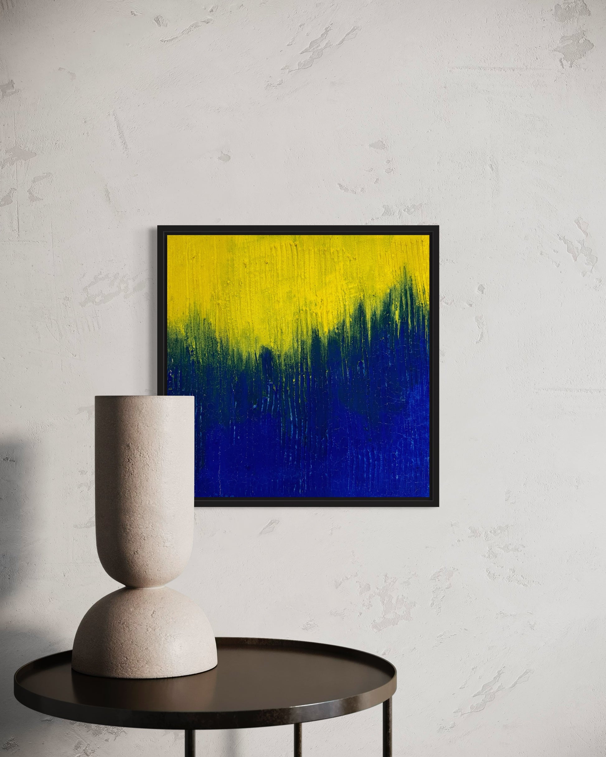 Hol dir frische Energie und zeitlose Eleganz in dein Zuhause mit "Rise", einem originalen Kunstwerk aus meiner Wabi-Sabi-Serie. Dieses handgemalte Bild in 40 x 40 cm wurde mit hochwertiger Acrylfarbe auf Leinwand gestaltet und verbindet kraftvolle Blautöne mit leuchtendem Gelb zu einer harmonischen Komposition.