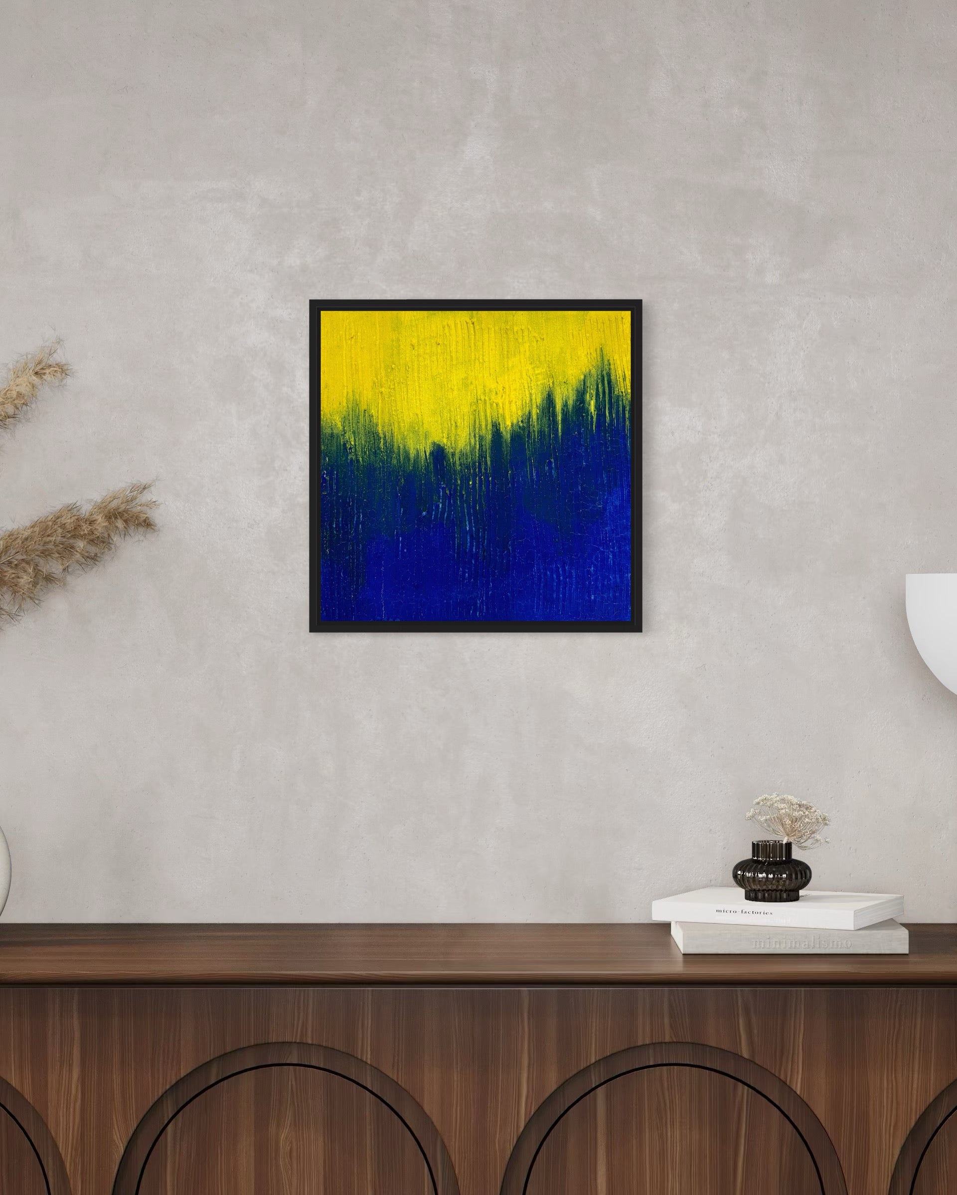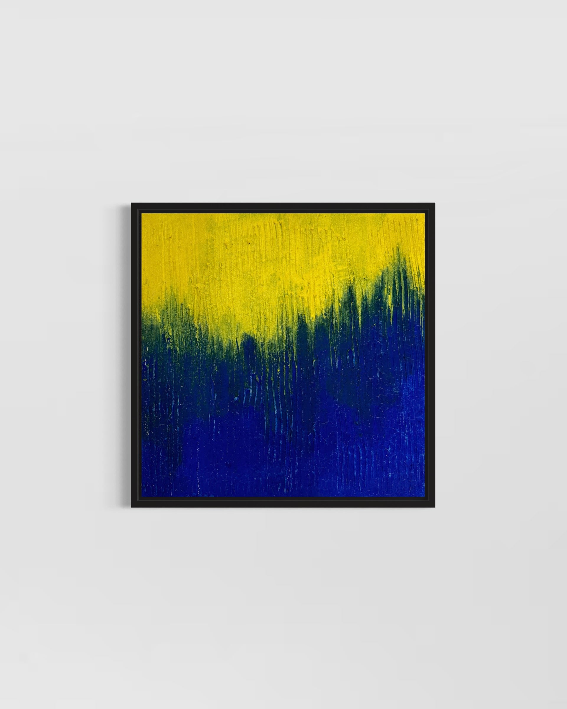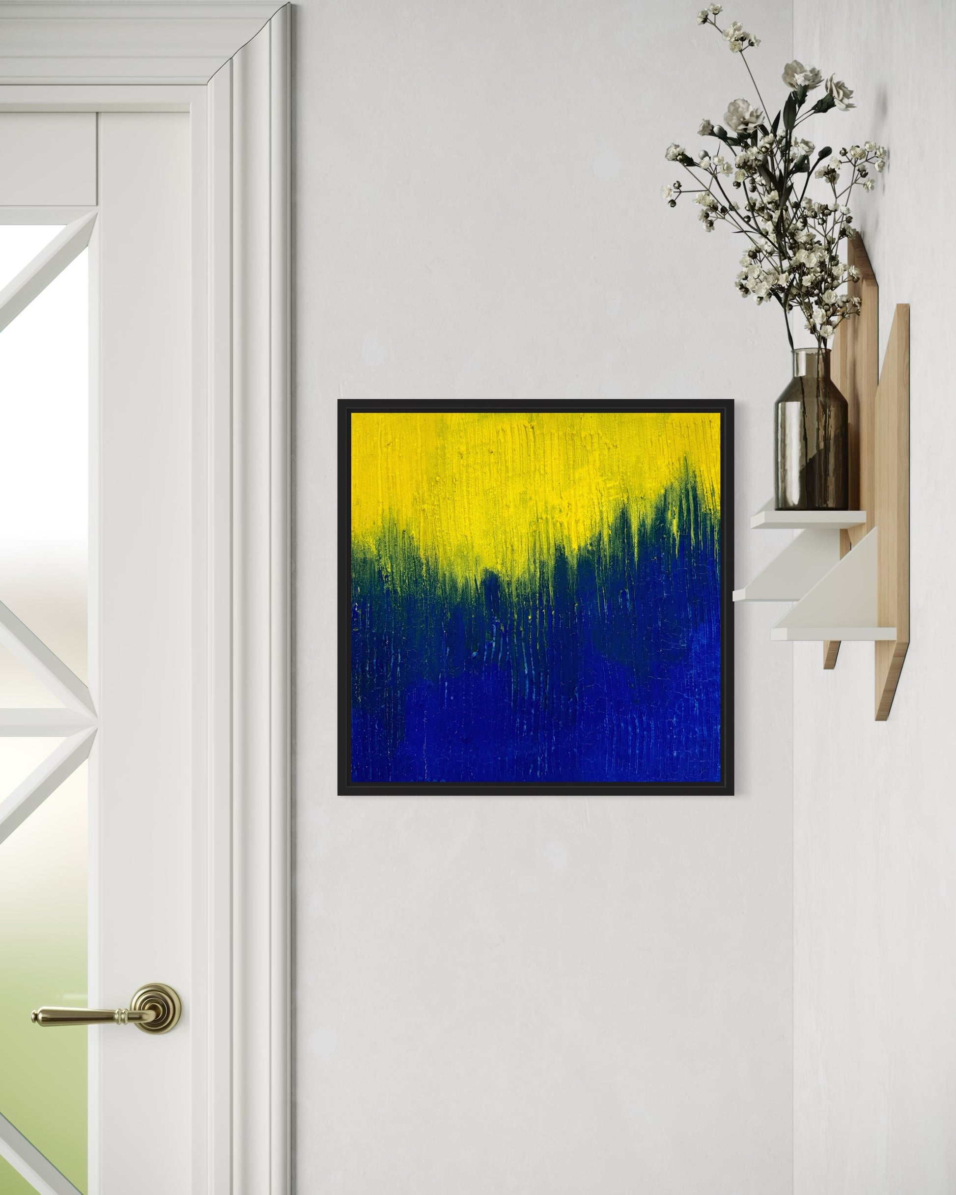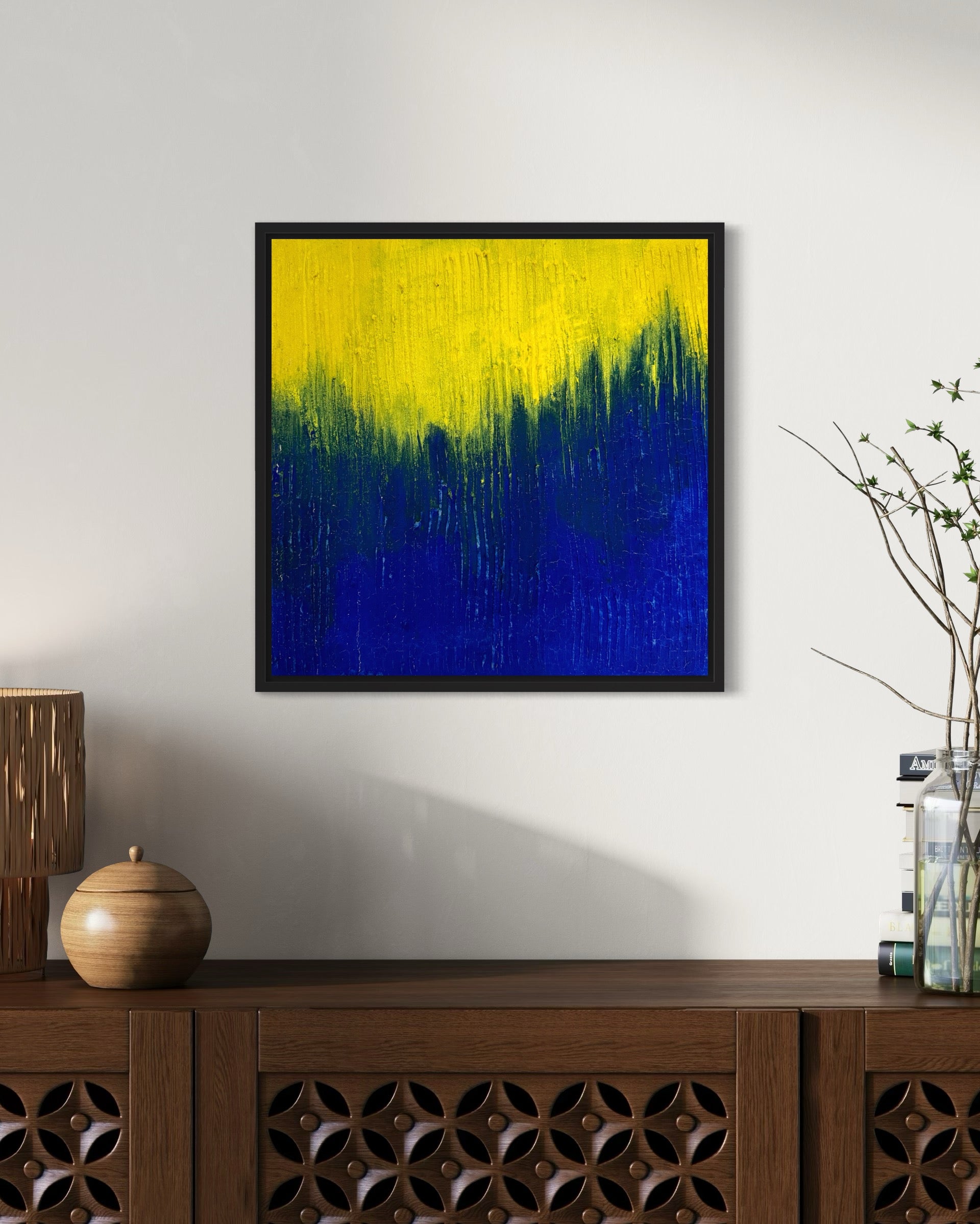 Hol dir frische Energie und zeitlose Eleganz in dein Zuhause mit "Rise", einem originalen Kunstwerk aus meiner Wabi-Sabi-Serie. Dieses handgemalte Bild in 40 x 40 cm wurde mit hochwertiger Acrylfarbe auf Leinwand gestaltet und verbindet kraftvolle Blautöne mit leuchtendem Gelb zu einer harmonischen Komposition.
