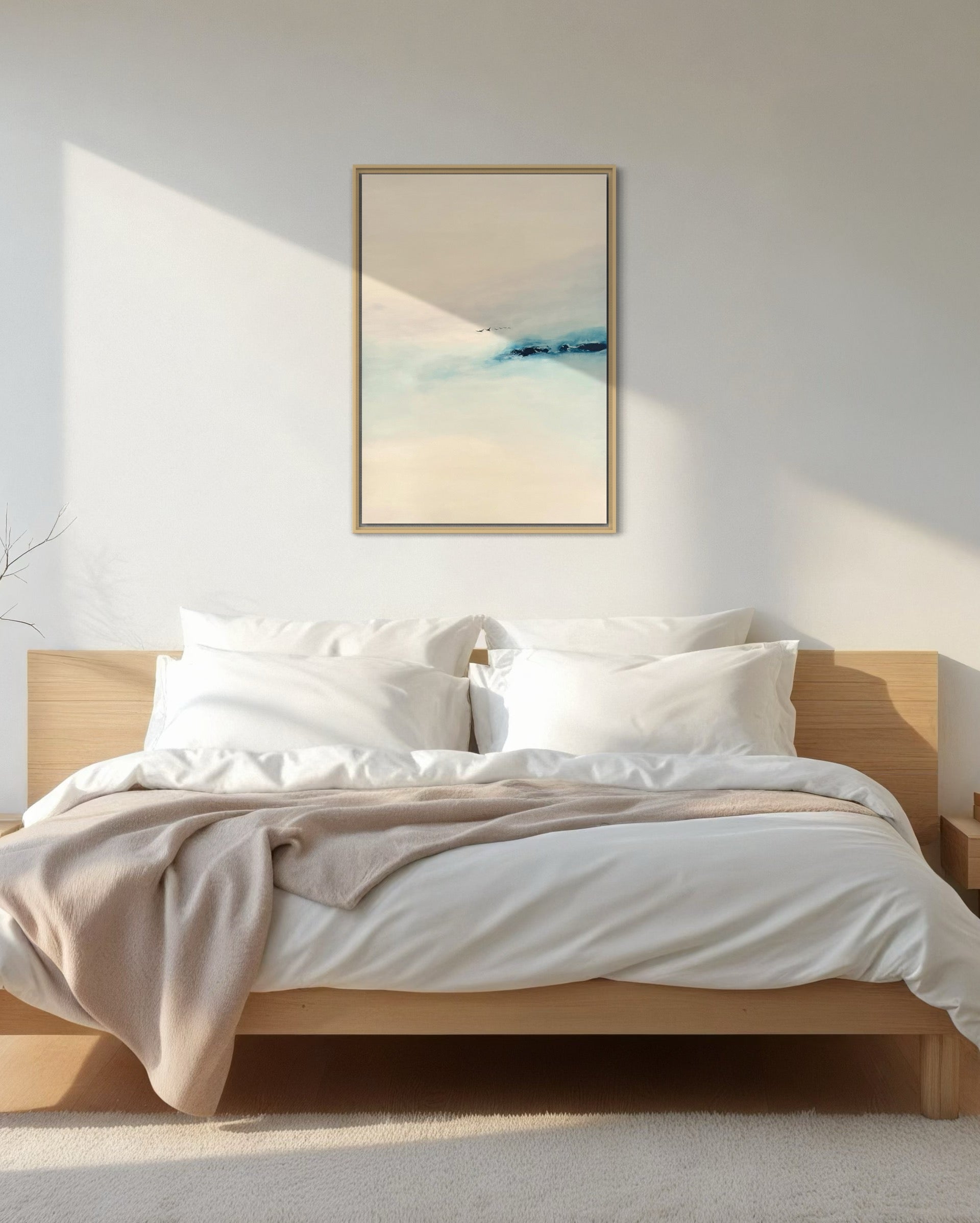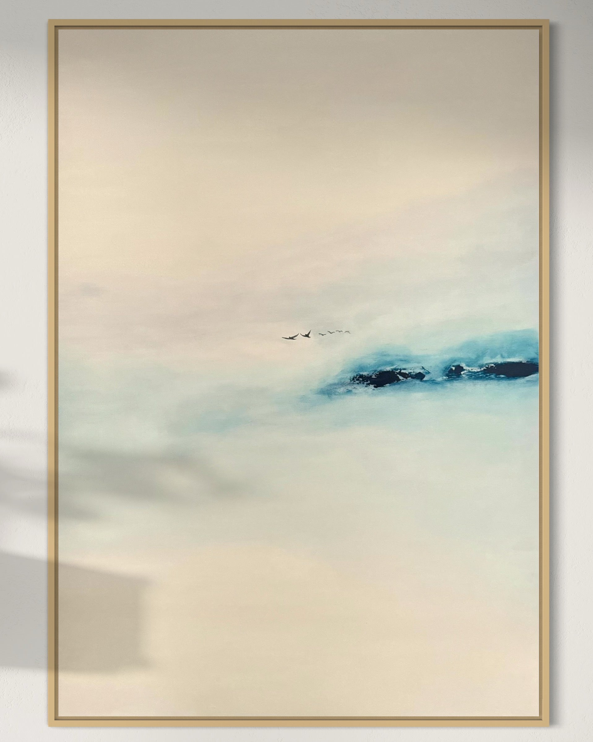 Mit "Calm" holst du dir ein modernes und harmonisches Kunstwerk nach Hause. Das handgemalte Bild in der Größe 100 x 70 cm besticht durch seine sanfte Farbgestaltung und die klare Komposition. Es fügt sich mühelos in jede Einrichtung ein und schafft eine ruhige, angenehme Atmosphäre – egal ob im Wohnraum, Büro oder einem anderen Bereich.