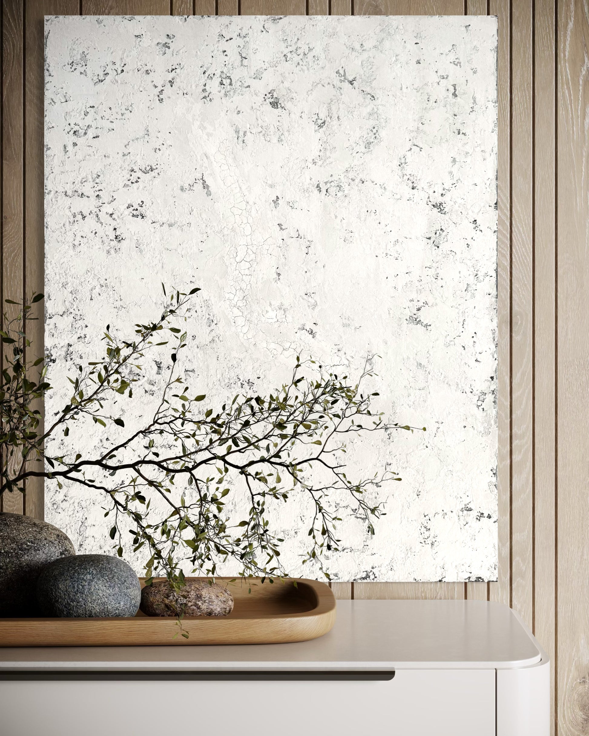 „Tranquil Light“ ist ein modernes Acrylgemälde mit Struktur aus der Wabi-Sabi-Serie. Mit sanften Weißtönen und tiefen Schwarzakzenten erzeugt es ein elegantes Zusammenspiel von Licht und Schatten. Die strukturierte Oberflächeverleiht dem Bild Tiefe und macht es zu einem einzigartigen Blickfang in jedem Raum.