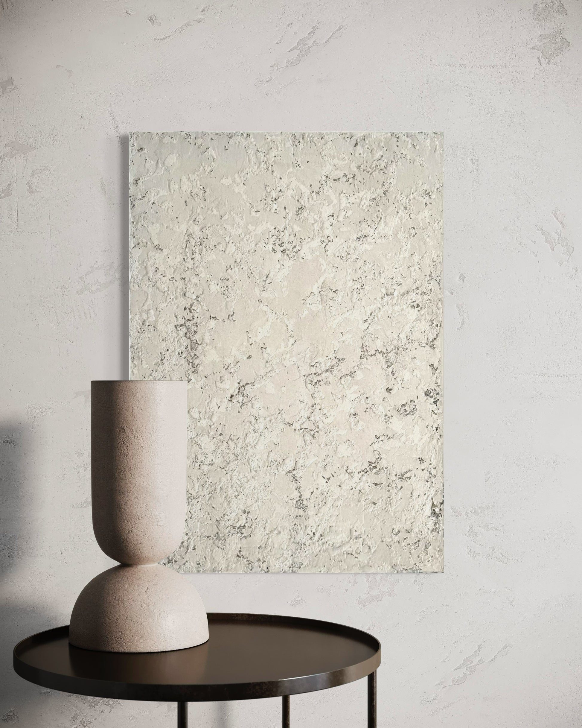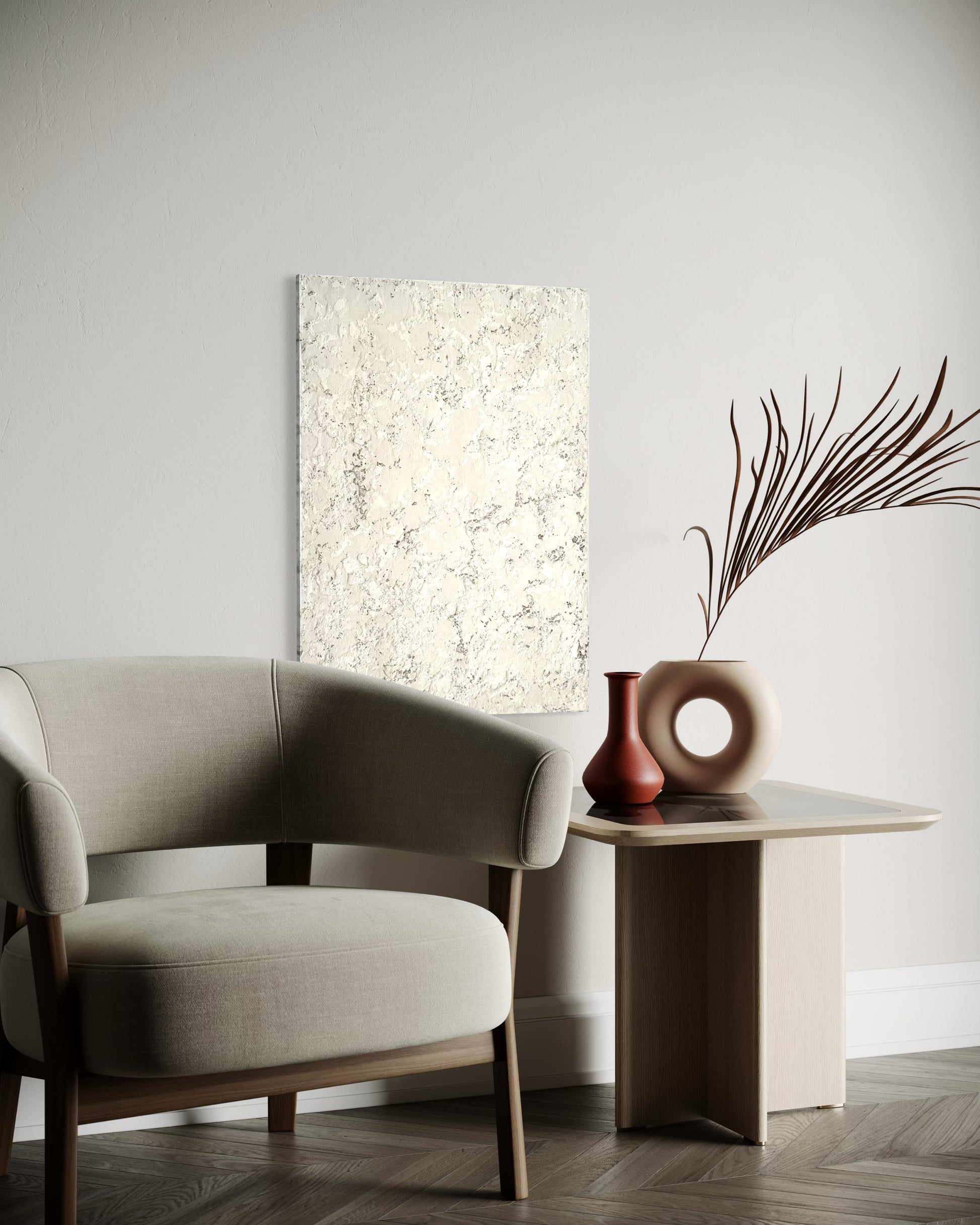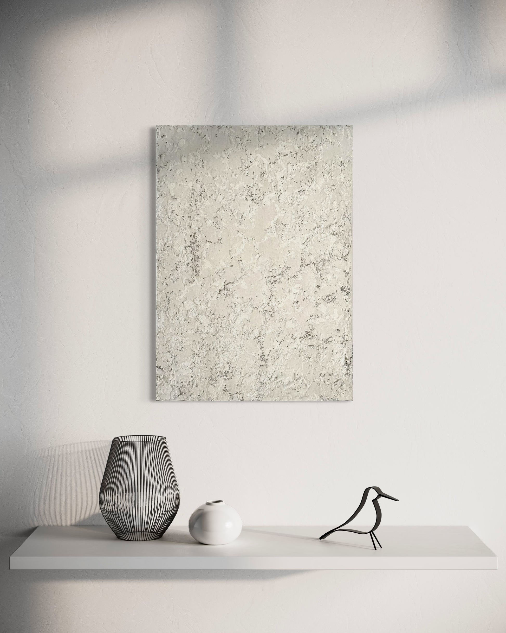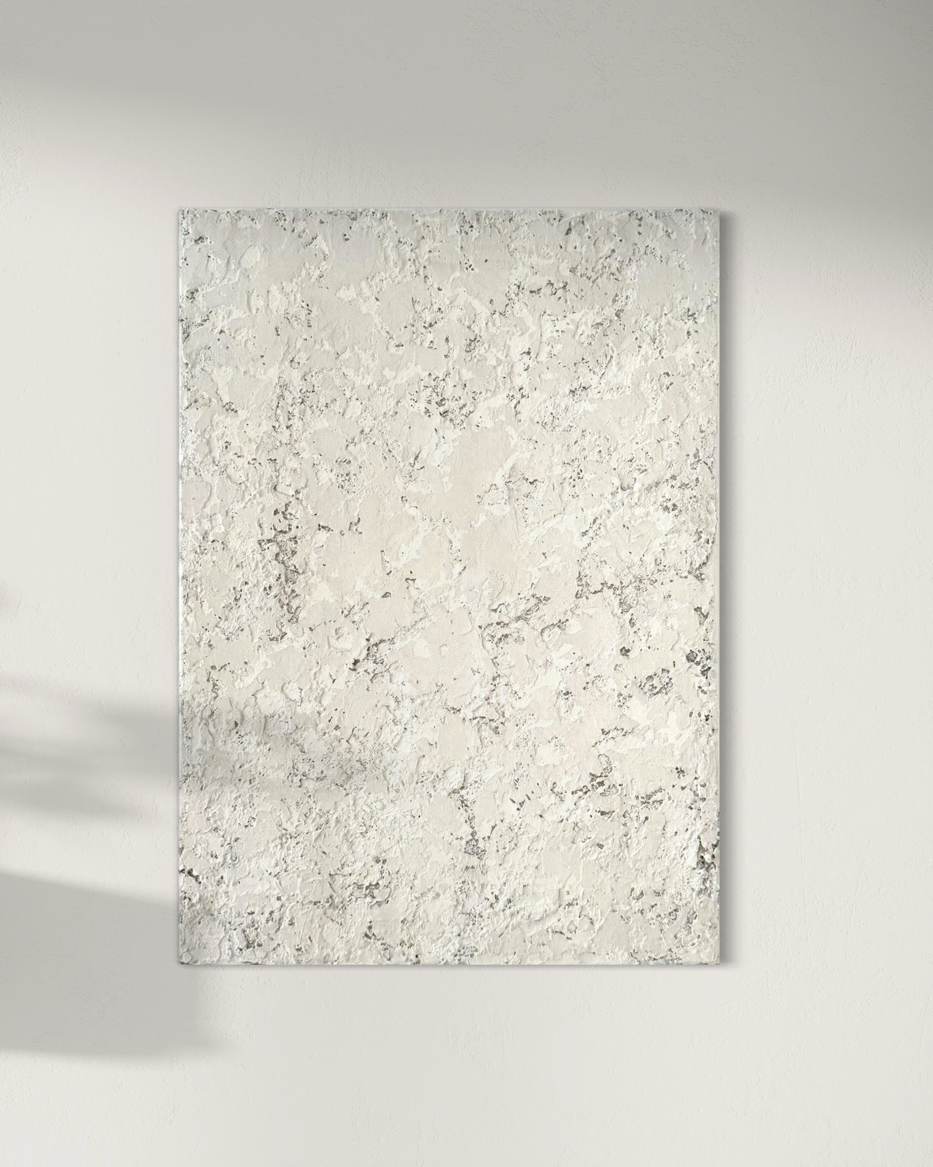 Dieses abstrakte Kunstwerk (70x50 cm) verkörpert die Schönheit der Unvollkommenheit. Die sanften, natürlichen Farbnuancen und die organische Textur verleihen dem Bild eine ruhige, harmonische Ausstrahlung. Licht und Schatten spielen auf der Oberfläche und erzeugen eine subtile, meditative Tiefe.