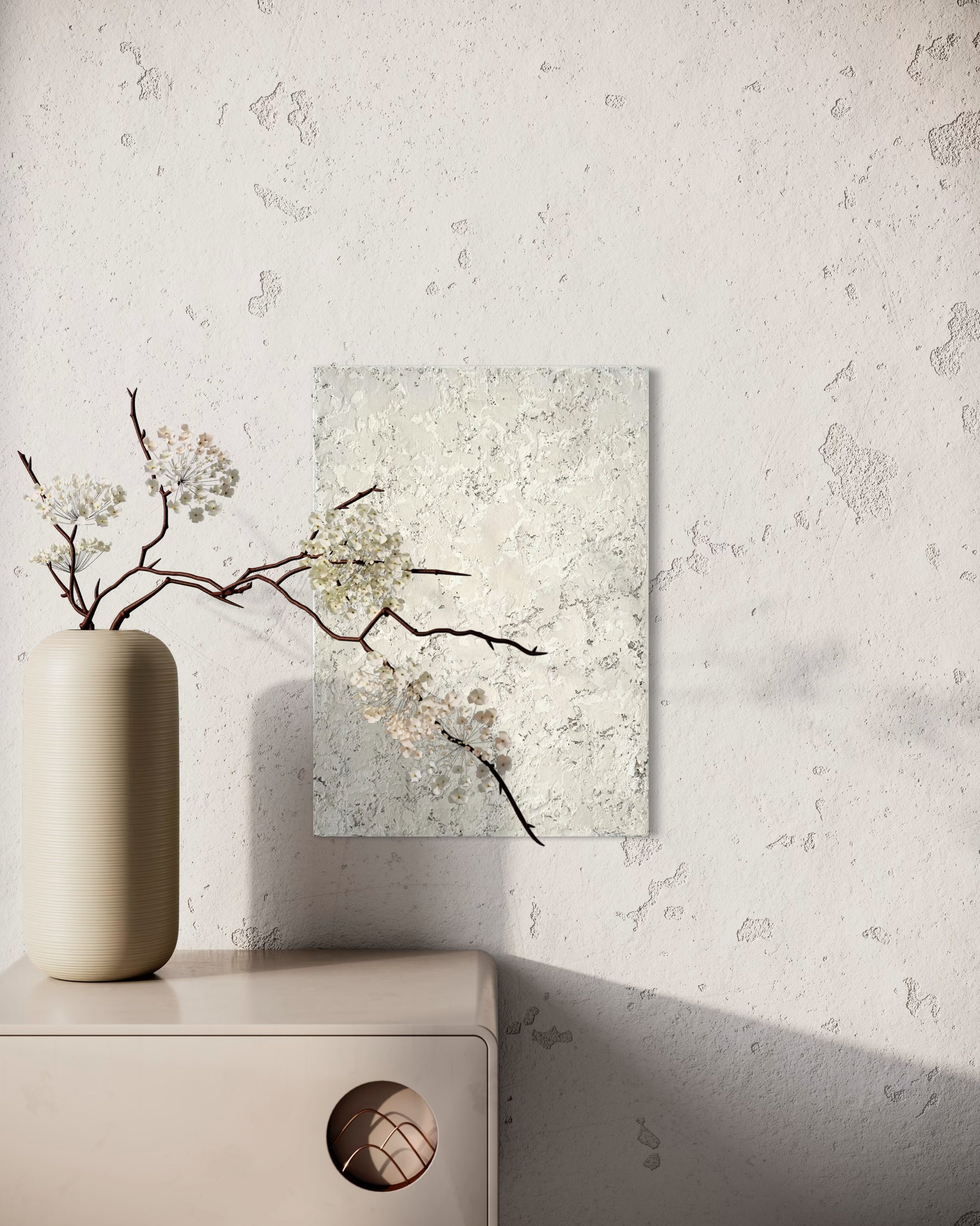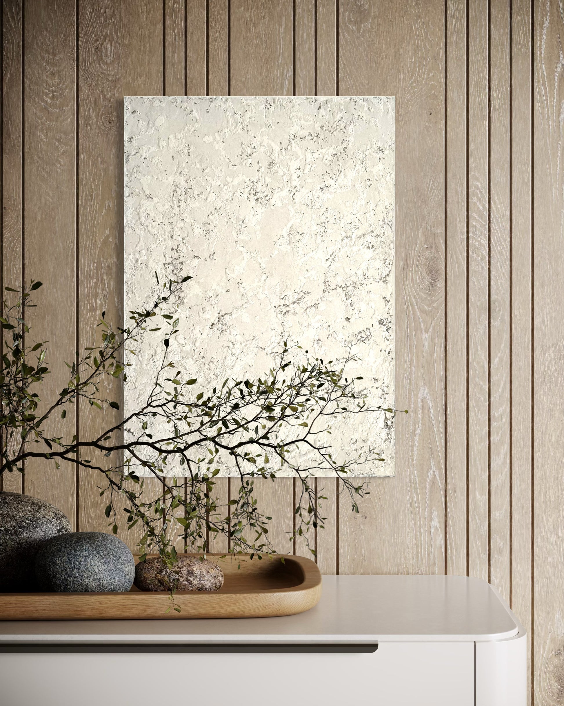 Minimalismus trifft auf sanftes Licht: "Hikari" ist ein besonderes Acrylgemälde mit strukturierter Oberfläche, inspiriert von der japanischen Wabi-Sabi-Philosophie.