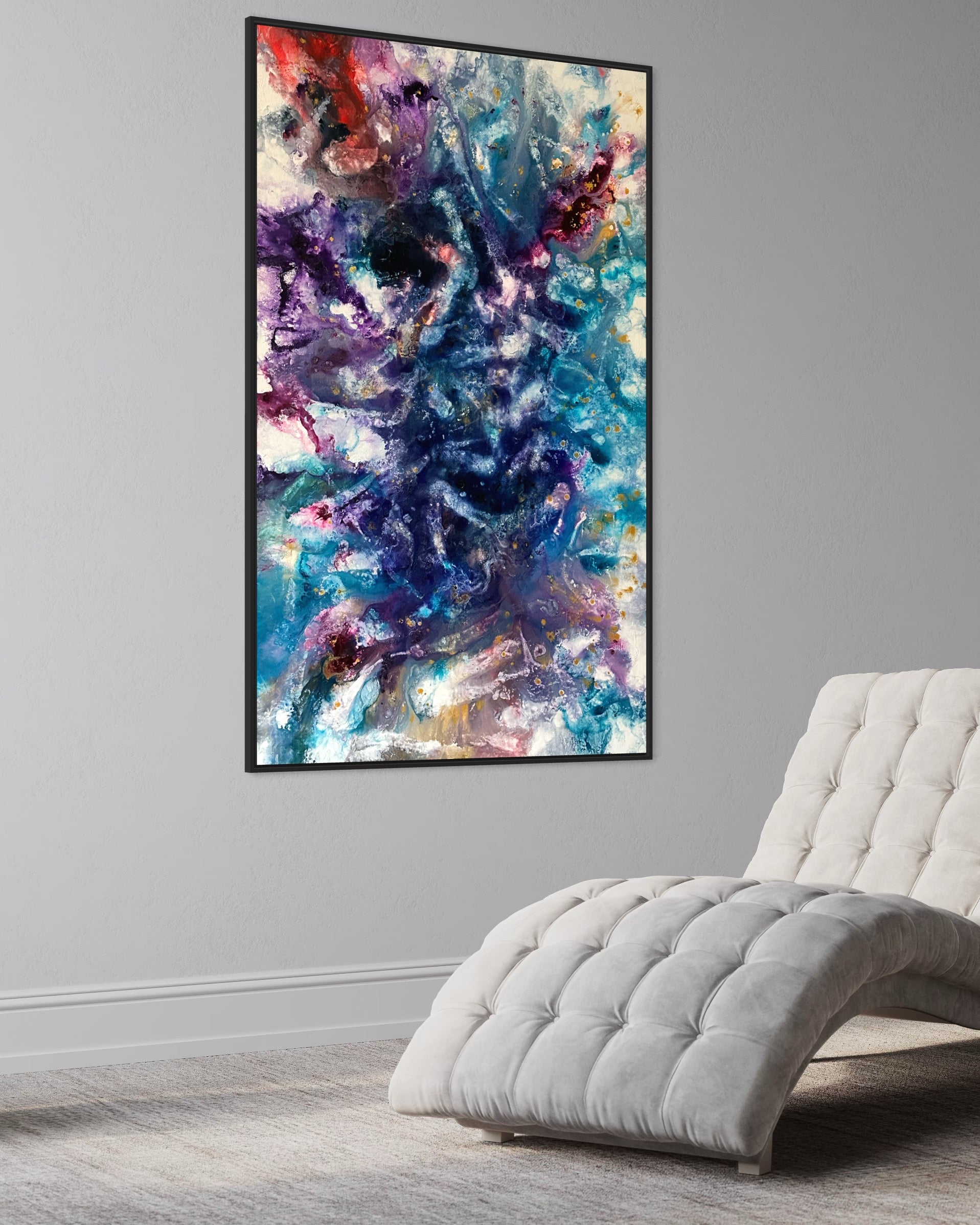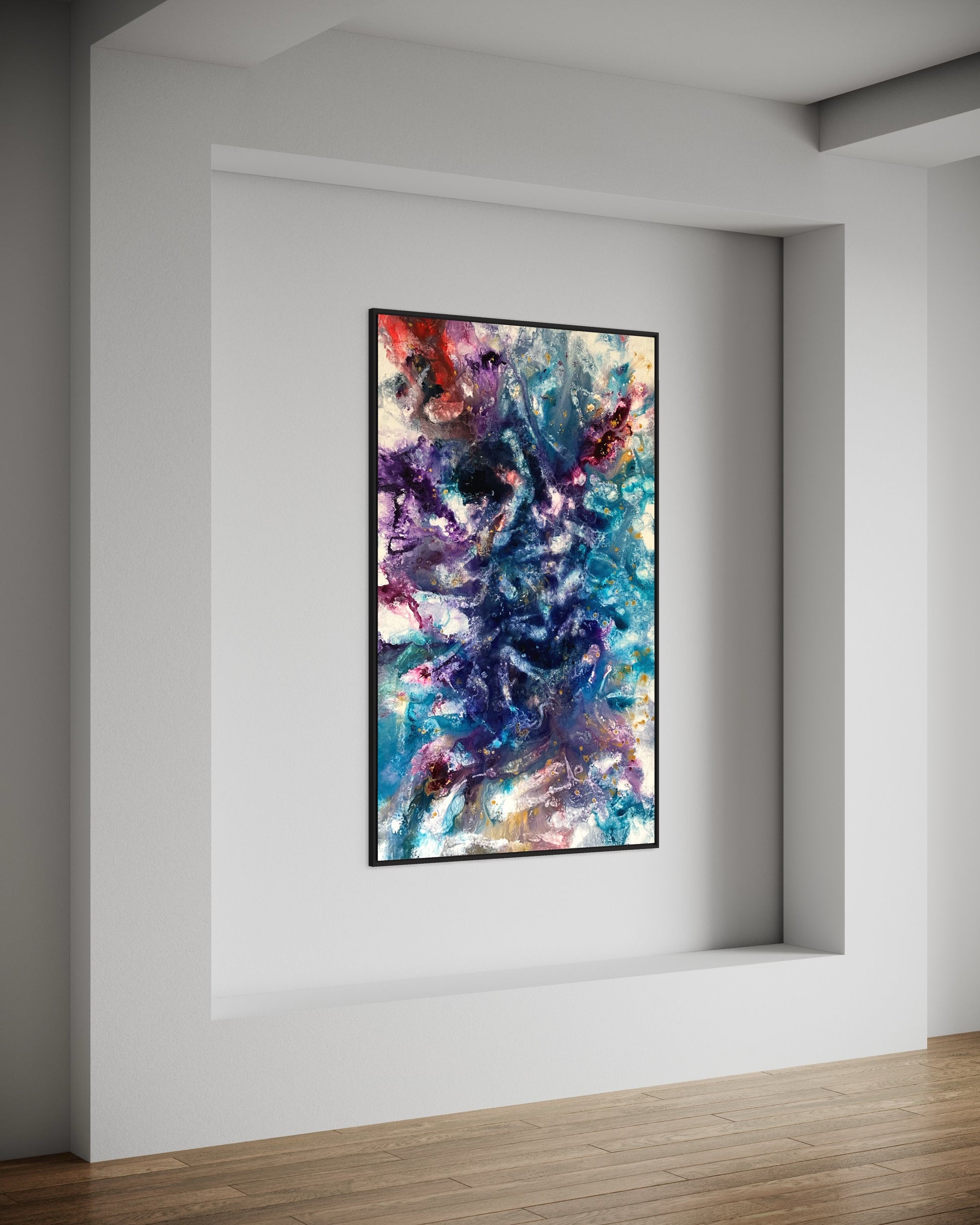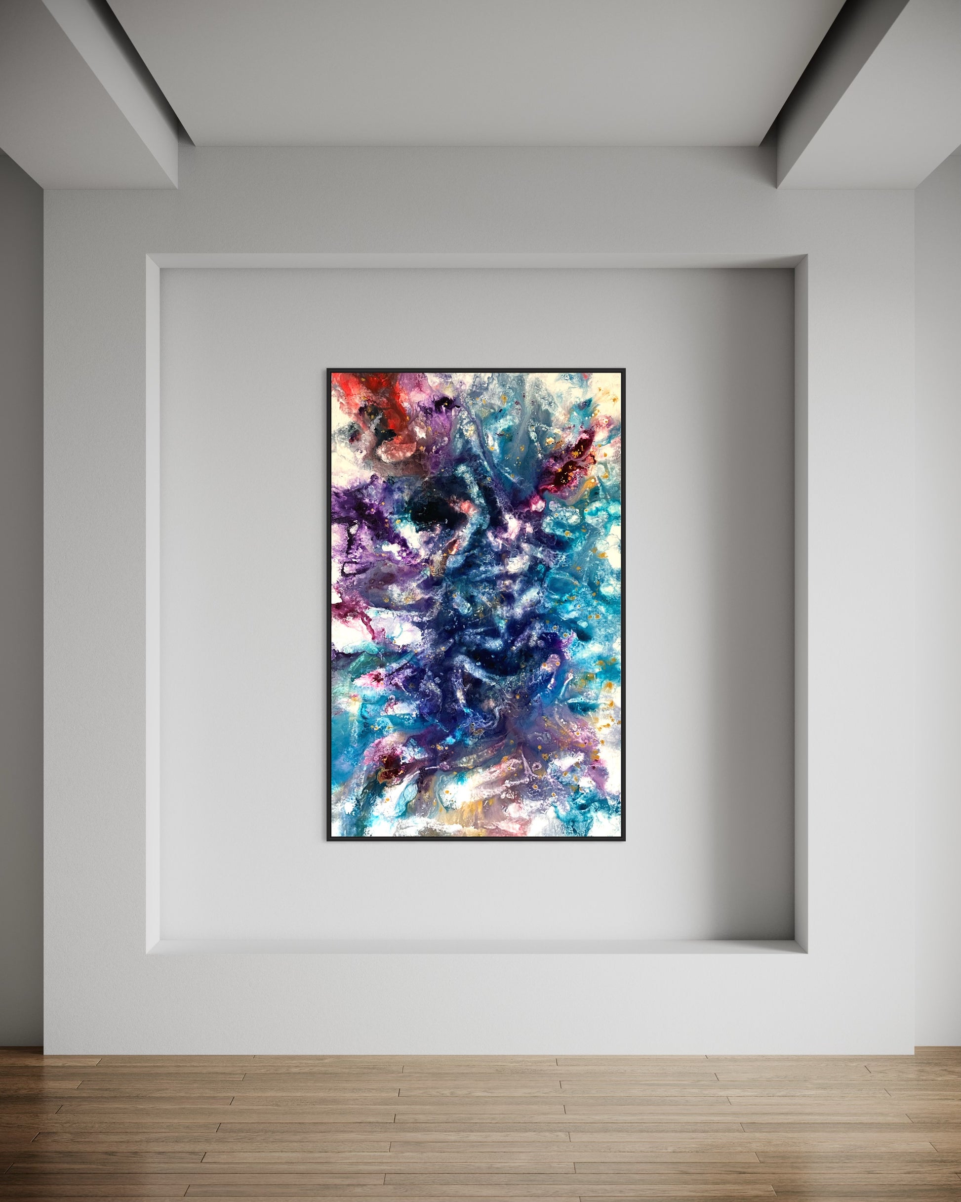 Dieses abstrakte Gemälde ist eine markante Bereicherung für Dein Zuhause, Büro oder jeden anderen Raum, den Du verschönern möchtest. Die abstrakte Natur des Gemäldes erlaubt es, eigene Interpretationen und Gefühle hineinzuprojizieren, wodurch es zu einem Gesprächsstück wird, das Bewunderung hervorruft.